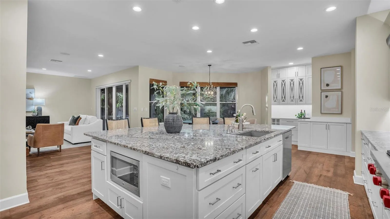 A magnificent coastal estate home, rebuilt from the ground up, is nestled high on an oversized lot and in one of the most secluded parts of Carlouel. This 5 Bedroom 4.5 Bathroom home boasts over 4000 sqft of interior living space, one of the largest on the island, with nearly 3000 sqft on the ground floor alone! The main floor features an expansive open Family Room, Kitchen, and Dining room with tall ceilings. The Family Room has sliders that allow natural light to flow into the space from the pool-ready backyard. Complimenting the immaculately landscaped grounds is a covered patio with motorized screens that enclose the space. Adjoining the Family Room is the large Master Suite, with a sitting area and a dream Master Bathroom featuring a walk-in custom tiled shower, freestanding tub, and a massive Master Closet (with custom shelving, built-in safe, and a Foxydry clothes dryer). The main floor also includes a bright Living Room (with tranquil views of the front yard) and two Bedrooms (each with an ensuite Bathroom (one with a tub, one with a shower / adjoining door to the backyard, which could double as a future pool bathroom). A tasteful half bath, and a recently added custom bar next to the Kitchen, and a thoughtfully designed Laundry Room with tons of storage, completes the main floor. Head upstairs, and you will find another oversized Bonus Room, two large Bedrooms, and another full Bath. The rebuilding process took the Owners nearly 3 years to complete, as it was completely re-architected and engineered from the ground up. The meticulous and extensive processs has resulted in one of the most beautiful homes offered on the island. Like new construction but better, with all of the ground floor living. See this fantastic home on a quiet street, four houses from the Intercostal Waterway, a short walk to the Gated Neighborhood Gulf of Mexico Beach Access, and the Carlouel Yacht Club. You will be delighted!