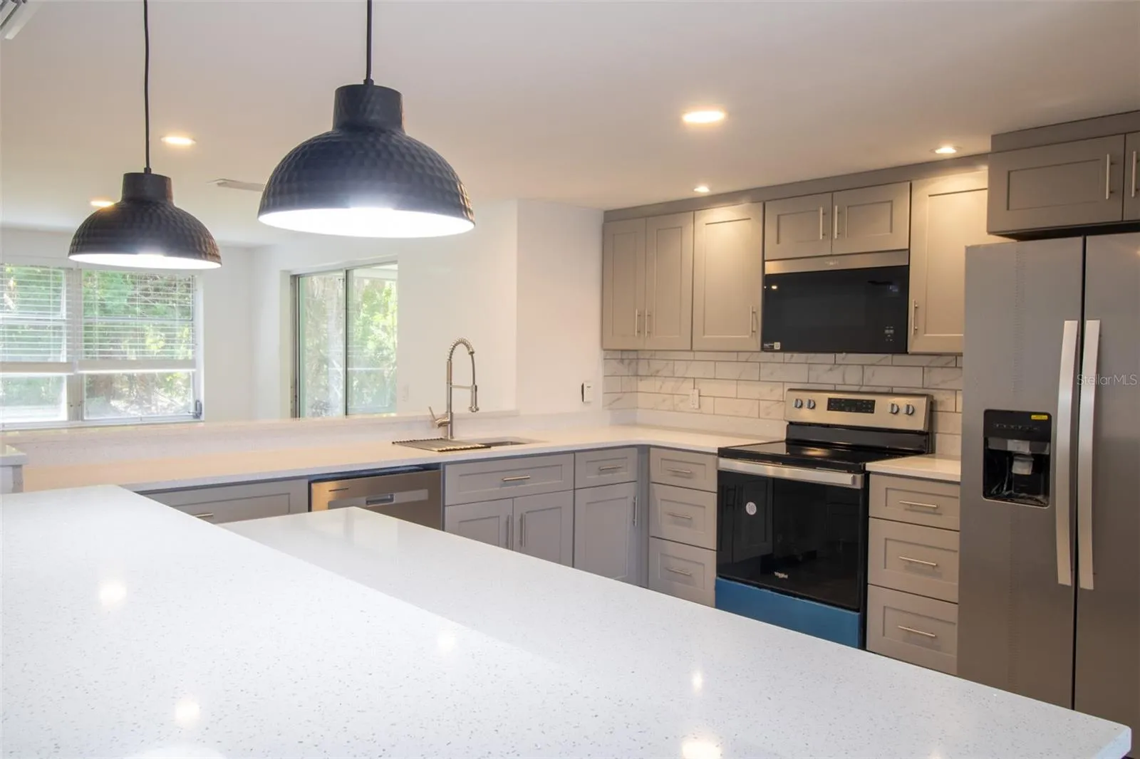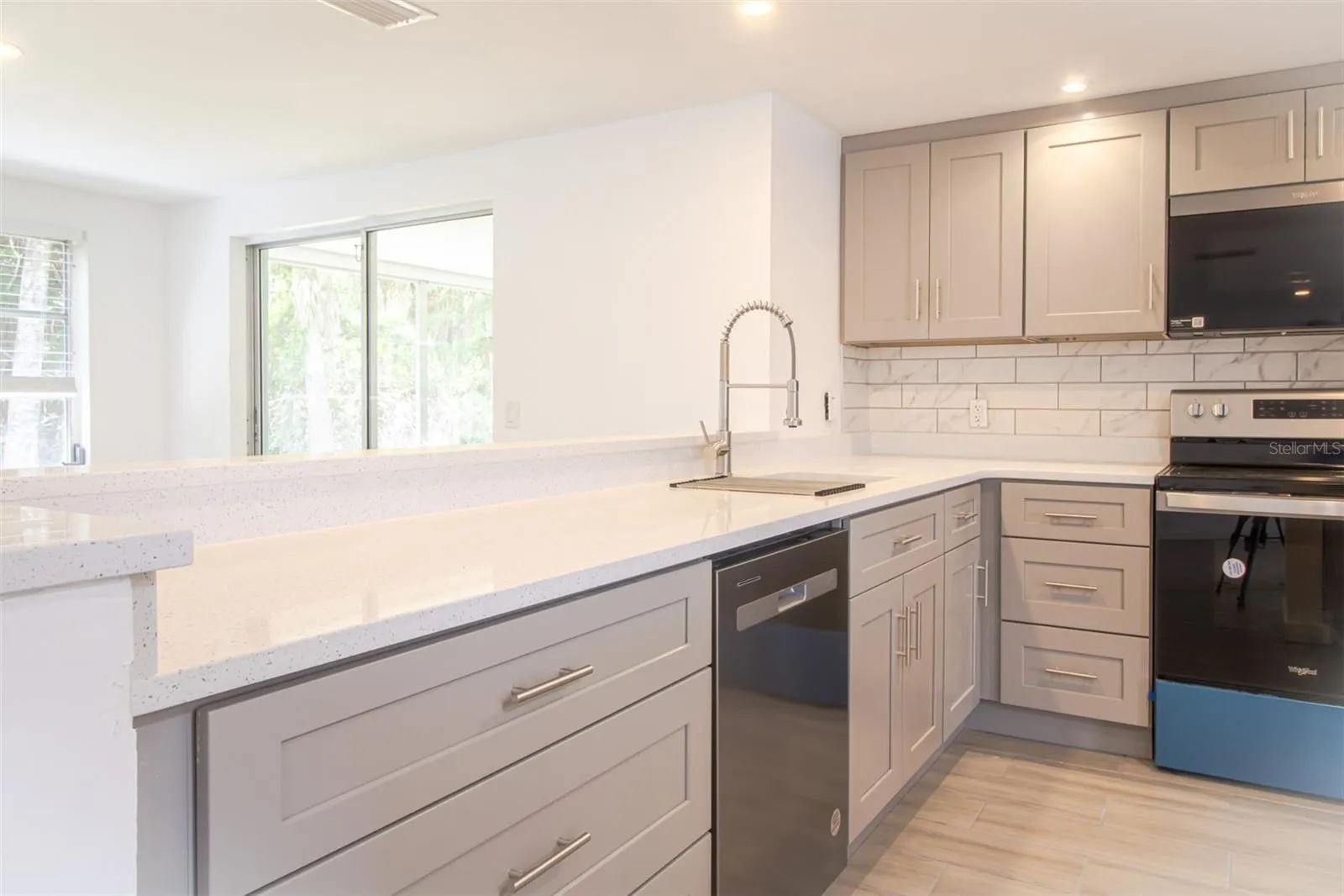 Freshly remodeled house in Gulf Harbor with brand new kitchen, bathroom and ceramic tile flooring. The interior space is an open space plan, modern in style, and freshly painted that matches any type of style of furniture. The back side of the house is open and faces a preserved area. The neighborhood is clean and friendly, great for walking and riding a bike. Long-term renters have access to the community’s private beach.