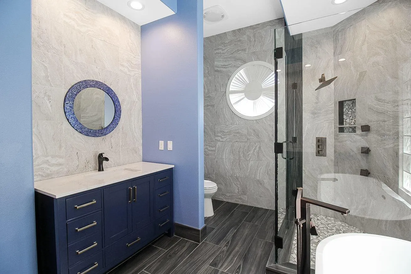- Ceiling Fans(s), Open Floorplan, Thermostat, Walk-In Closet(s), Living Room/Dining Room Combo, Eat-in Kitchen, Kitchen/Family Room Combo, Primary Bedroom Main Floor, Split Bedroom, Window Treatments, High Ceilings, Stone Counters