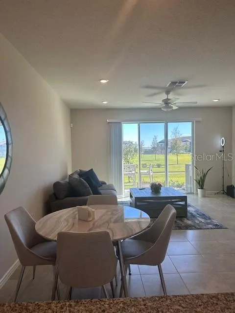 - Ceiling Fans(s), Thermostat, Walk-In Closet(s), Living Room/Dining Room Combo, Eat-in Kitchen, Kitchen/Family Room Combo, High Ceilings, Stone Counters, Solid Wood Cabinets, PrimaryBedroom Upstairs