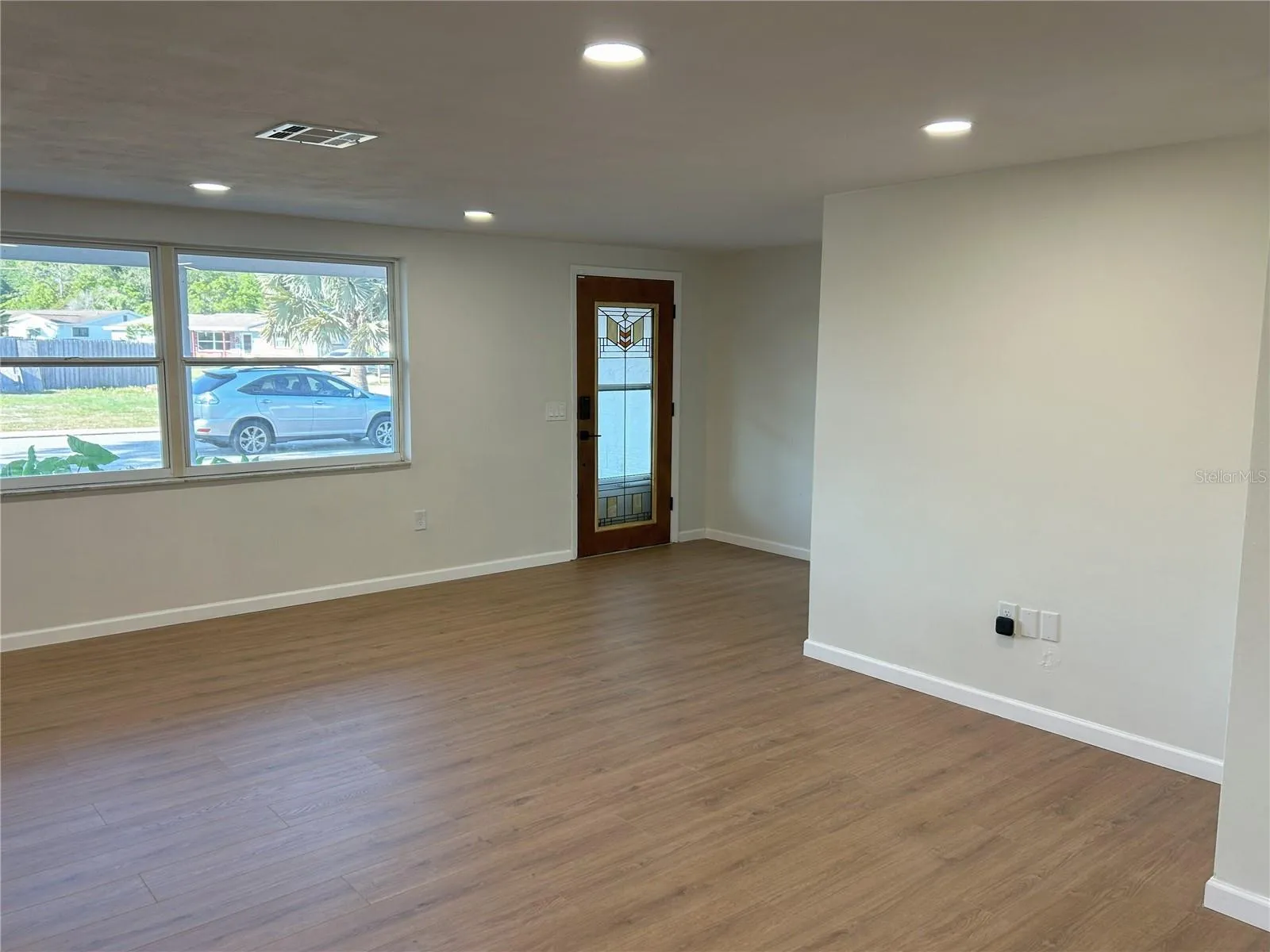 Tastefully updated home in great Holiday neighborhood with many amenities nearby. Open floor plan with living room/dining room combo with a huge bonus room in back. Updated eat in kitchen features new cabinetry, quartz countertops, SS Samsung appliances and a large pantry. All three bedrooms are equipped with ceiling fans and spacious closets. New Hydroshield or tile flooring throughout. Bathrooms updated with new tile, vanities and toilets. Google Nest thermostat and keyless entry with pinpad will remain in the property. Available immediately. Pets subject to pet fee and add’l sec deposit, no cats. No smoking. First/last/security up front. Front loading washer/dryer can be added to the property if needed. App fee $50/applicant. Fee may be waived by landlord if you have a recent credit/background check and/or strong proof of funds. Rent to own option available.