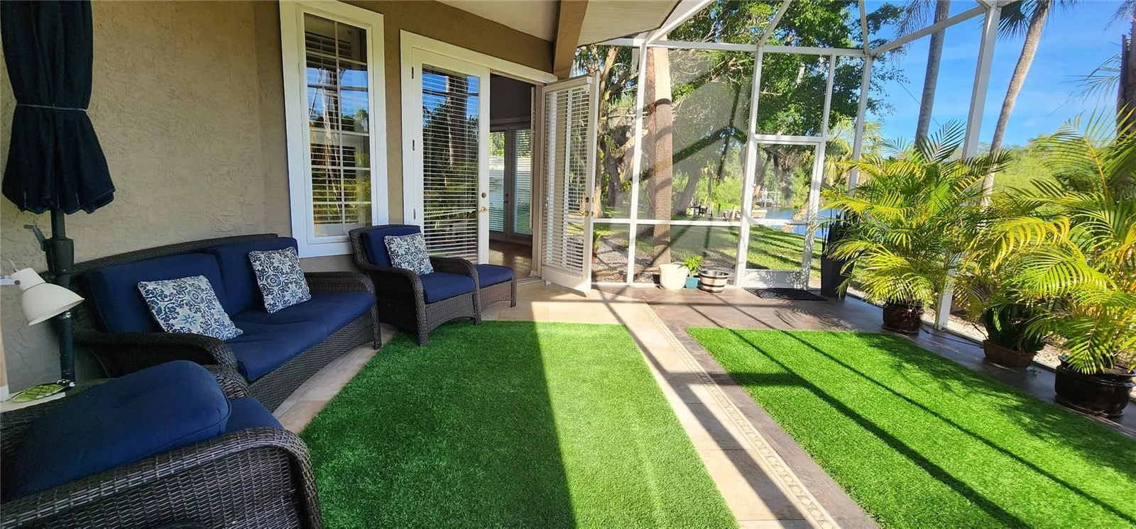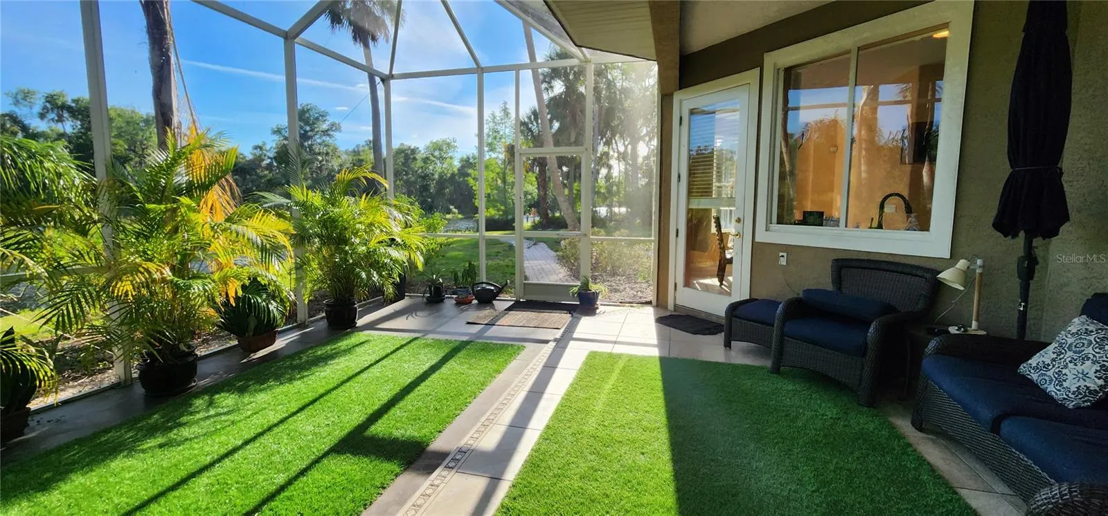 Outside, enjoy the Florida sunshine in the beautifully landscaped backyard, perfect for outdoor relaxation and entertaining guests.