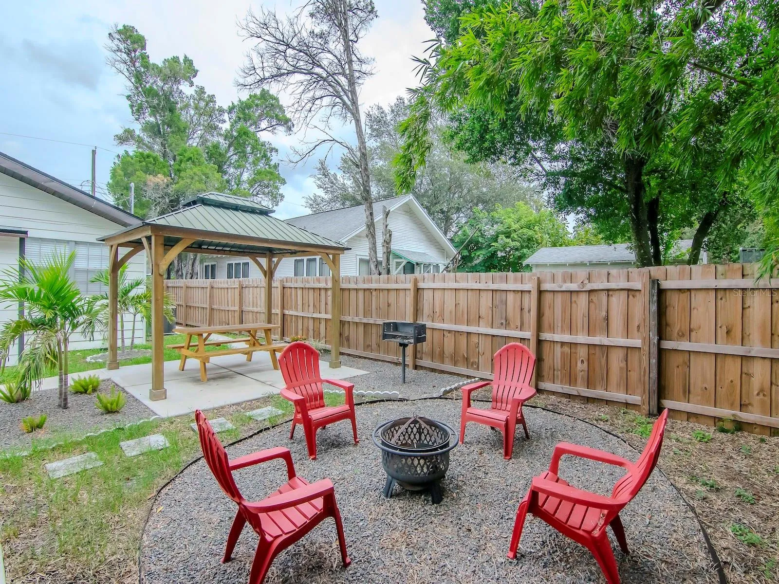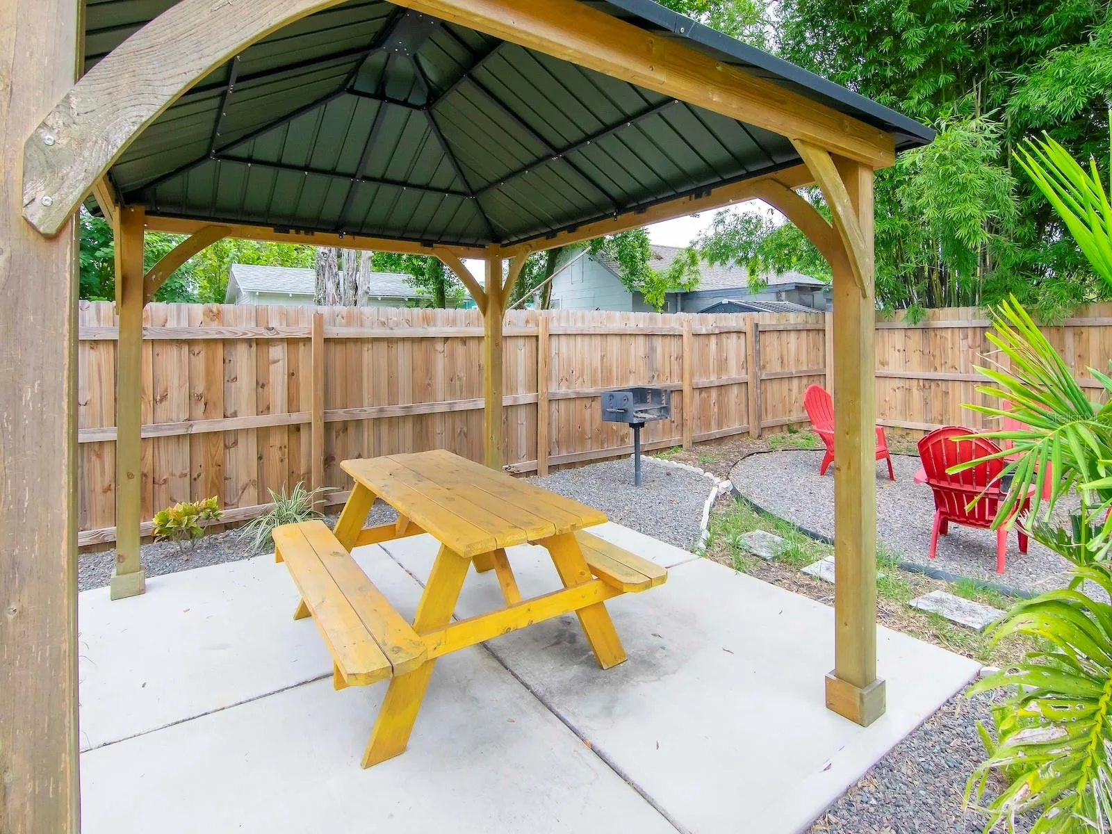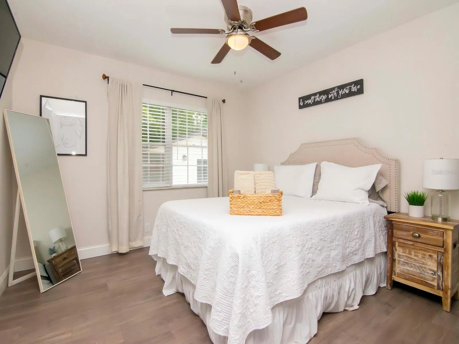This 4/3 property sits in the heart of Seminole Heights. The property is ready to generate income. Furniture from main unit and secondary unit included with purchase. Two spacious bedrooms, one bathroom, kitchen and living room in the main unit. The second unit has a big bedroom, with its bathroom and kitchen space. The additional guesthouse has a comfortable bedroom with its bathroom and kitchen/living area. The guesthouse currently occupied generating $1,400/month. The main unit and second unit was rented as short-term(Airbnb). New roof replaced in 2022. Beautiful fenced backyard decorated with a gazebo, fire pit and chairs, picnic table and grill; extra storage space and outdoor laundry.