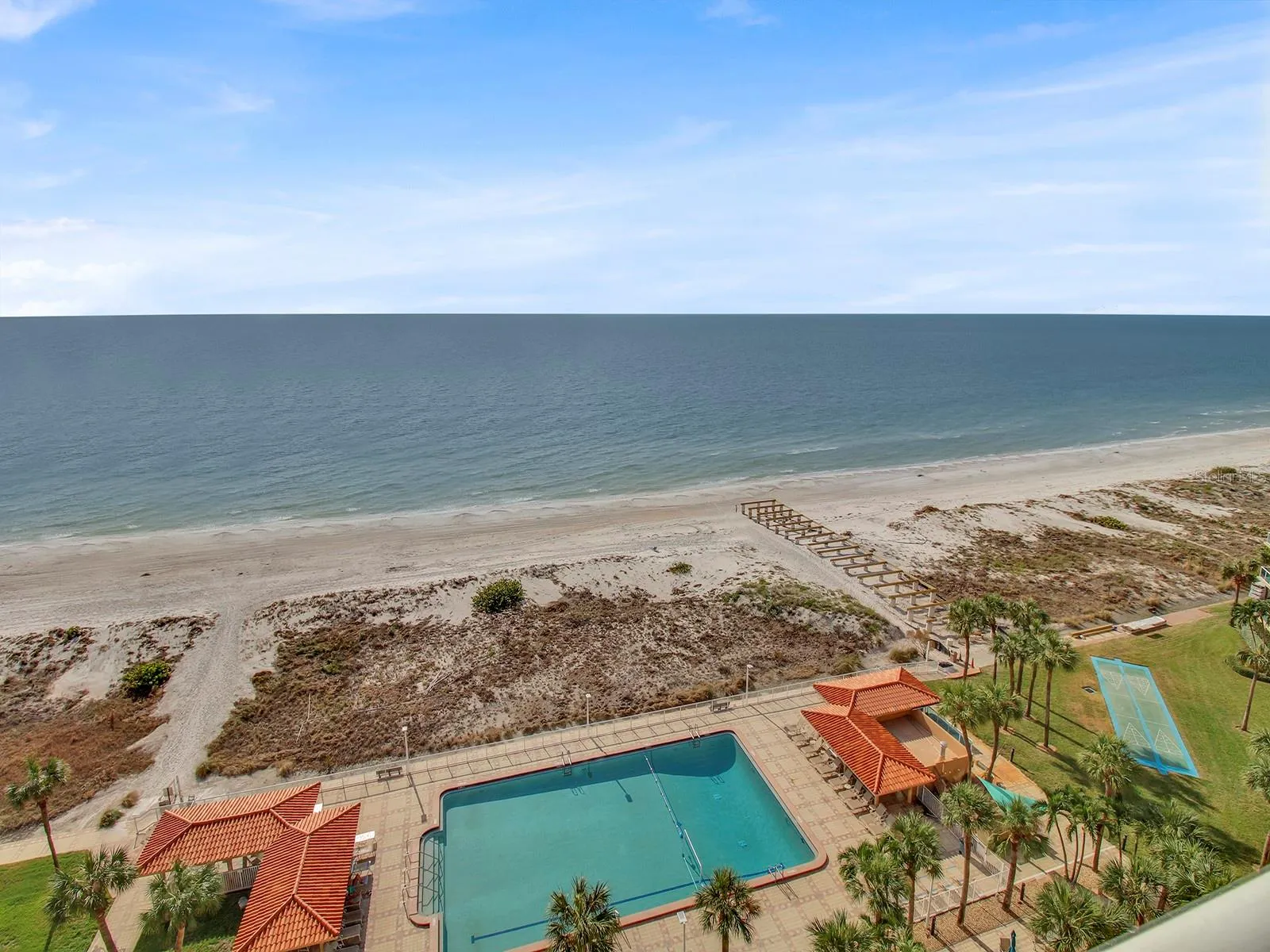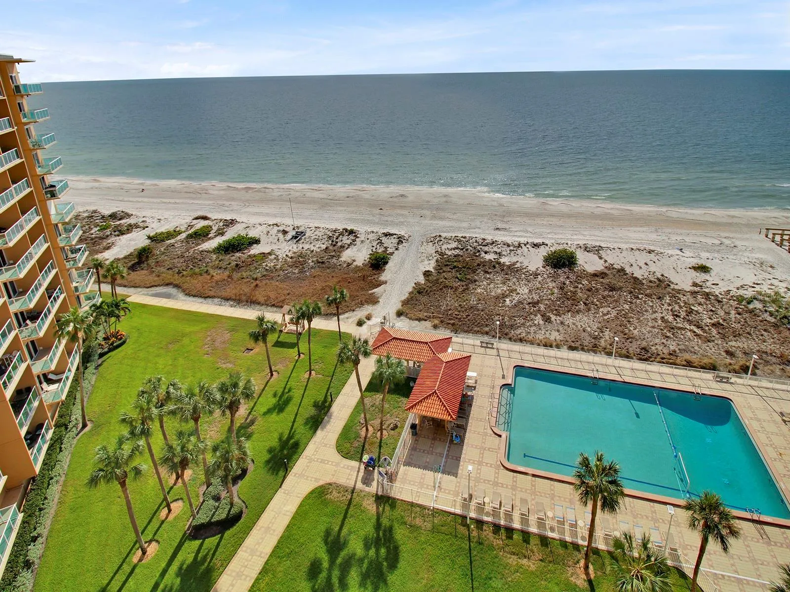 A Winter Oasis Awaits! For those seeking an investment and a vacation escape, look no further. Imagine owning a piece of paradise in the form of this magnificent, rarely available beachfront property at the Regatta Beach Club. This two-bedroom condominium is the perfect blend of both worlds: Picture yourself waking up to stunning sunrises over the bay from your private balcony, and then savoring incredible beach sunsets while sipping your favorite beverages and listening to the soothing sound of the waves. You’ll appreciate the neutral color palette throughout the condo, with plush carpeting in the master bedroom and living room, stunning wood floors in the second bedroom and hallway, and sleek tile in the rest of the living spaces. Both bedrooms are generously sized, and the master bedroom boasts an enormous walk-in closet. As a resident, you’ll have full access to a wide range of amenities, including a well-equipped fitness center, a sparkling pool, convenient gas grills for outdoor cooking, a shuffleboard court for friendly competition, a billiards room for entertaining, and so much more. This condo offers you the opportunity to experience resort-style living at an unbeatable price. Don’t miss out on this fantastic opportunity to enjoy the Snowbird lifestyle in a Gulf Front paradise!