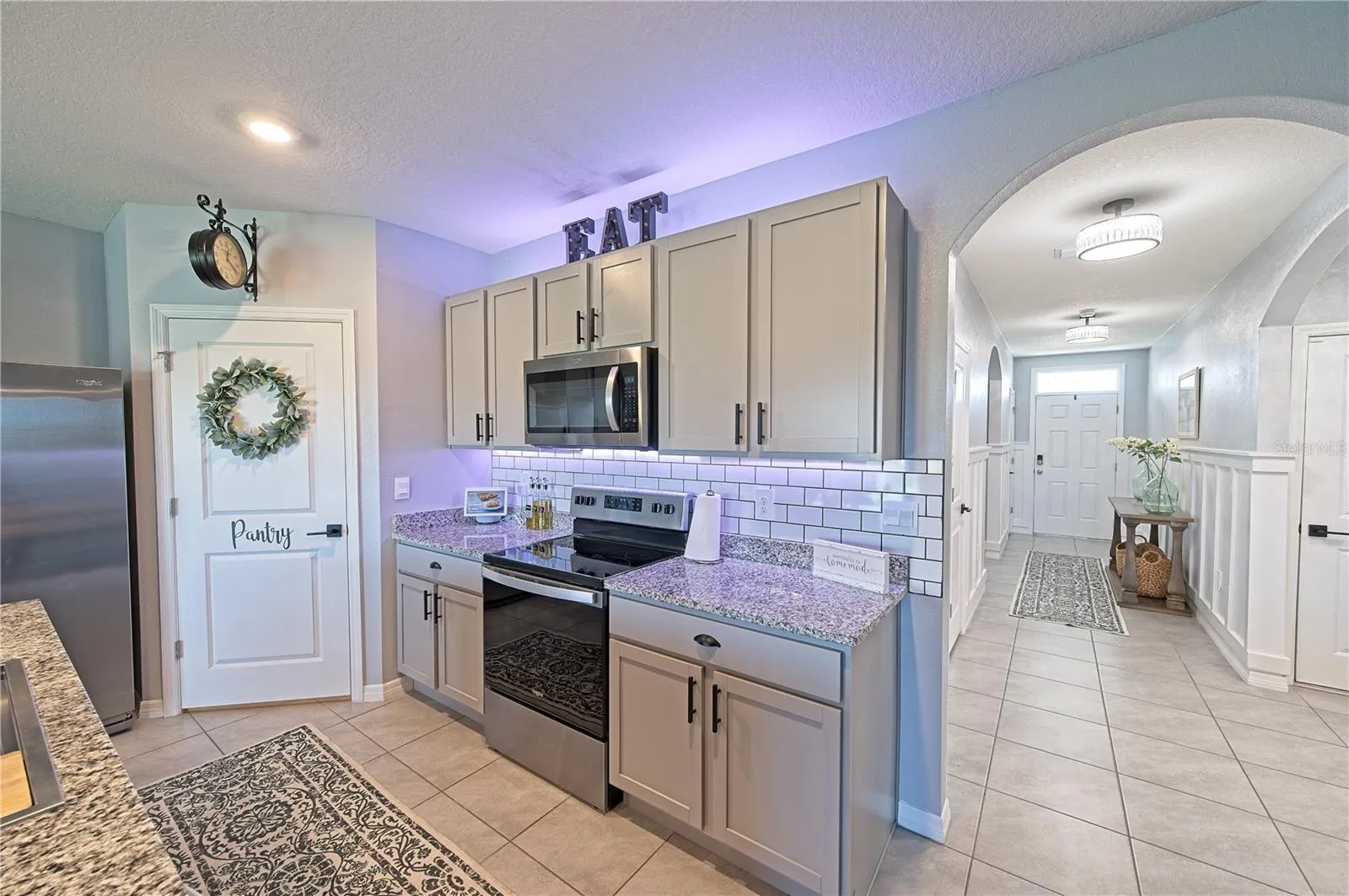 The darling laundry room has been thoughtfully redesigned with shelving and a clothes rod, along with a charming ship lap wall that adds character to the space. Handsome board and batten walls line the entryway hallway all the way to the kitchen, creating a seamless flow throughout the home. And let’s not forget the chef’s kitchen with a walk-in pantry, shiny granite, oversized subway tile, range hood, large island with breakfast bar seating, and views of the lake. Whether you’re entertaining guests or enjoying a quiet evening at home, this home offers the perfect blend of style, comfort, and functionality. Don’t miss your chance to make this exquisite property yours!