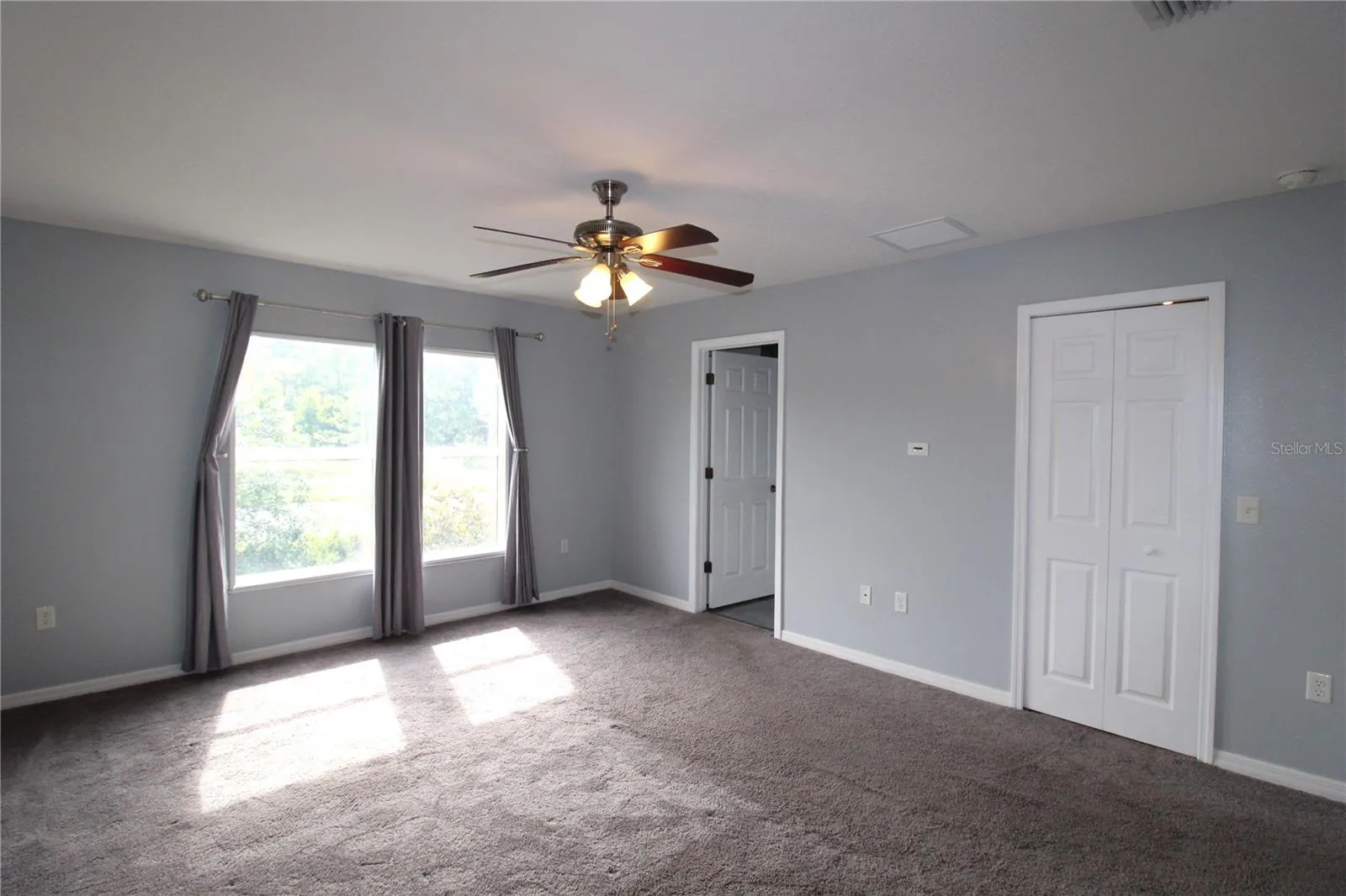- Ceiling Fans(s), Crown Molding, Open Floorplan, Thermostat, Walk-In Closet(s), Split Bedroom, Stone Counters, Solid Wood Cabinets, PrimaryBedroom Upstairs