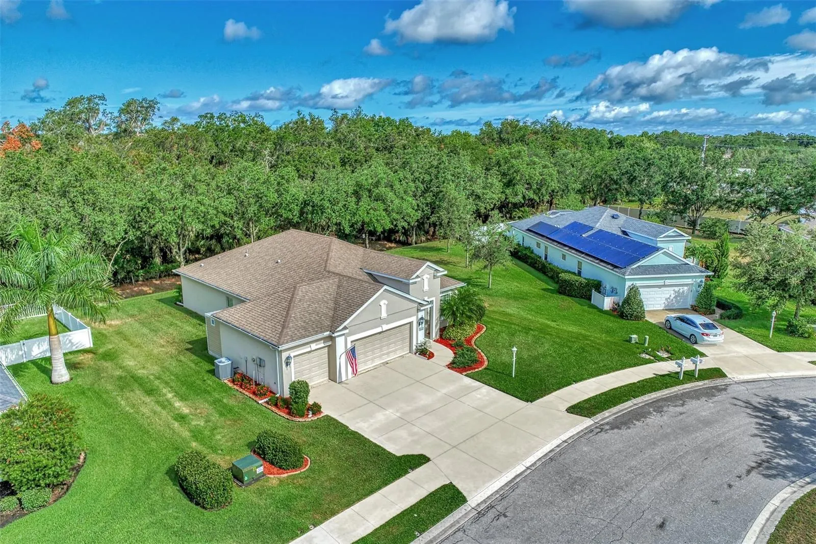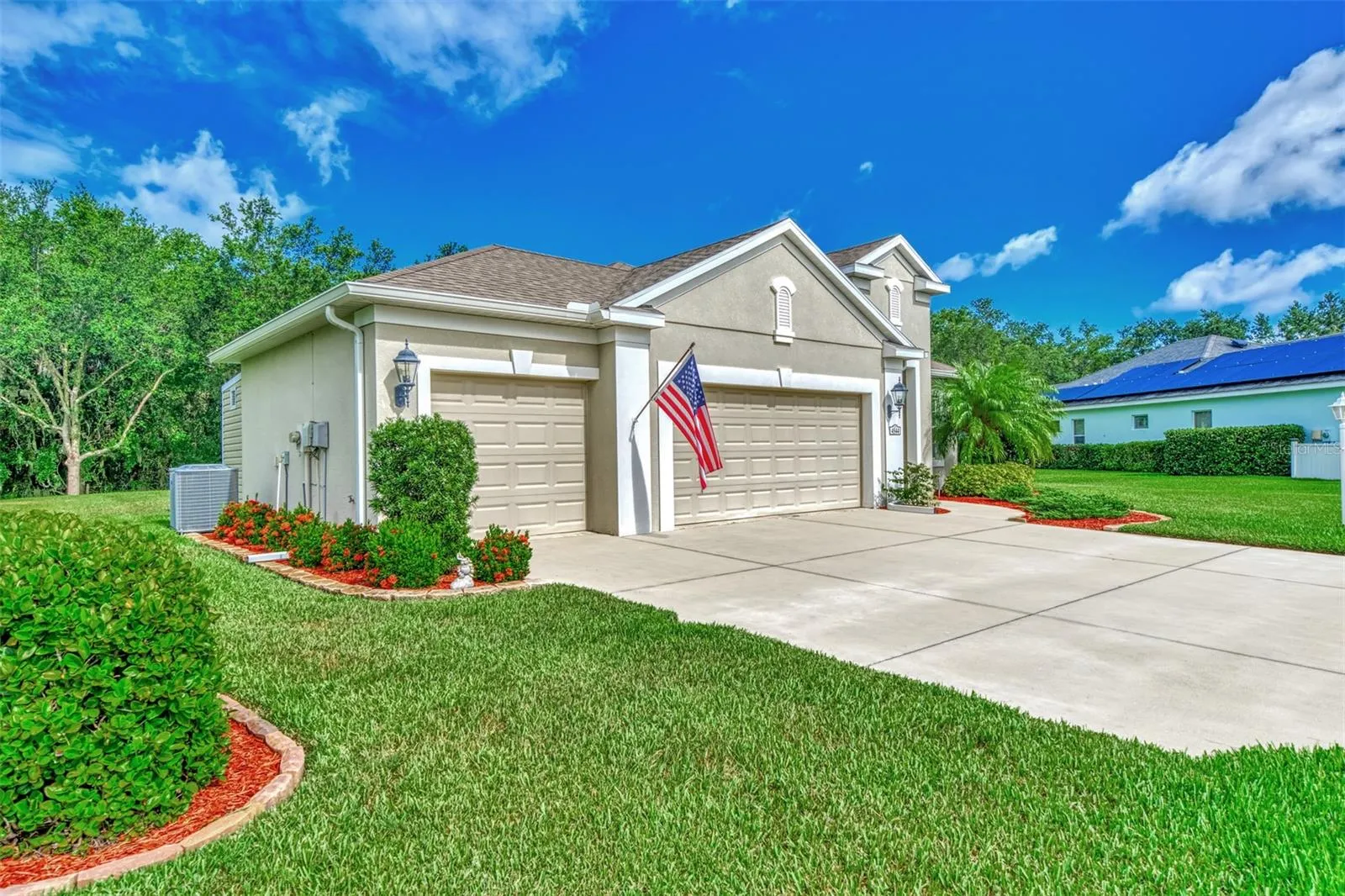 Welcome to your dream home in the highly desired Sugar Mill Lakes community! This delightful 3 bedroom, 2 bathroom residence includes a bonus sunny office currently used as a formal dining room, offering flexibility to suit your lifestyle. The spacious 3-car garage ensures ample storage and parking space. Inside, you’ll find beautiful laminate flooring in the primary bedroom and office, while the rest of the home features stylish 18” tile and cozy carpet in the guest bedrooms. There is an airy, open floorplan leading you through the home where you find the kitchen in the center, featuring shaker-style cabinetry, stainless steel appliances, granite countertops, unique tile backsplash, pendant lighting and a massive center island/breakfast bar where you can drink your morning coffee as you start the day. Overlooking the expansive dining and living areas, this will be the ultimate flex space for entertaining guests at your next gathering! The primary bedroom is your own personal retreat, featuring a generously sized walk-in closet and an en-suite bathroom equipped with his and her sinks, a relaxing garden tub, and a walk-in shower, perfect for unwinding after long days. Adjacent to the kitchen and living areas there are two more bedrooms and a shared bath, perfect for overnight guests or a big family. Outside, the expansive lot, nearly a quarter of an acre, features lush landscaping and no rear neighbors, offering added privacy and tranquility. Spend your evenings on the newly screened-in lanai, watching sunsets with a glass of wine in hand. The home is enhanced with tray ceilings in the living room & primary bedroom and stunning glass French doors in the front office. Additional improvements include the new gutters and a 6×10 stick-built utility building at the back of the garage for extra storage. Sugar Mill Lakes is a quiet community with low HOA dues, a park, a playground, and tennis courts to assist in keeping up an active lifestyle. Centrally located, close to all of the essentials and only 30 minutes from the pristine sandy beaches of Bradenton! Don’t miss this opportunity to own a beautifully upgraded home with all the space and amenities you need. Schedule your showing today before it’s gone!