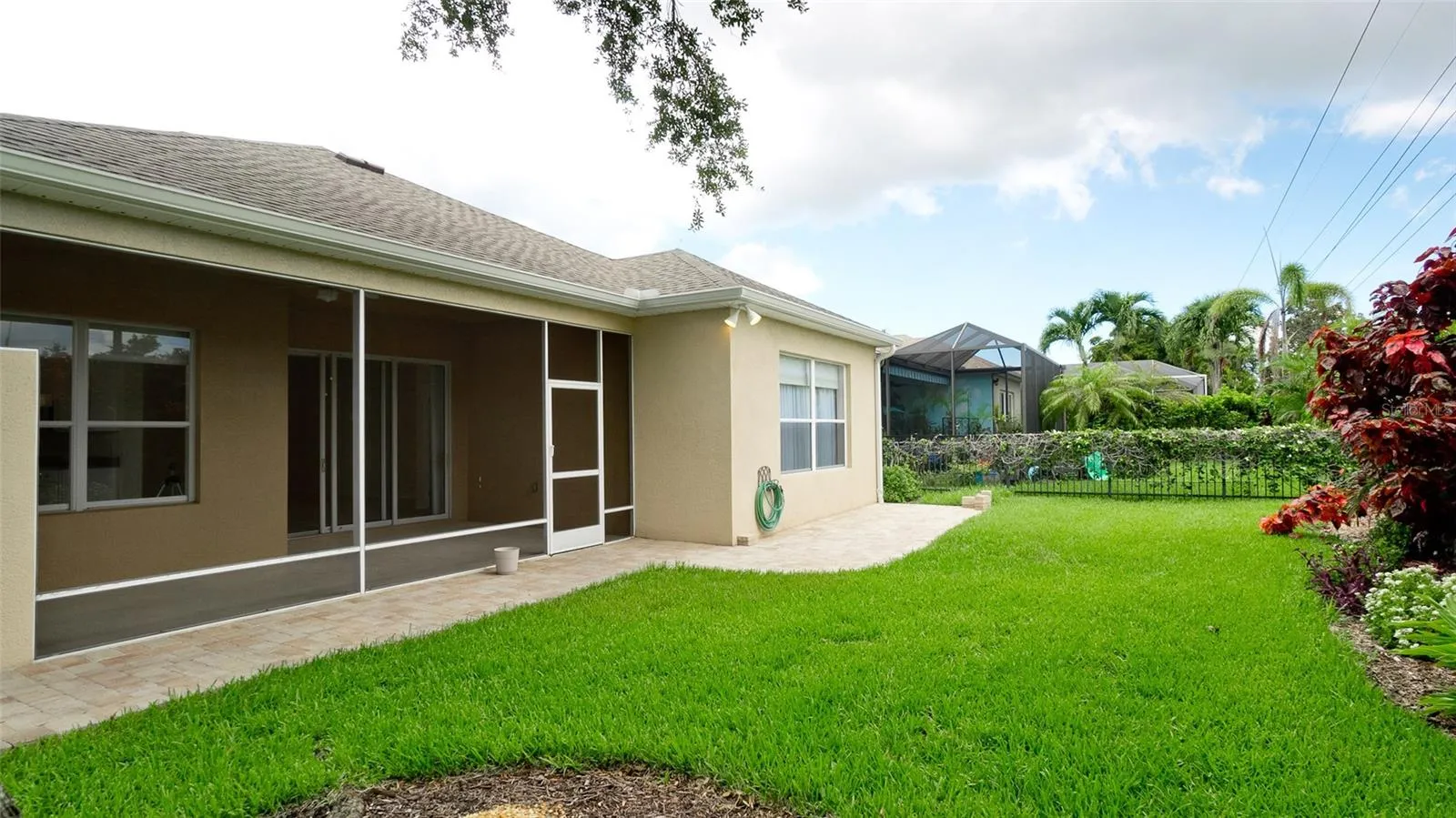 This immaculately clean, well maintained home checks all the boxes for location, lifestyle and maintenance free living. Less than 5 miles to our amazing gulf beaches. This home is just over 2300 SQFT of living area with lots of recent updates: 2023 ROOF, Driveway and patio pavers 2019, 2019 gutters, plank flooring in all the bedrooms 2020, Interior painted in 2019, window treatments 2022, hot water heater 2020, HVAC 2017, kitchen appliances 2021-23. Split floor plan with well proportioed spaces that include an oversized primary bedroom/ bathroom suite. Coffered tall ceilings. Outisde you have screened lanai the is pre plumbed for a future outdoor kitchen and an uncovered patio with pavers that gives you the best of both kinds of outdoor living space. HOA fee includes grounds and shrub maintenance, cable , a resort style community pool, fitness center.