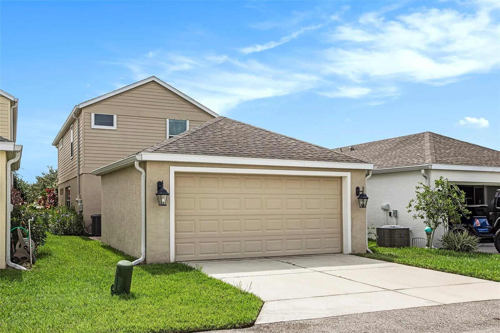 Welcome to this spacious 3 bedroom, 2.5 bath home with a detached 2-car garage providing ample parking and storage space. The kitchen is equipped with a refrigerator, range, microwave, dishwasher, granite countertops, an eat-in breakfast bar, ambient lighting above the cabinets, an island for additional cooking space, a wine fridge, and plenty of pantry storage. The laundry room and a half bathroom downstairs are conveniently located just off the kitchen. Upon entering, you’re greeted by an open concept layout where the living room, dining area, and kitchen seamlessly flow together. Upstairs, you’ll find three bedrooms and two full bathrooms. Two bedrooms share a Jack and Jill style bathroom, each with their own walk-in closets. The primary bedroom features vaulted ceilings, updated vinyl flooring, an ensuite bathroom, and a spacious balcony overlooking a serene lake. Modern ceiling fans are installed throughout the home for added comfort. Outside, a cozy back patio with pavers connects the house to the detached garage. This home enjoys a prime location within a community offering resort-style amenities including a pool, spa, cabana, and outdoor grill. Additionally, there’s a main park with a play area and several small pocket parks scattered throughout. HOA fees include lawn cutting and there are NO CDD Fees. Unique to this property, the front offers a centered POND VIEW, while the back alley is exclusive to this row of homes, ensuring reduced traffic and enhanced privacy without neighboring garage rows on both sides. Conveniently located near Bradenton, Sarasota, and Lakewood Ranch, and just minutes from beaches, major roadways, excellent schools, and shopping centers, this home provides both comfort and convenience. Discover your ideal retreat here and schedule a showing today!