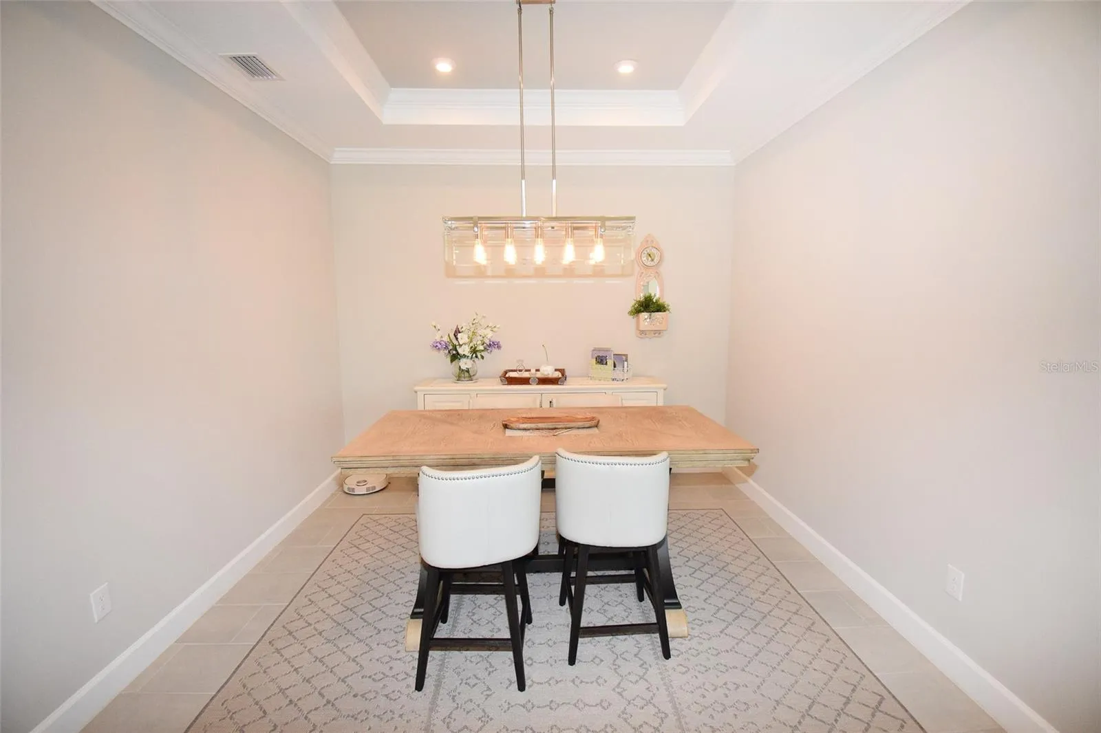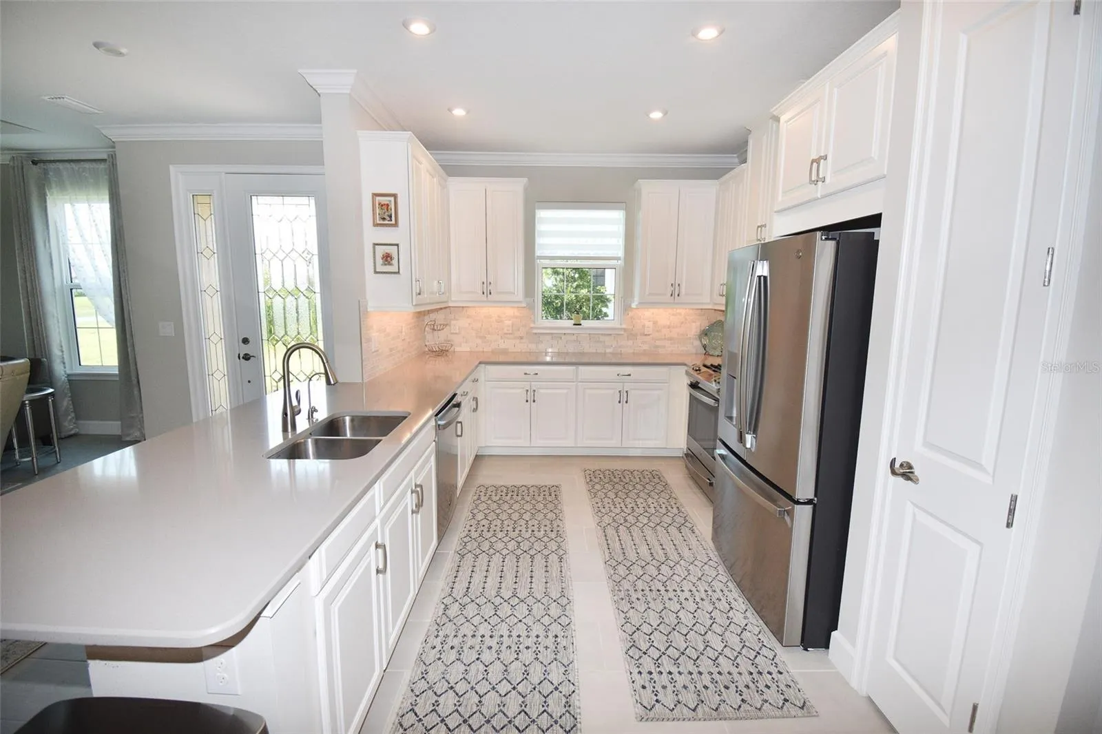 with upgraded Solid Core doors effortlessly connects the living, dining, and kitchen areas, facilitating easy entertaining. The Fabulous upgraded kitchen is a culinary haven, featuring Cambria quartz countertops, 42” white shaker cabinets with rolling shelves and under cabinet LED lighting, with a high-end Glamour-line stainless steel appliance package.Throughout you will find multiple tray ceilings, crown molding, and custom light fixtures adding an element of sophistication. The indulgent owner’s suite boasts a luxurious bathroom with upgraded quartz countertops and tile, dual sinks, and a spacious walk-in closet. The extended lanai with interlocking pavers and screened in enclosure completes the outdoor living experience, (wired for Pool). The garage has 64 sq ft of ceiling mounted storage space complete with a EV Charging Outlet. Esplanade at Azario spoils residents with an impressive array of resort-style amenities, including an 18-hole championship golf course, a pro shop, PGA golf professional lessons, a zero-entry heated pool and spa, a poolside Bahama Tiki bar, a full-service spa, a state-of-the-art fitness center, 6 tennis courts, 16 pickleball courts, Bocce, Dog park and social gatherings. Seize the opportunity to call this exquisite residence your own. Please call me for a private showing.