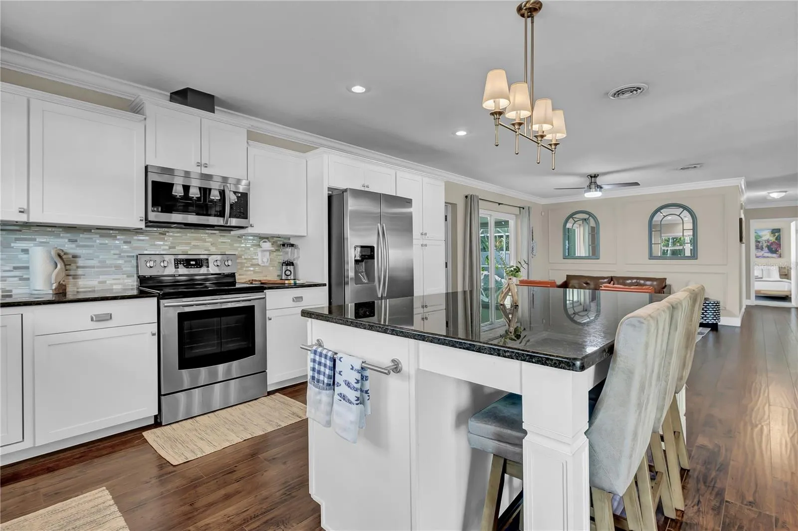 - Open Floorplan, Thermostat, Eat-in Kitchen, Primary Bedroom Main Floor, Stone Counters