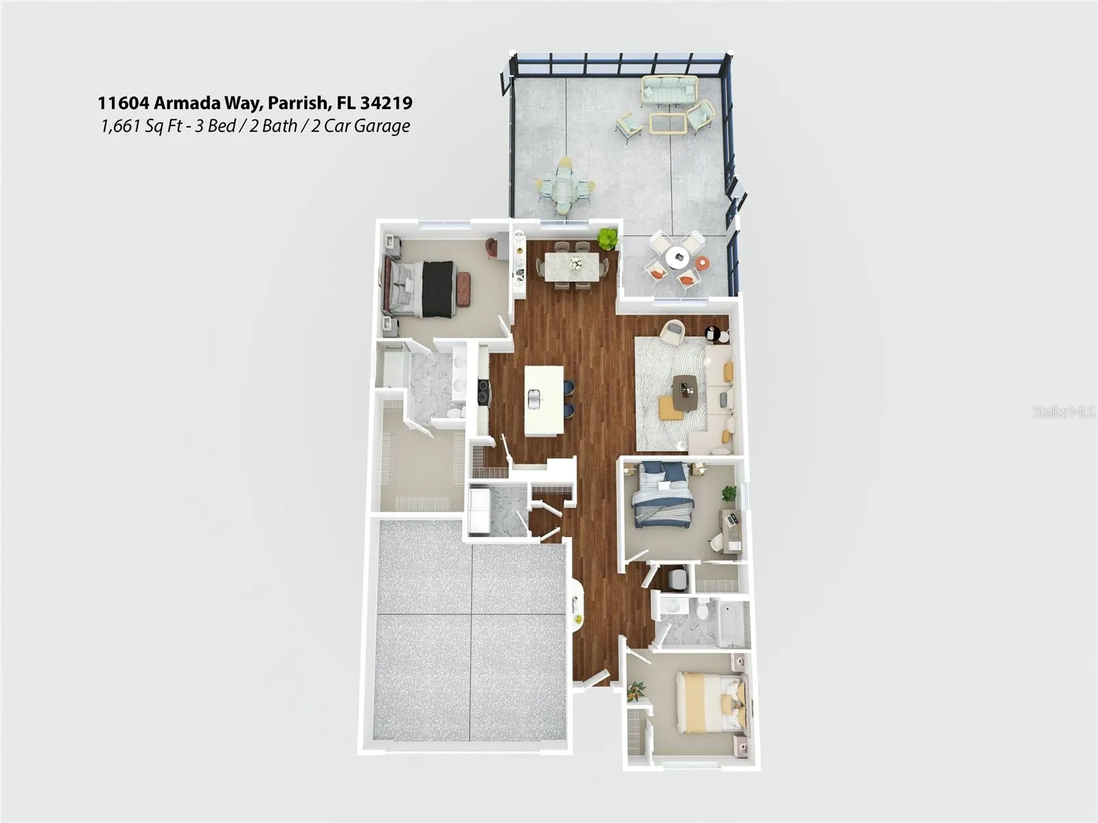 Experience Florida living at its finest in this pristine and elegant residence nestled within the exclusive Isles at Bayview community in Parrish, Florida. Set against the backdrop of a beautiful pond view, this home exemplifies sophistication and charm, offering a serene and picturesque retreat. Step inside to discover luxury vinyl plank flooring throughout most areas of the home, providing durability and a modern aesthetic, while the bedrooms offer plush carpeting for added comfort. The open concept design and spacious kitchen featuring shaker cabinets and quartz countertops create a visually appealing and functional living space, perfect for entertaining guests or simply enjoying daily life. Boasting three bedrooms and two bathrooms, this home provides a comfortable and inviting living environment, perfectly suited for a variety of lifestyles. Convenience is key with essential appliances such as a washer, dryer, and refrigerator included with the property, ensuring a seamless move-in experience. Plus, lawn maintenance is included, ensuring your outdoor space remains pristine with minimal effort. The custom lanai is a standout feature, providing a panoramic and unobstructed view of the lake, creating an idyllic setting for relaxation and outdoor enjoyment. Meticulously upgraded, this property offers an array of amenities designed to elevate comfort and convenience. From the fully insulated garage equipped with dual ceiling fans, epoxy flooring, and heavy-duty shelving to the fenced backyard adorned with palm trees for added privacy and aesthetics, every detail has been carefully considered. Residents of the community can also enjoy a host of amenities including a pool, trails, and a dog park, further enhancing the overall lifestyle appeal of the neighborhood. It is also just a few minutes away from the public crystal lagoon currently under construction at Seaire Lagoon. Additionally, the home’s convenient location, just 5 minutes from I-75 and with back access to US41, offers easy access to major transportation routes, making commuting and travel a breeze. With its exceptional features and desirable location, this home is a rare find and is expected to generate considerable interest. Don’t miss the opportunity to experience the perfect blend of functionality and comfort that this delightful residence has to offer.
