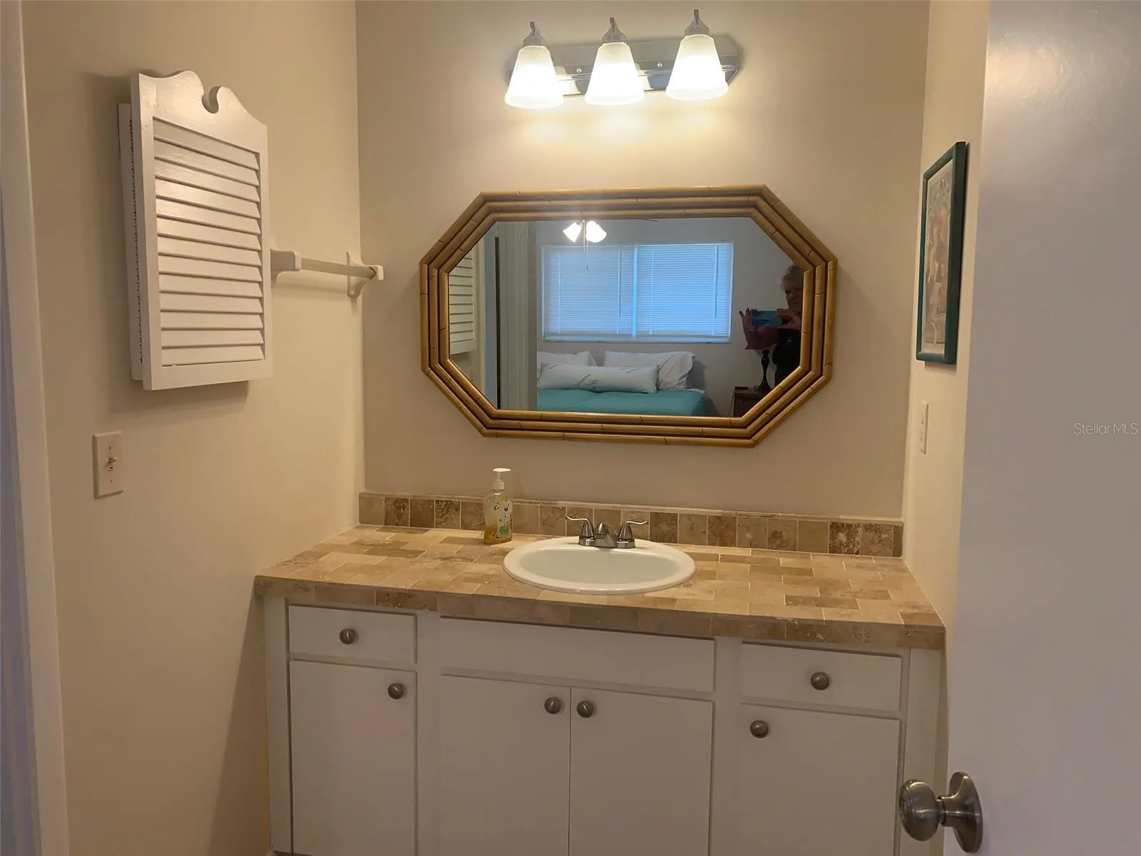 Move in ready! This charming villa is located in the heart of Bradenton in a 55 + Community. The Villa style living is the best ground level with covered carport, outside patio area with retractable awning and grill and all the community amenities, heated pool, shuffle board and clubhouse. This desirable villa boast 2 bedrooms, 1.5 bath with one bedroom with removable wall making this a guest room or office The nice size kitchen has solid countertops with newer appliances and a pass through to dining area. The living /dining area is very spacious leading to Florida room with lots of natural light leading out to the patio. The villa air conditioning system replaced in 2019. All furnishings include.