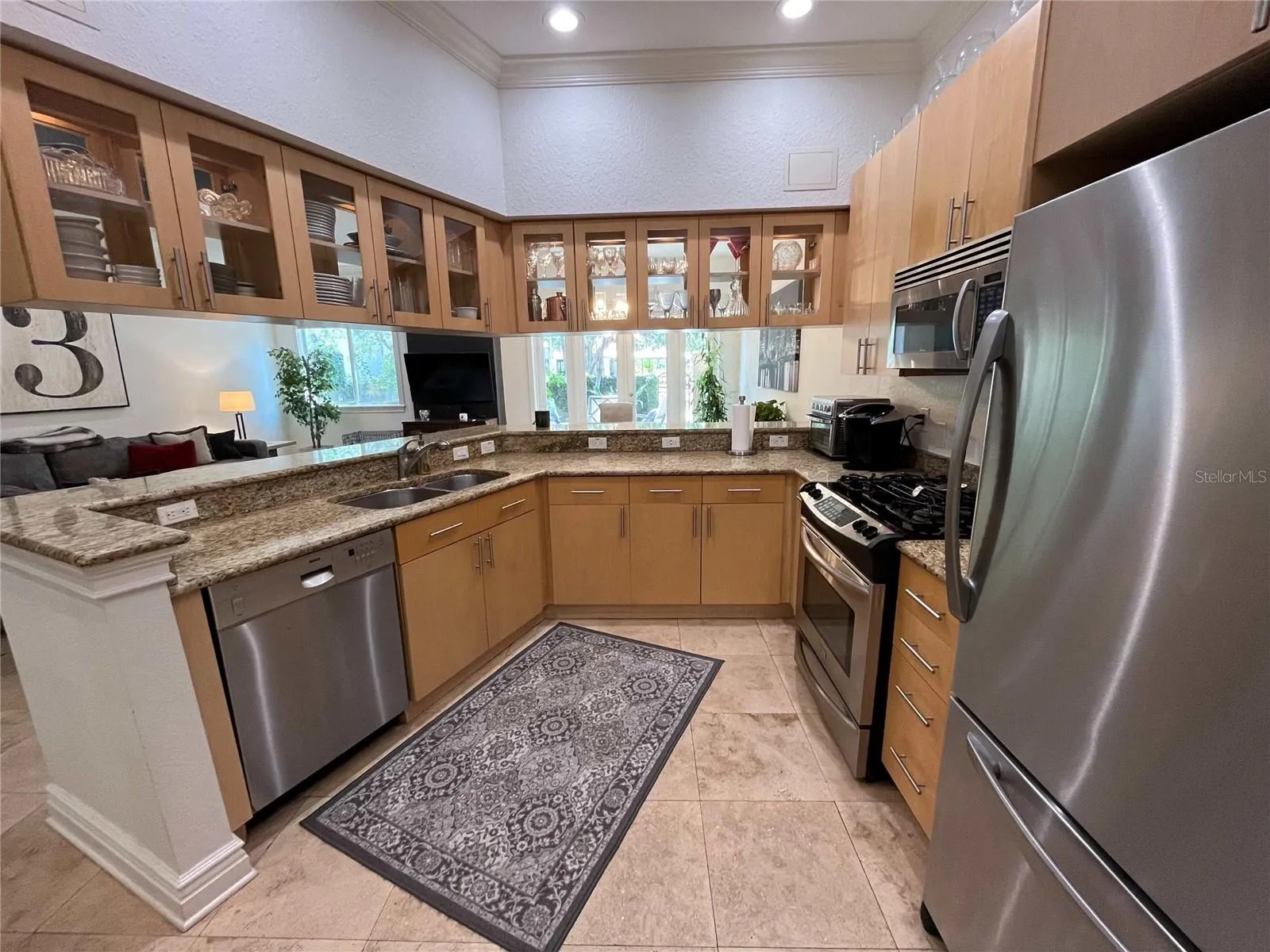 - Ceiling Fans(s), Crown Molding, Open Floorplan, Thermostat, Walk-In Closet(s), Window Treatments, High Ceilings, Vaulted Ceiling(s), Solid Wood Cabinets, Solid Surface Counters, Wet Bar