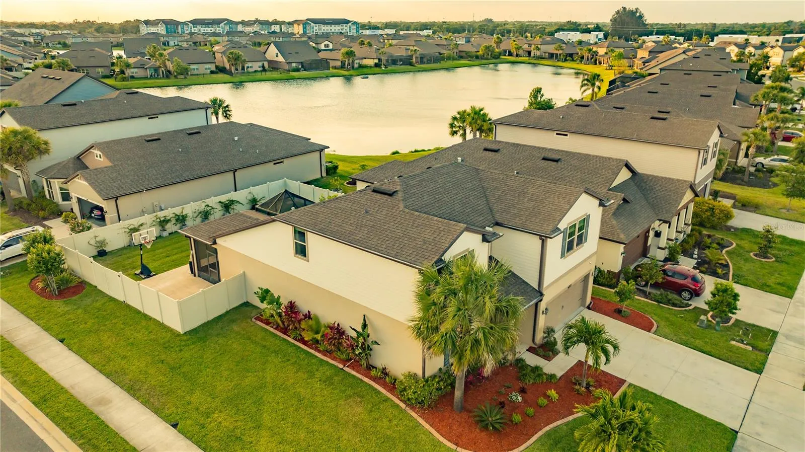 **SELLERS CURRENT ASSUMABLE 5% INTEREST RATE MORTGAGE AVAILABLE FOR QUALIFIED BUYERS** Why wait for a new build when you can own better than new, LOADED with costly and time consuming upgrades NOW? Upon arrival, you will immediately notice pride in ownership of this home with the lush tropical landscaping, meticulously maintained yard and the ultimate curb appeal. This well designed and spacious two-story home not only has a unique oversized private lot, it is also conveniently located just a short walk to the popular Trevesta Resort & Pool/ Clubhouse area, mail boxes and school bus stop. Upon entering you will find no detail missed and loads of tasteful and unique luxury upgrades. This classically decorated five bedroom and three bath home has space for the entire family as well as room for entertaining inside and out. With the owner’s suite on the main floor, along with a full guest bathroom and additional bedroom, plus the upstairs with three additional bedrooms including private and spacious closets, full bathroom and loft space as a bonus living room, give this home a unique personality while providing opportunity for multi-generational living. The main floor boasts a dreamy gourmet chef’s kitchen that includes a center island with cozy seating space to gather under the newly added trendy pendant lighting. You will also love this bright kitchen with ample cabinets with crown molding, stainless steel appliances, stylish backsplash and everything you need to create your next favorite meal. Prepare to be delighted with the impressive primary suite downstairs highlighting a super shower and large vanity space with dual undermount sinks, cabinets and closets that provide a plentiful amount of storage. Once outside, Prepare to be wowed and ready to relax in your new hot tub with waterfall and LED lights to end the day in this recently added outdoor space. The owners also added additional lanai space with screen enclosure to ensure maximum outdoor living with comfort and serenity, not to mention capturing the most spectacular sunsets. In addition to the lanai space, you will find a newly added basketball court surrounded by lush tropical landscaping. This unique oversized backyard comes with a 6 foot fence for immediate privacy, eliminating the cost and time of waiting for fence approval. The owners made these outdoor luxury upgrades while still leaving you plenty of space to play in the back yard or to build your own pool! Additional owner upgrades include: Whole home water softener, fresh updated tropical landscaping, smart home system, window blinds throughout the home, lavish lighting and fans throughout, fresh paint throughout, and SO MUCH MORE to make this home truly “turn-key”. Trevesta Community amenities include: Zero/Beach Entry Resort Style Pool with Cabanas, Covered Outdoor Entertaining Area, Splash Pad, Playground, 5600 Sq Foot Clubhouse, Clubhouse Manager and dedicated events community offering multiple exciting monthly and weekly community events and clubs, 24 Hour Fitness Center and Lakeside Walking/Jogging Trails. The LOW HOA fees come with a great value including: Cable, Internet and Irrigation water. Conveniently located to all major highways providing quick and easy access to WORLD FAMOUS beaches, St. Petersburg, Tampa, Bradenton, Lakewood Ranch and Sarasota destinations.