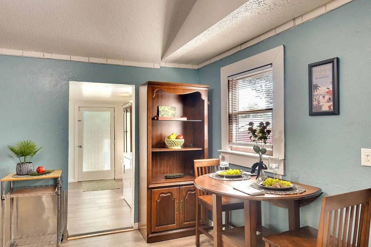 The home’s layout includes a sunlit living room that serves as a warm and welcoming gathering spot. The cute sunroom overlooking the backyard offers a tranquil retreat, perfect for enjoying a book, sipping coffee, or simply soaking up natural light throughout the day.