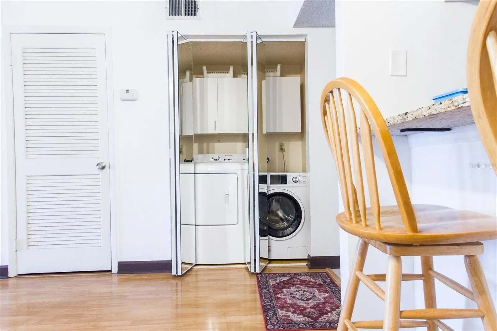 The kitchen was updated approximately four years ago with white cabinets and stainless steel appliances. The generously sized master suite includes a private bath and a walk-in closet. Washer (2023) and dryer (2024) in unit. Additional updates include a brand new water heater and two newer hurricane/impact windows. Enjoy sitting down in your private screened balcony, which also features a storage closet. The community offers a refreshing pool, ideal for cooling off on warm summer days. With maintenance-free living, the community association takes care of landscaping, exterior maintenance, and common area upkeep, allowing you to focus on enjoying your home and its amenities!
