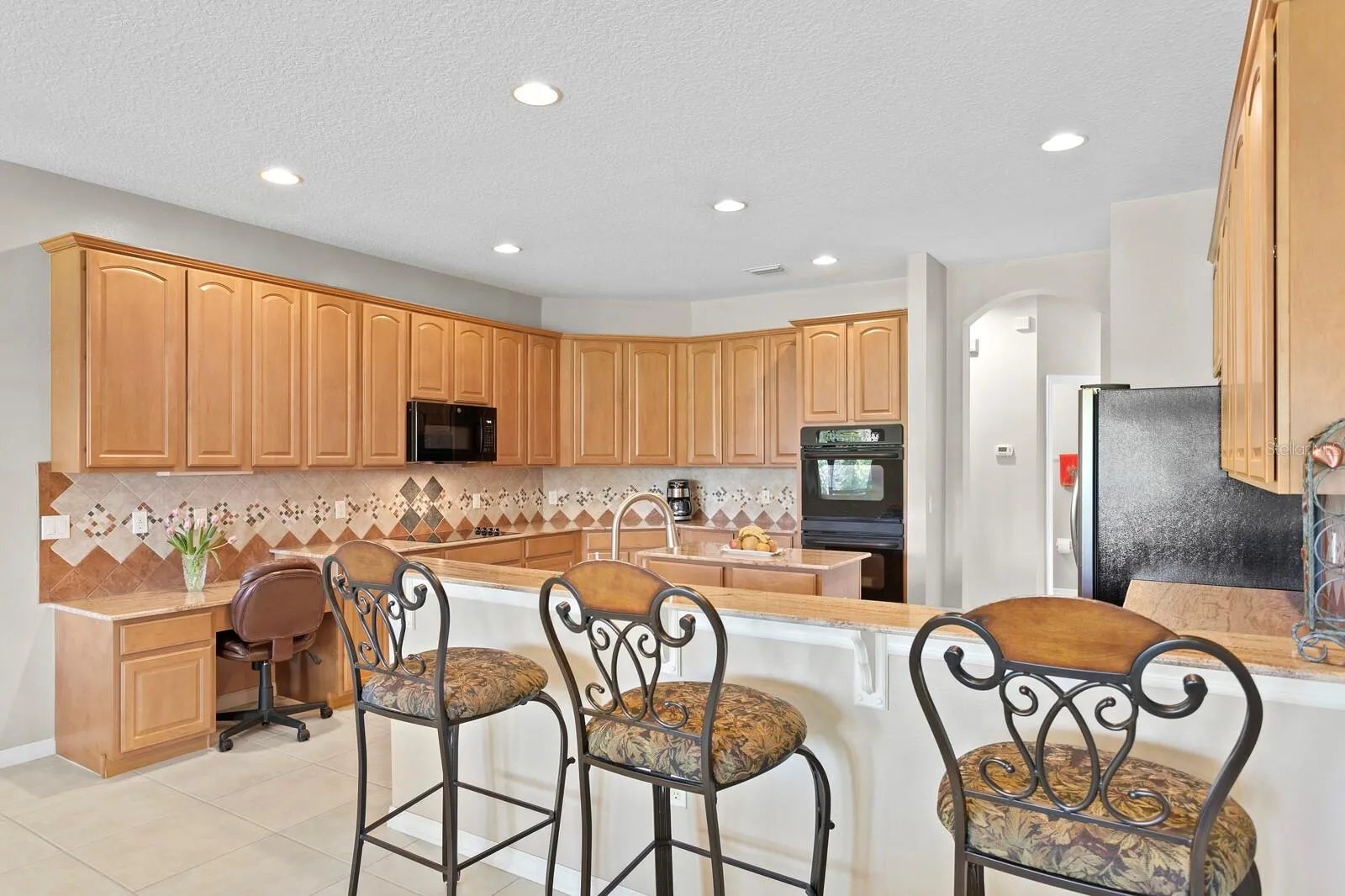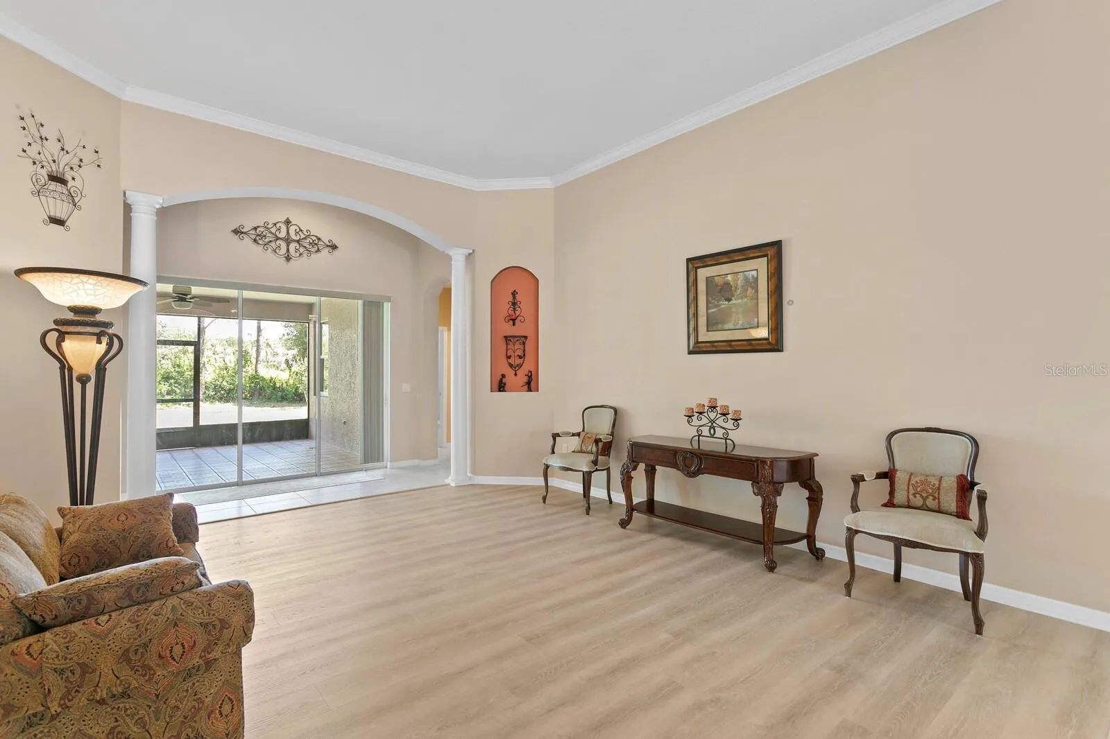 Discover unparalleled design where every detail has been crafted with care! This exciting new listing, built by Beazer Homes, boasts 5 bedrooms 3.5 bathrooms, 3468 ft.² with a massive backyard. Recent updates include NEW luxury vinyl plank flooring (2023), NEW toilets (2023), NEW Whirlpool SS French Door Refrigerator, NEW Frigidaire SS Dishwasher, NEW sink & faucet in the kitchen (2023), NEW cooktop (2023), NEW finish on garage floor, and NEW microwave (2022). You will love the curb appeal with architectural details such as column accents, archways, red barrel tile roof, fresh new landscaping, and custom glass double doors. As you walk through the front doors, you are welcomed by the formal areas that includes plantation shutters, crown molding, chandelier with medallion, column accents and new luxury vinyl plank flooring in the formal living room. The kitchen is a chef’s dream with 42 inch maple cabinetry, custom tile, backsplash, granite countertops, large kitchen island with extra storage, NEW glass cooktop, NEW microwave, breakfast bar and recipe desk. The family room is generous in size with plenty of natural sunlight, brand new luxury vinyl floors, and panoramic views overlooking the lush backyard. The primary bedroom is a massive 28×14 with a separate sitting area, crown molding, plantation, shutters, column accents, tray ceilings and an en suite bathroom. The en suite bathroom has two large walk-in closets, a garden bath tub, plantation shutters, his and her vanities and a glass block walk-in shower. The office is located in the front of the house offering brand new luxury vinyl flooring with plantation shutters and plenty of closet space. The secondary bedrooms all have brand new luxury vinyl floors and plenty of closet space. You will love your outdoor oasis on the covered lanai overlooking the conservation views. Yes, you can have it all! Arbor Greene offers amenities that include nature bike paths around 90 acres of scenic lakes, Community Clubhouse, 2 community pools, fitness center, tennis courts, playgrounds and basketball courts. All furnishings in family room, living room, dinning room, primary and 3rd bedroom included. Most decorations and paintings on the wall and all gardening tools in the garage are included as well. Located minutes to I-75, I-275, Wiregrass Mall, Tampa Premium Outlets, Shopping, Entertainment, Restaurants, USF, Moffit Cancer Center, Flatwoods Preserve, Hospitals and excellent rated schools. Welcome Home!