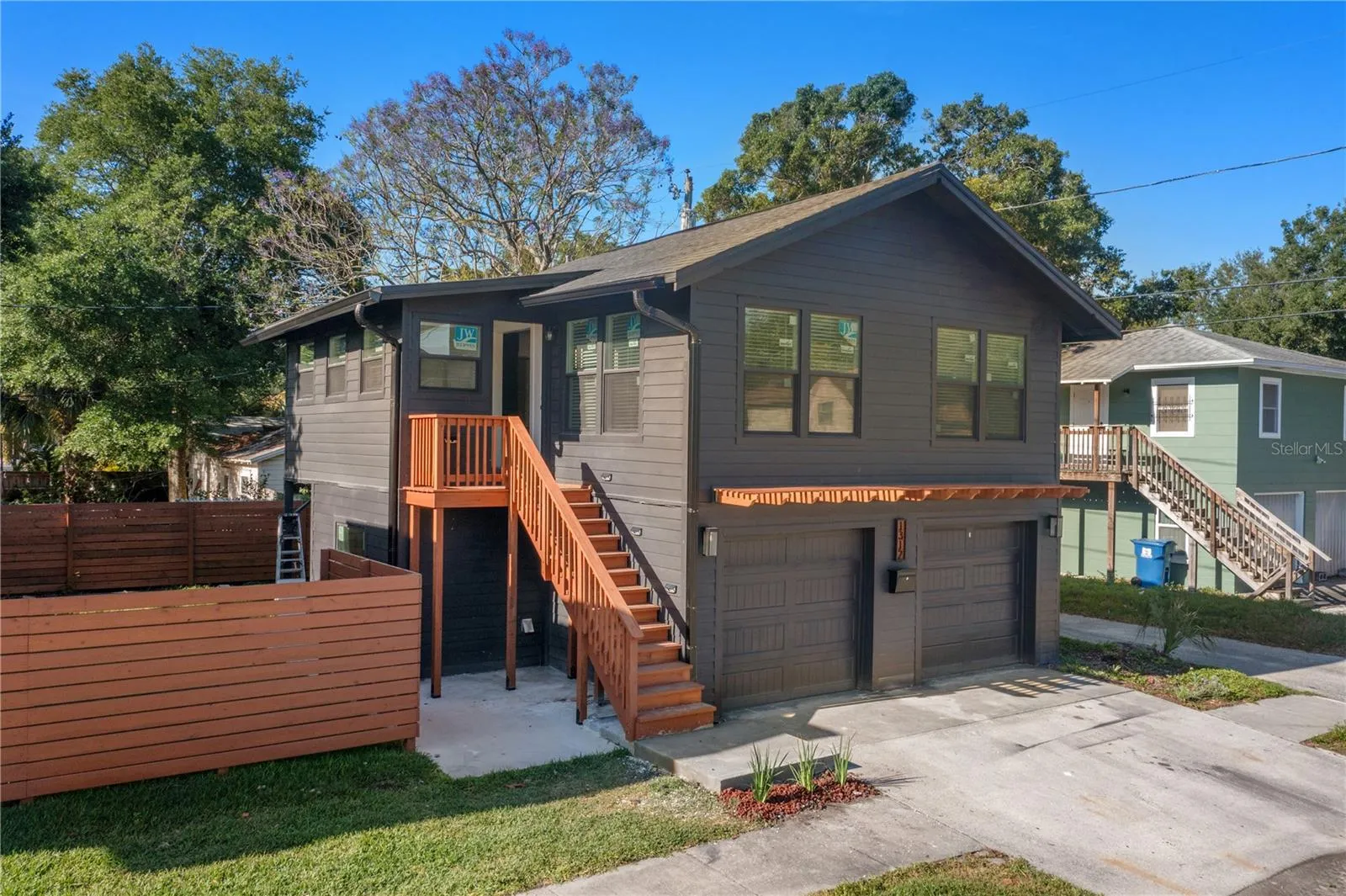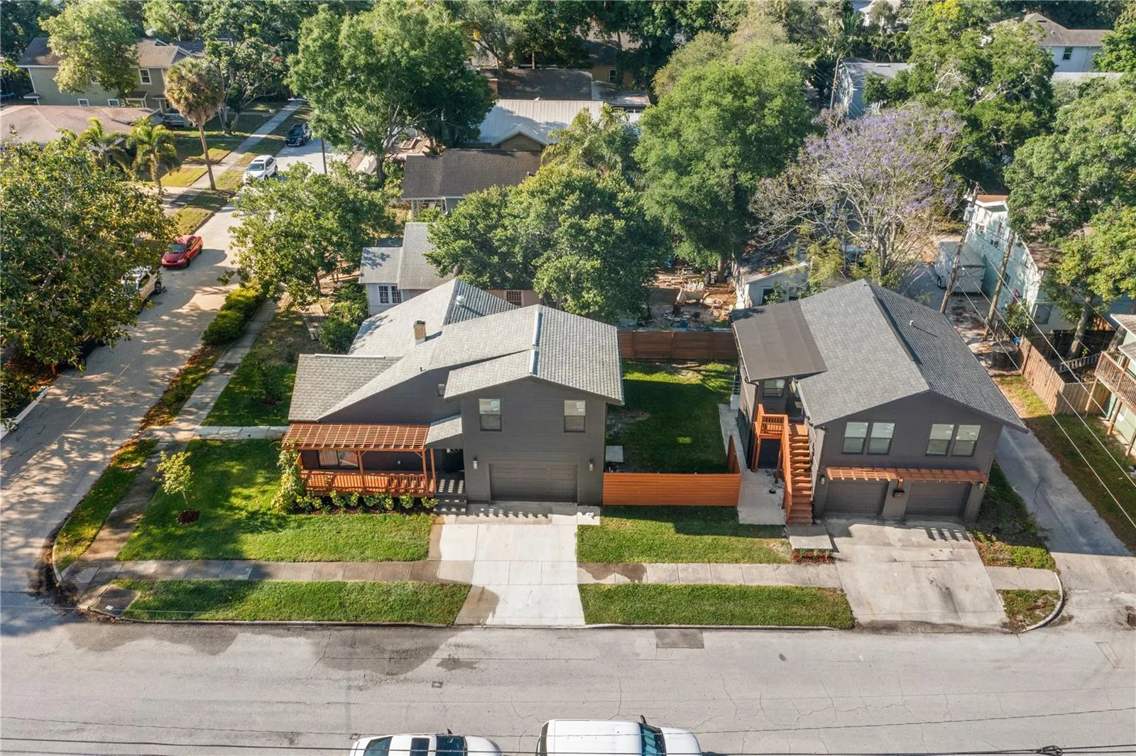 TWO HOMES, ONE LOT, ENDLESS POSSIBILITIES! Just two miles from the St Pete Pier and one mile from Tropicana Field, the MAIN HOME maintains its original charm while boasting 3 bedrooms, two full baths and a heated square footage of 1,216. Whether a chef or food hobbyist, one will appreciate the details put into the spacious galley kitchen that has been fully updated with white cabinets and granite countertops, complete with LG Thin Q stainless-steel appliances and as a bonus, a pot filler faucet just above the gas cooktop. Privacy is at a premium with the primary bedroom on the second floor, complete with an ensuite bath with a beautiful walk-in shower. While remodeling this home, to improve efficiency both the interior and exterior walls were insulated, and an on-demand water heater was installed. Just beyond the shared courtyard is the 723 heated square footage SECONDARY HOME. With two bedrooms and one bath, the SECONDARY HOME is just as impressive. The kitchen décor is gorgeous with navy cabinets and white quartz countertops, featuring three Lazy Susans and stainless-steel appliances. An open concept adds flexibility to the living room and sitting room. There is even an option for a home office or reading nook. Both structures have their own laundry facilities as well as private garages. Both homes are equipped with impact windows, including the sliding glass door in the main house. The MAIN HOME has a two-car attached garage while the SECONDARY HOME has two large, private garage bays, offering secure parking and guest parking to both homes. The homes have separate electric and water meters. New sod was recently sown, and a new, well fed irrigation system has been installed. Glass doors have been ordered for both walk-in showers and are expected to be installed in the near future. This is a true gem that must be seen to be fully appreciated. Main house roof 2022, both HVAC systems 2023. Total square footage of the secondary home is 1,413.