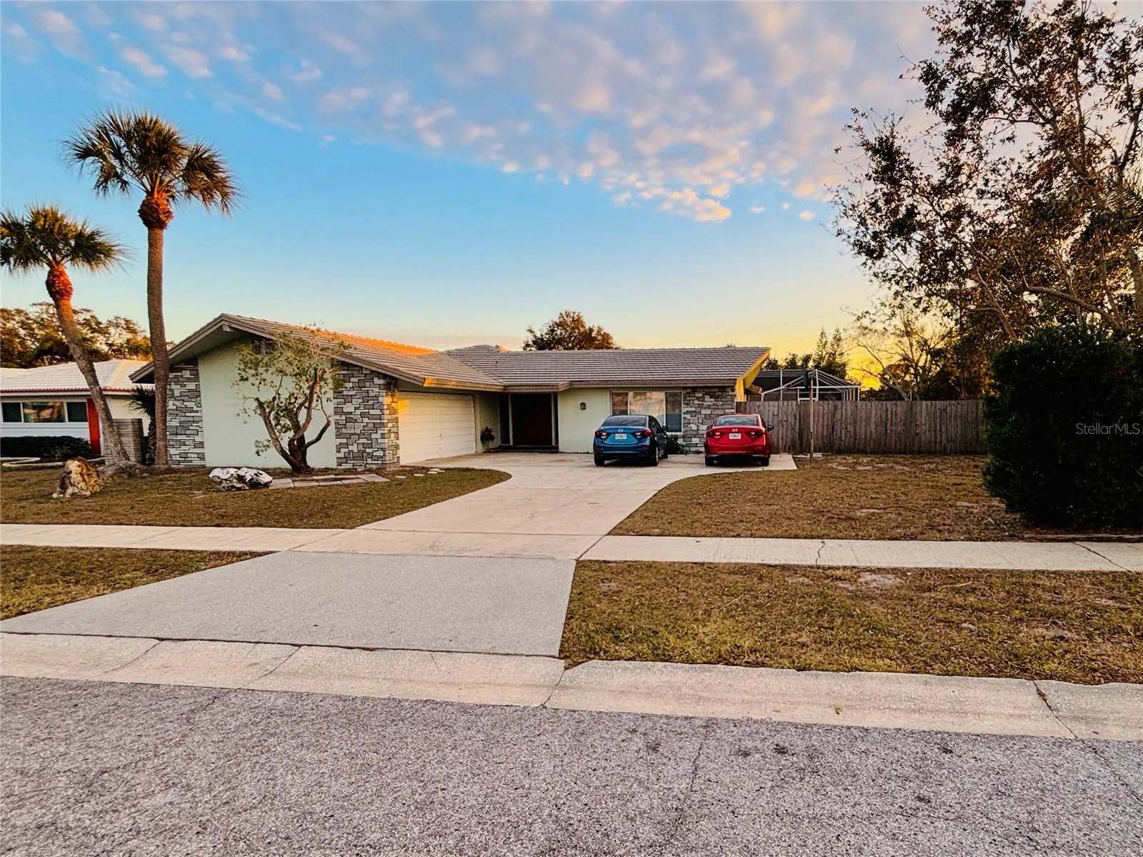 As you step inside, you’ll find a versatile split bedroom floor plan with a large living room,expansive eat-in kitchen and a massive game room/family room with soaring ceilings,and a cozy wood burning fireplace. BRAND NEW durable luxury vinyl plank flooring has just been installed throughout the home to ensure low-maintenance living. Situated on a large corner lot at just under 1/3 of an acre, the property boasts a gorgeous screen enclosed pool with heated jacuzzi/spillover spa – perfect for outdoor living and relaxing in style. There is also a large laundry room and a 2-car garage offering ample room for vehicles and storage. Located in a walkable neighborhood with a nearby elementary school, you’ll love the convenience of being close to restaurants, stores, medical facilities and the airport. Whether you’re raising a family or looking for a one-level retreat, this home has it all. Don’t miss your chance to own this dream home in a fantastic community!