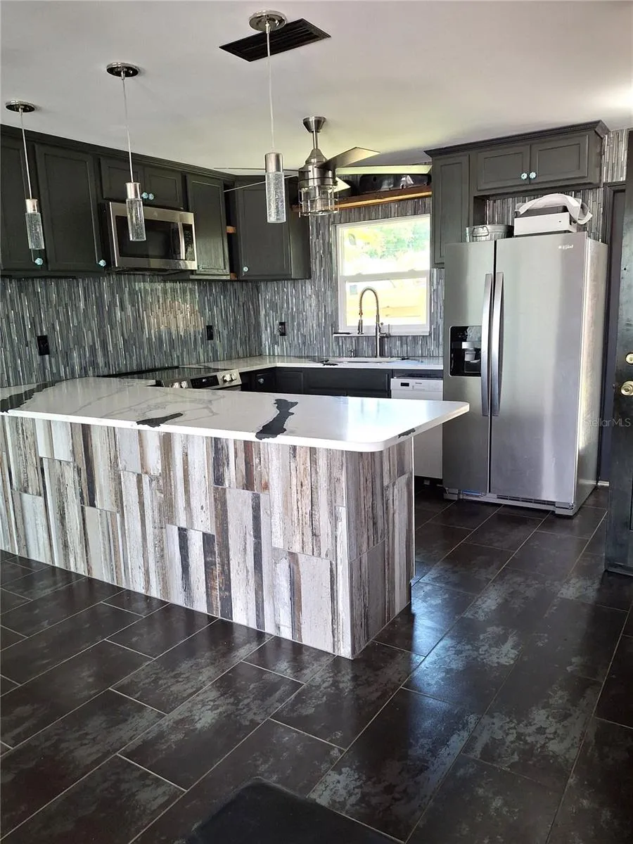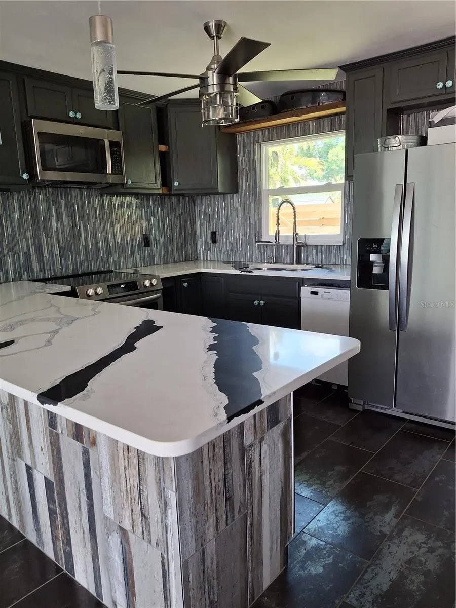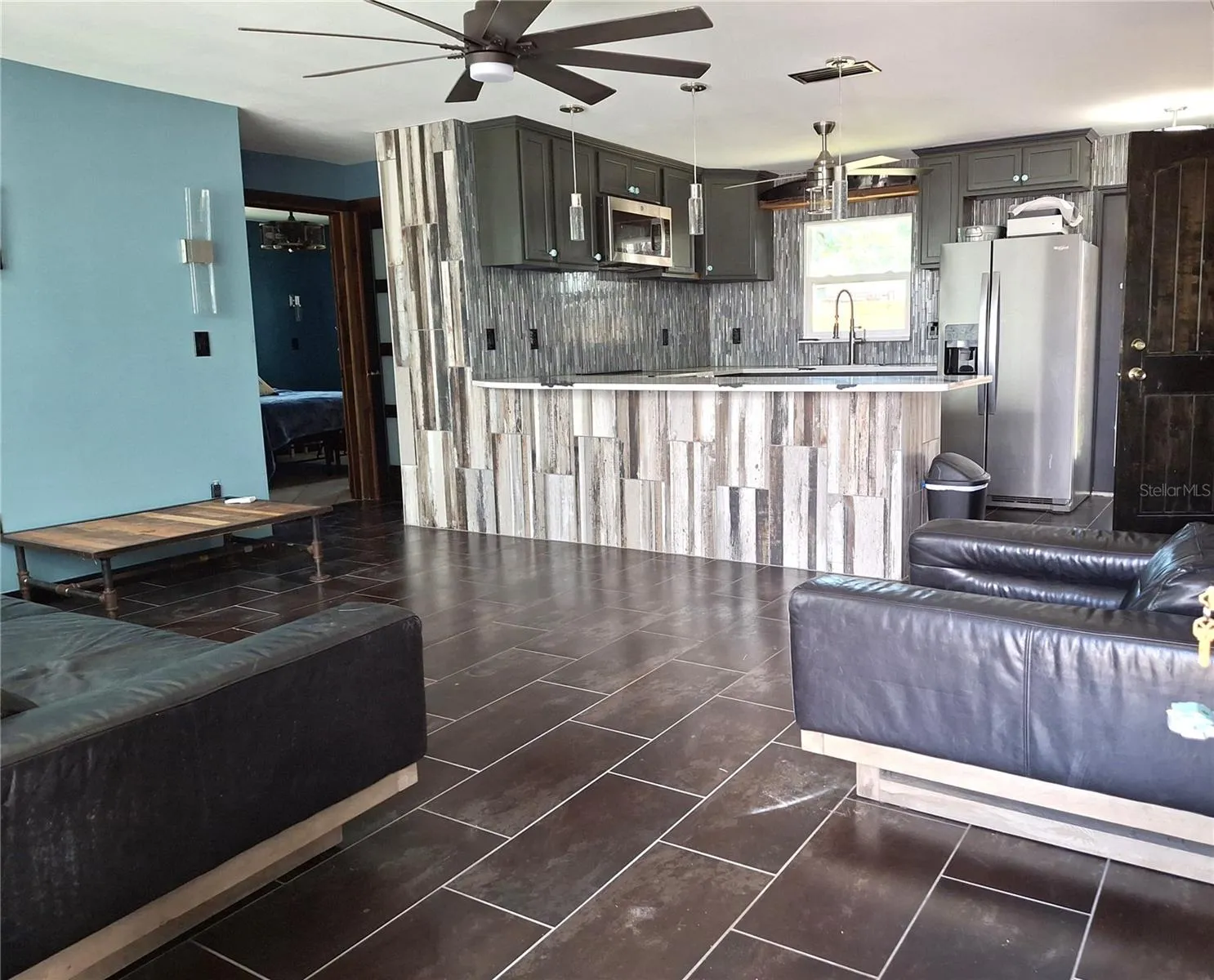 - Ceiling Fans(s), Thermostat, Kitchen/Family Room Combo, Stone Counters