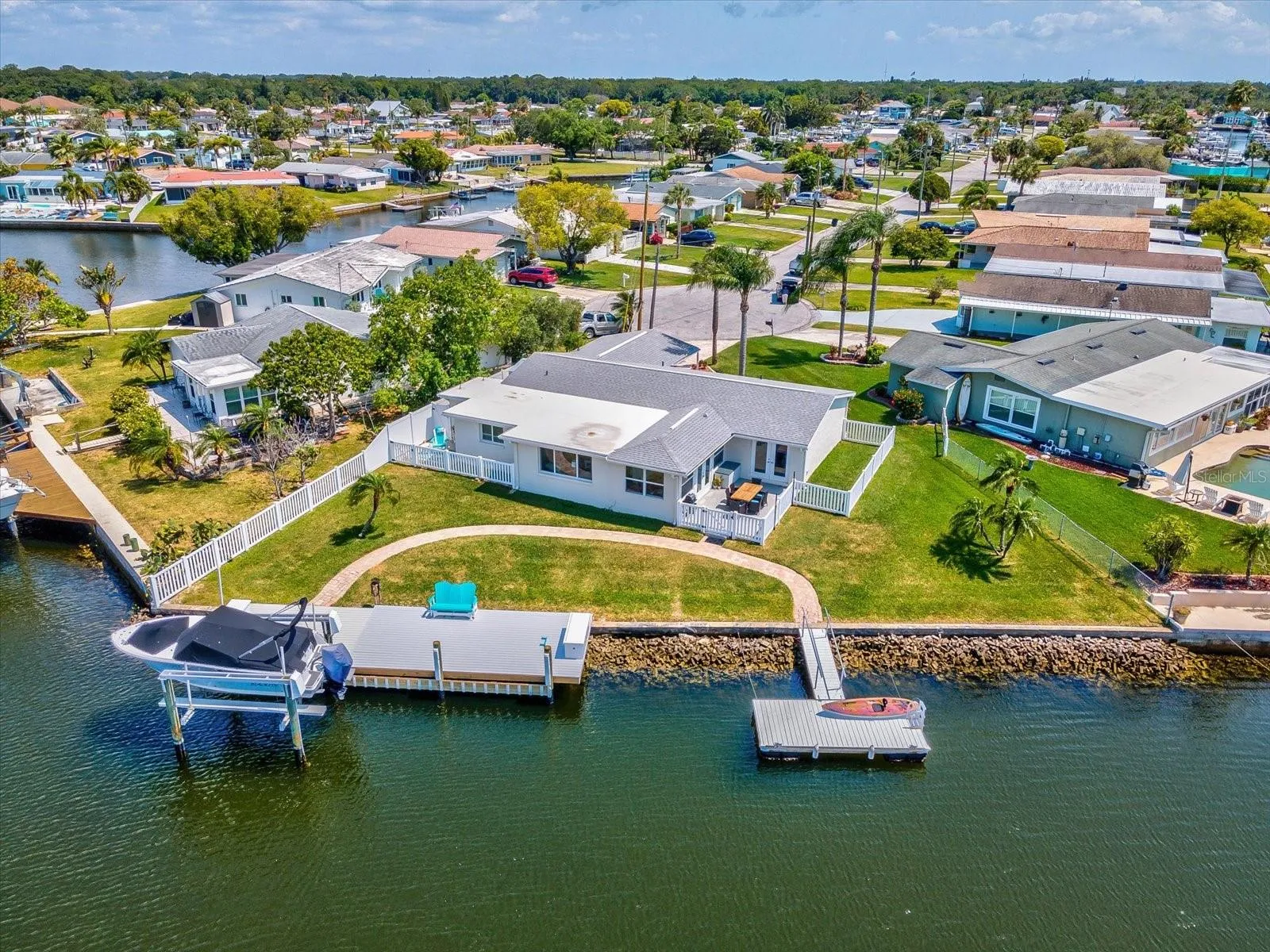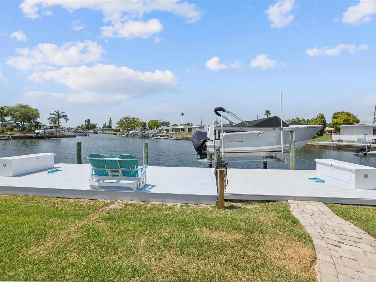 The Very Best Price On A Luxury Remodeled 3 bedrooms and 3 Full Baths with Similar (1823 sq.) Living Area in the Waterfront Community Gulf Harbors. BRAND NEW 13,000 LB LIFT Completed July 2024. AMAZING 122 FEET mol OF WATER FRONTAGE WITH DIRECT GULF OF MEXICO ACCESS. Located in Gulf Harbors-With One of only 2 Private Community Beaches in Florida. This beautifully remodeled, updated and exquisite 3 bedroom. 3 bath home is what the Florida Dream is all about. No updates are needed-Move in ready. NEW ROOF 2023, Newer Air Conditioner, NEWLY painted inside and out and Brand NEW 13000 lb lift and 42×12 ‘Wear Deck’ dock was just installed. Features New Luxury front door, fully remodeled kitchen with island and all appliances(refrigerator is the only appliance that is not new) with NEW quartz countertops and plantation shutters. All NEW Luxury Water Proof vinyl flooring throughout. This open floor plan with recessed lighting features the large family room (with New motorized shade) overlooking the tranquil waterfront which leads out to the bonus room that also overlooks the water. In fact, the Primary bedroom, family room, bonus room and 2nd bedroom all over look the water. The Primary bedroom is a huge 22×23 and features cathedral ceilings, walk in closet with New shelving. The Primary bathroom features a Jacuzzi tub and walk-in shower. Bedroom 3 could be used as a in-law suite with its separate bathroom with walk in shower and it’s own private patio. All NEW Vinyl Fencing with dog play zone. Exterior feature’s: 12×18 patio and a separate patio off of bedroom 3, NEW vinyl fencing, All exterior painted and utility shed. Features that are NEW-Roof, All Exterior and Interior paint, luxury water proof Vinyl Flooring, Fencing, Front Door, Appliances(except refrig), Quartz countertops, recessed lighting, all 3 closet’s shelving, 12×42 ‘Wear Deck’ Dock and NEW13,000 pound boat lift, Motorized Family Room window shade.