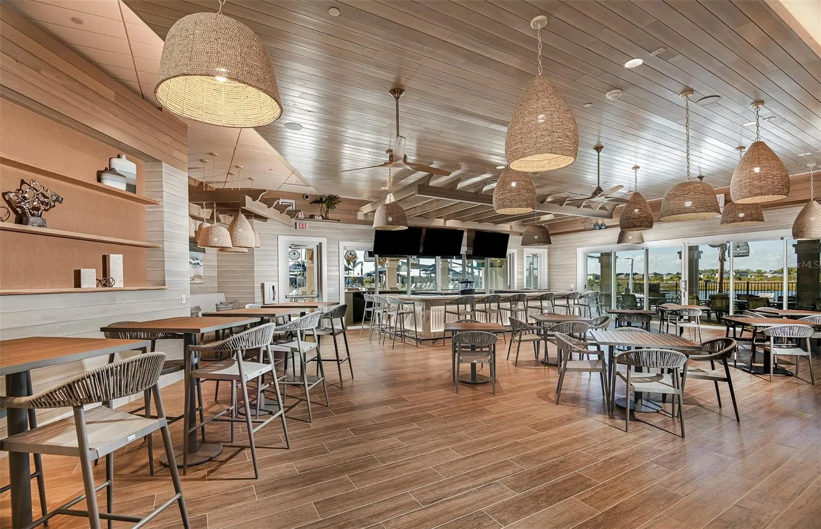 Additional upgrades and features include LED downlights and flat panel TV prep in the gathering room, 2” faux wood blinds, impact glass windows, a tankless water heater, and a Smart Home technology package with a video doorbell.