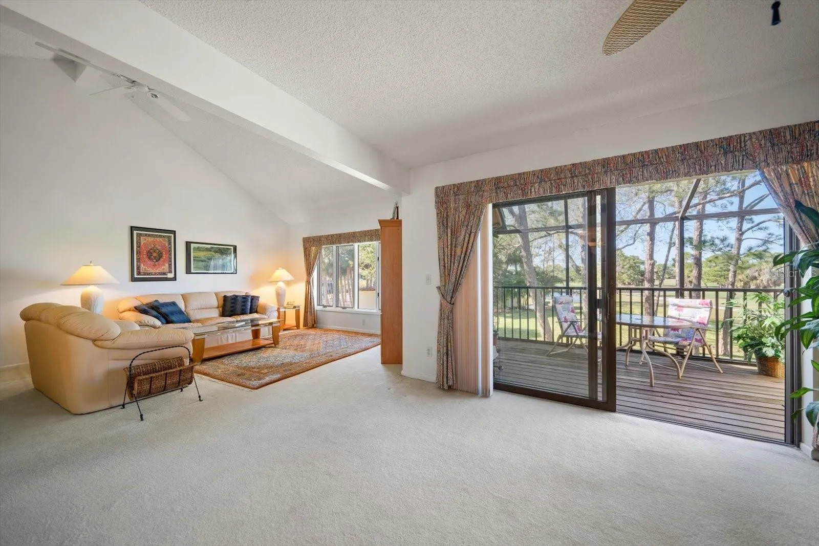 Located in the sought-after Fairway Villas at Bardmoor, this beautifully maintained two-bedroom, two-bath condo offers the perfect blend of comfort, style, and convenience. Step inside to a spacious and bright living area, where vaulted ceilings create an airy ambiance, and a cozy fireplace adds warmth and charm. The open-concept living and dining room seamlessly flow to a screened balcony through a wall of sliders, offering breathtaking views of the lush, rolling greens of the Bardmoor golf course—an idyllic backdrop for morning coffee or evening relaxation. The well-appointed dine-in kitchen, open to the dining room, is perfect for entertaining, featuring ample counter space and cabinetry to inspire culinary creativity. The primary suite is a serene retreat, bathed in natural light, with an expansive ensuite boasting a double sink vanity and plenty of storage. A generously sized second bedroom provides a welcoming space for guests or a home office and is conveniently situated near the hall bath with a tub-shower combination. Additional highlights include an in-unit laundry for ultimate convenience and access to the community’s sparkling pool, ideal for unwinding on warm Florida days. Perfectly located near premier shopping, dining, world-class beaches, and major airports, this condo offers an enviable lifestyle in one of Bardmoor’s most desirable communities.