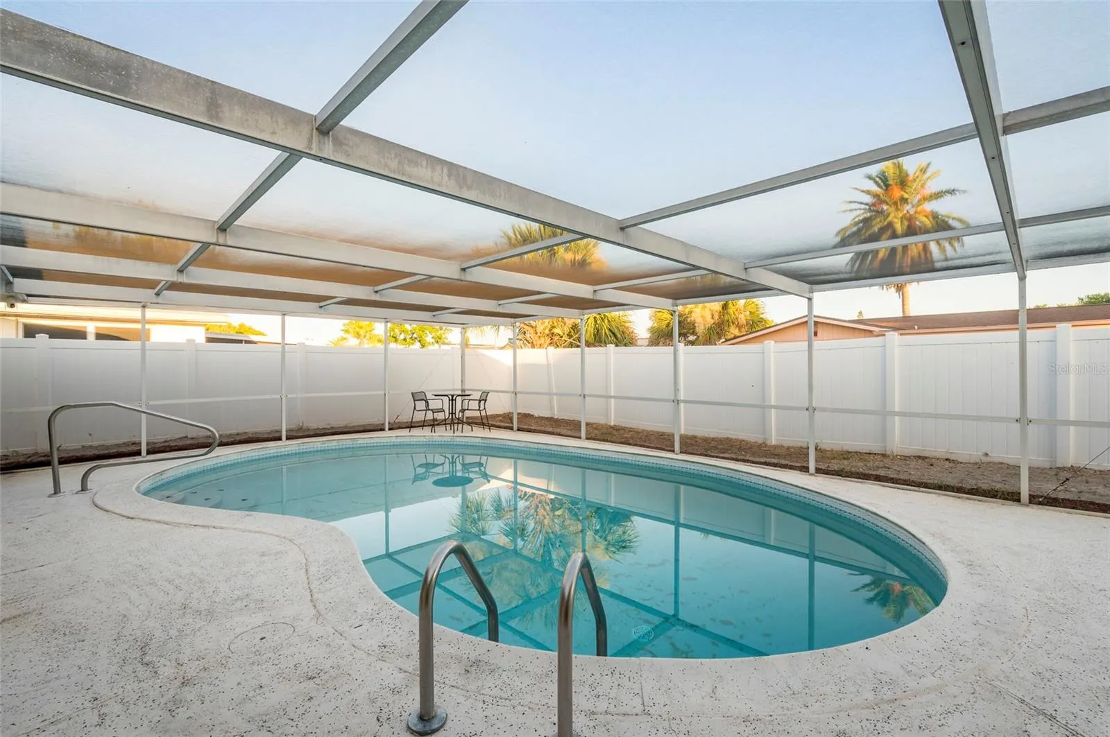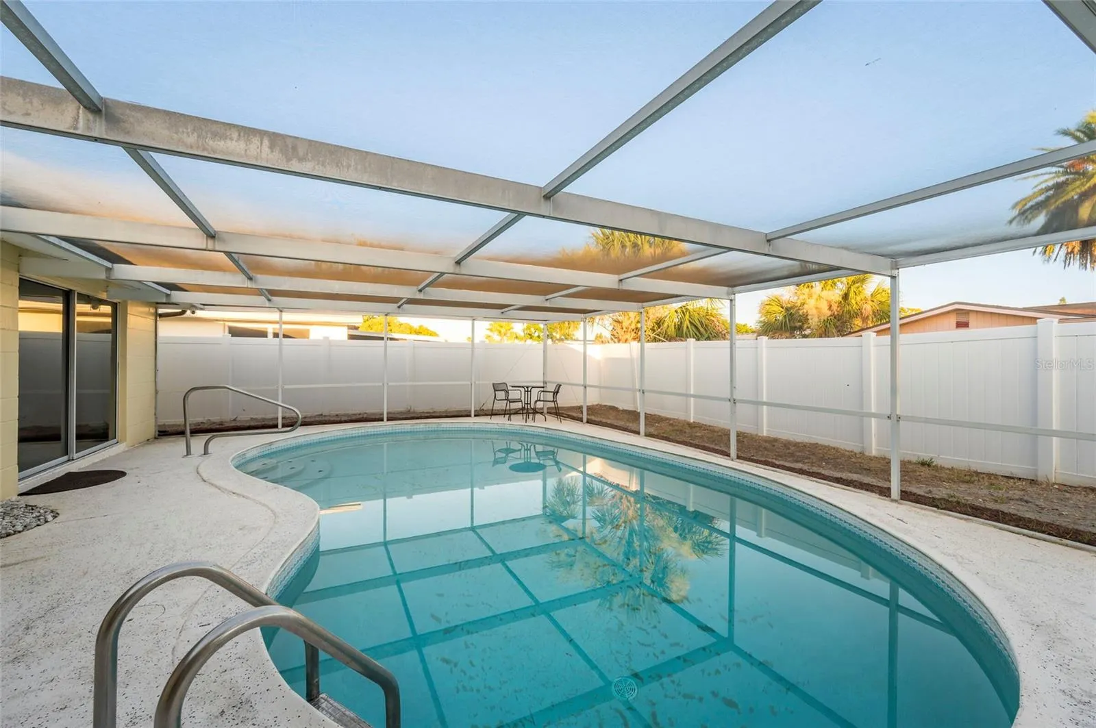 * Outdoor Oasis: Step outside to your private retreat with a newly updated saltwater pool! Upgrades include a new multi-stage pump, new filter, and brand new iChlor salt water purifying system to leave your hair and skin feeling better than ever after every swim! The pool area is perfect for relaxing or entertaining, with brand-new screens on the roof of the pool cage so you can relax bug-free. The oversized pool deck is wired for a hot tub, so the options are endless! For your added peace of mind, the entire property is surrounded by a modern, recently pressure-washed vinyl fence. It also features a lockable gate for additional privacy.