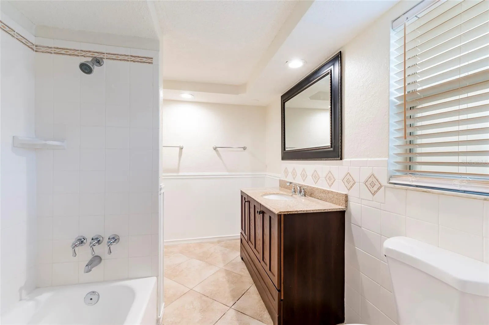 * Modern Kitchen: Enjoy the classic elegance of spacious cherry cabinets along with beautiful Santa Cecelia granite countertops. It includes a brand-new stainless steel fridge and dishwasher, as well as a stainless steel range oven and a mounted microwave.