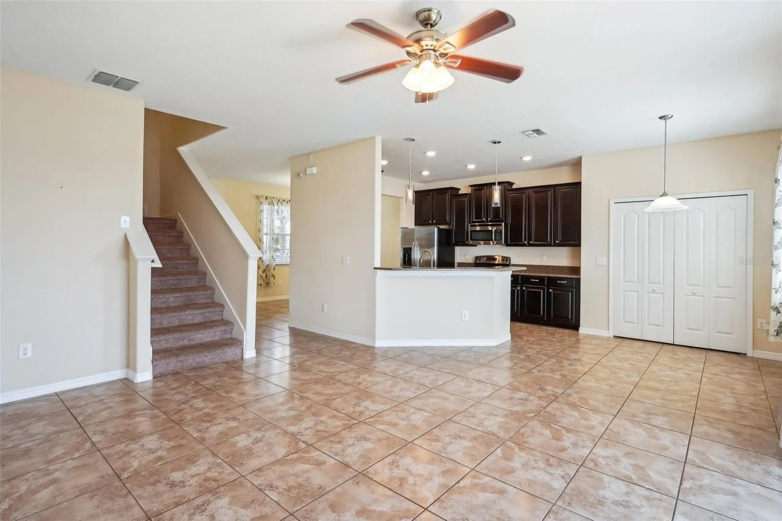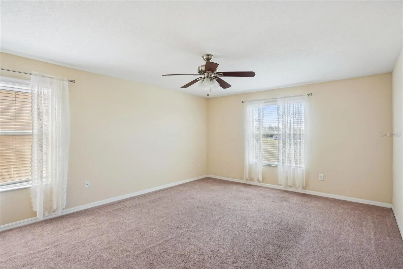 - Ceiling Fans(s), Thermostat, Primary Bedroom Main Floor, High Ceilings, L Dining