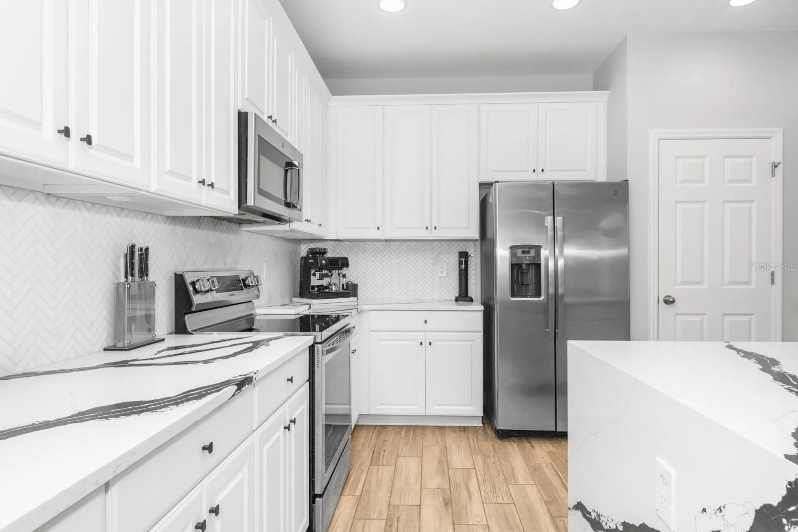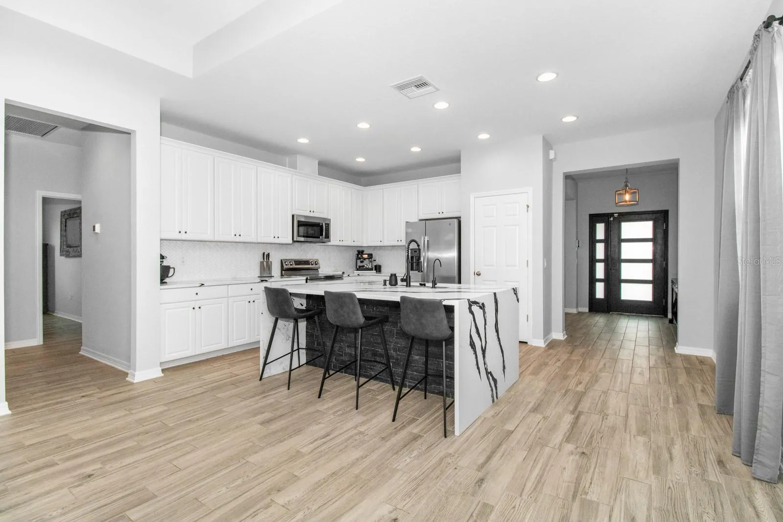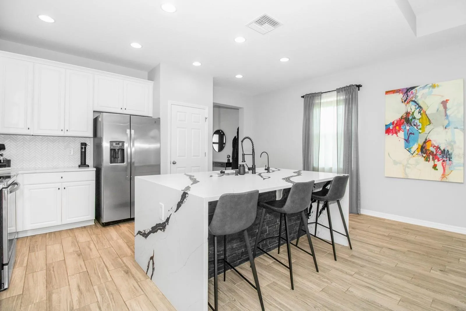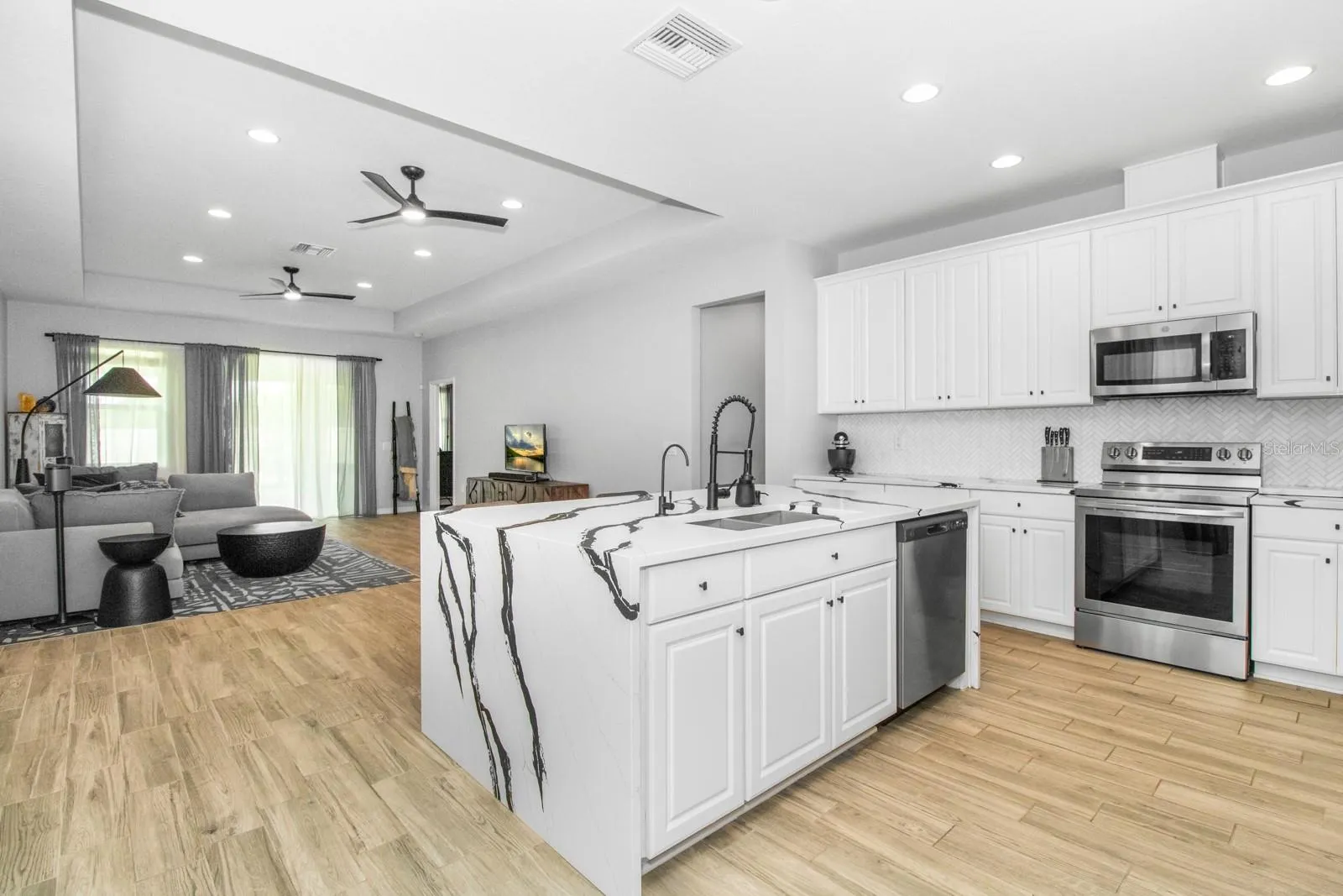 Nestled in the heart of the vibrant community of Talavera, this stunning 3-bedroom, 2-bathroom sanctuary is more than just a house; it’s a haven where luxury meets convenience. Step inside to discover an open floor plan that effortlessly blends style and functionality. Every corner of its 2,116 sq ft exudes elegance, from the custom luxury master closet to the upgraded quartz counters adorning every surface. The kitchen steals the spotlight with its breathtaking waterfall countertop and stainless-steel appliances, perfect for creating culinary masterpieces. But the beauty doesn’t end there. Say goodbye to carpet woes as this home boasts all-tile flooring and features a UV Halo light air purifying system, ensuring a clean and healthy living environment for you and your loved ones. Plus, enjoy the convenience of the Westinghouse reverse osmosis drinking water system, providing crisp, purified water at your fingertips. Step outside to your own private oasis, complete with a fully fenced yard, expansive back patio, and custom cooking area. Whether you’re hosting a summer BBQ or enjoying a quiet evening under the stars, this backyard is sure to impress. And let’s talk about location! Conveniently situated near 589 and 75, commuting is a breeze. But the real charm lies in the Talavera community itself. With low HOA fees, residents enjoy access to a wealth of amenities, including a community pool, splash pad, playground, tennis courts, and basketball courts. But it’s the sense of community that truly sets Talavera apart, with food trucks on weekends, seasonal events like corn mazes and Easter egg hunts, pool parties with DJ’s, and it’s golf cart-friendly. Don’t miss your chance to call 18938 Diego Circle home. With its unbeatable combination of luxury, convenience, and community, this property is sure to steal your heart. Schedule your viewing today and experience the epitome of Florida living!