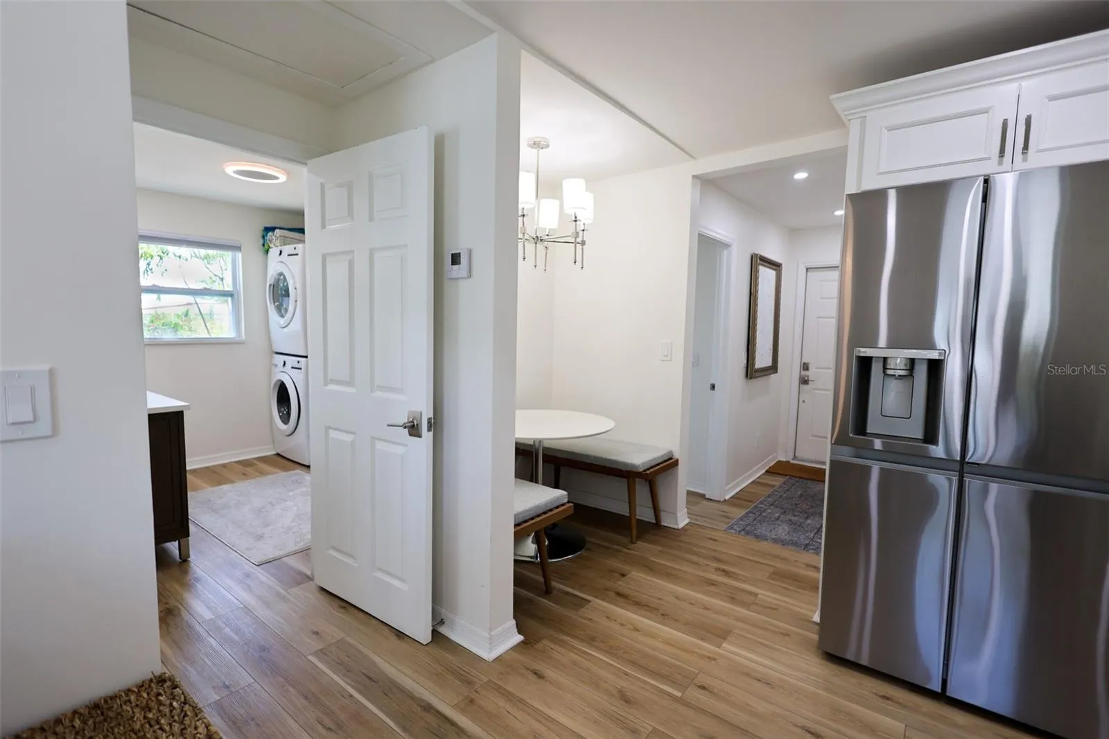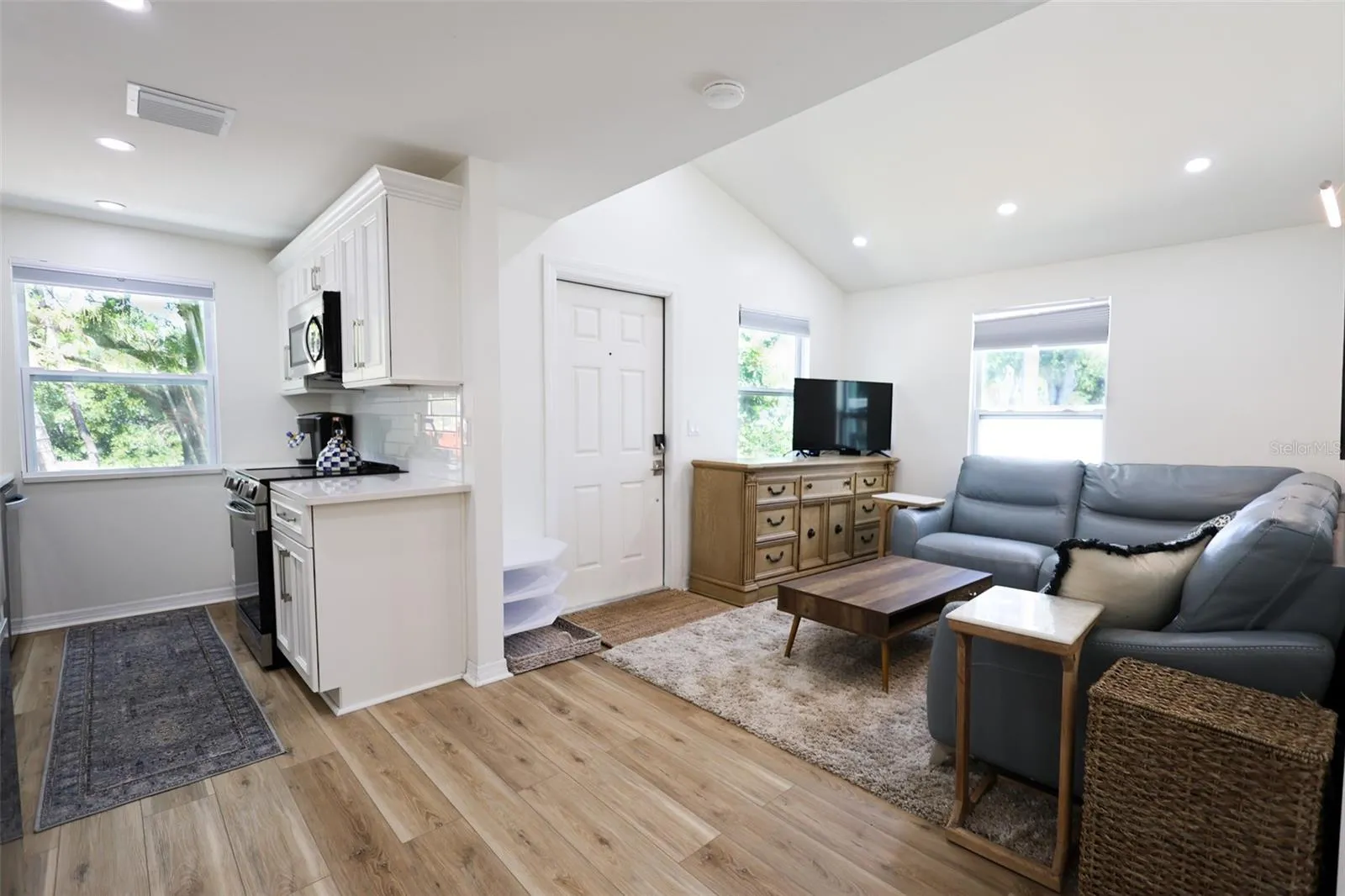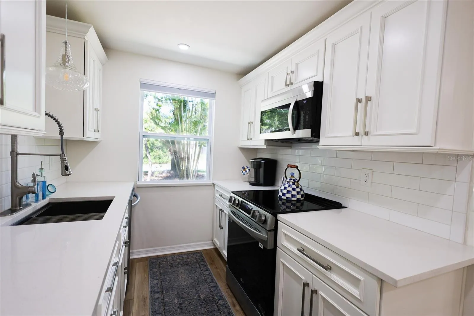 Elegant, fully-furnished residence awaits your arrival! This impeccably well-appointed home has meticulous attention to detail like quartz windowsills and upscale light fixtures reminiscent of upscale hotels. Originally a 3-bedroom layout, it currently features 2 bedrooms plus a den, easily convertible back to a 3rd bedroom as needed. The stunning bathroom features a new James Martin vanity with dovetail drawers and quartz countertop, large mirrored medicine cabinet with ample storage, a newly tiled tub and shower with alcove as well as new upscale washer and dryer. The kitchen boasts all-new soft-close, upscale cabinetry with dovetail drawers, quartz countertops, ceramic tile back splash and all new appliances. Fully-stocked kitchen comes with timeless dinnerware, pots, pans, drink ware, utensils, etc. Recent upgrades include a new roof and air conditioning system. Feel pampered in this well-appointed interior adorned with timeless furnishings such as a leather sectional, Lexington Furniture sideboard and Oliver Settee by Rowe Furniture. Furnishings were chosen for their enduring quality. Outside, a serene, fenced-in backyard offers privacy and tranquility. Delight in your morning coffee amid the lush tropical oasis, serenaded by the melodies of native birds. Nestled on a quiet dead-end street, enjoy minimal traffic disturbances in this idyllic setting. Simply unpack your suitcase and settle into your exquisite new home. No HOA