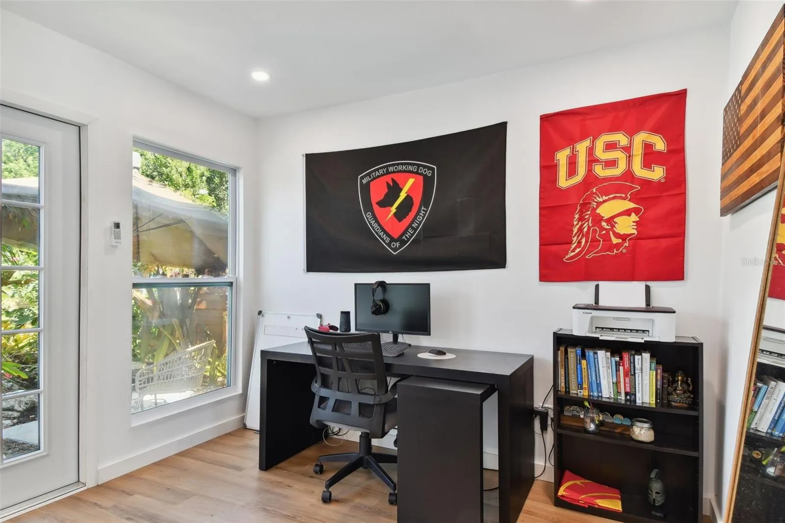 Check out this one of a kind Midcentury Modern home in the heart of Clearwater just 4 miles from Clearwater beach! This home presents an open floorplan with three bedrooms and two full baths. What makes this home unique is the detached finished structure equipped with heat, a/c, highspeed wifi and electricity that overlooks an inground heated pool, spa and tropical style garden with high privacy fences. This additional space could be used as an office, play house or even a home gym! Imagine having the luxury of a private office while being able to watch your family enjoy the pool. Or even having a morning workout and doing some laps before starting your day. Inside presents an open floorplan with a kitchen/living room/Accademia style dinning room combo where you have large storm rated windows that allow a great view of the patio pool and gardens. The home also accommodates a screened in back porch area that leads onto the shell Travertine pavers that could easily be converted into a finished family room or sunroom. The kitchen is equipped with cool tones of undercabinet lighting that glistens off of the Maravilla marble backsplash, light shaker cabinets, contrasted with dark stainless steel appliances and custom floating shelving that matches the coffee/dry bar for a high end design. The island presents a hibachi style cooking area on a HUGE 10×4 quartz countertop with plenty of space for high top stools great for entertaining guests. The bathrooms have been tastefully updated with trendy tile and stone top vanities. This street is tucked away into a safe neighborhood conveniently located .02 miles from Gulf to Bay Blvd. for easy travel to the beach, highway, airport, or local food and shopping. This adored home won’t last long! 2021 roof, irrigation system, newer windows/HVAC/electrical