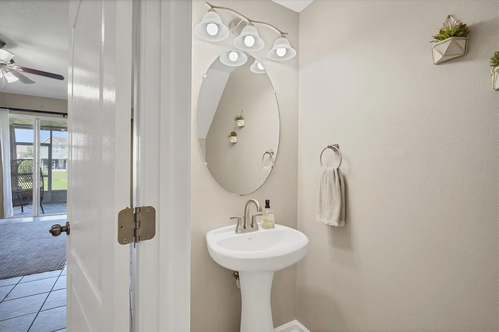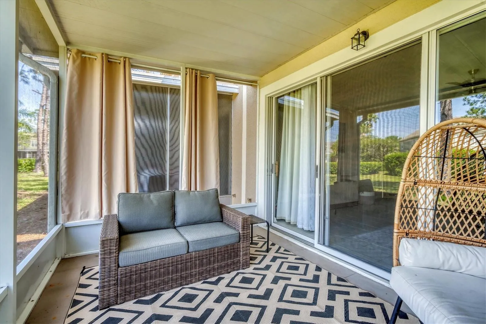 Enjoy peaceful views of the community pool from the screened lanai, which opens up to a large grassy outdoor space, ideal for relaxing or entertaining.