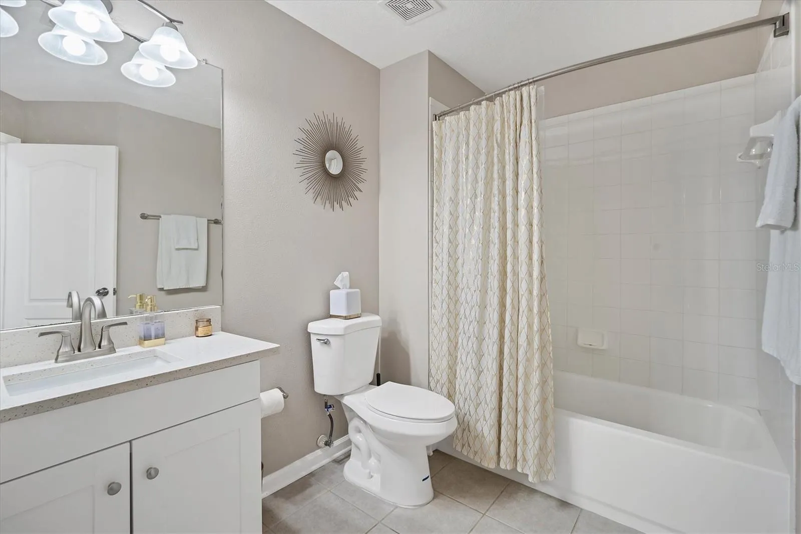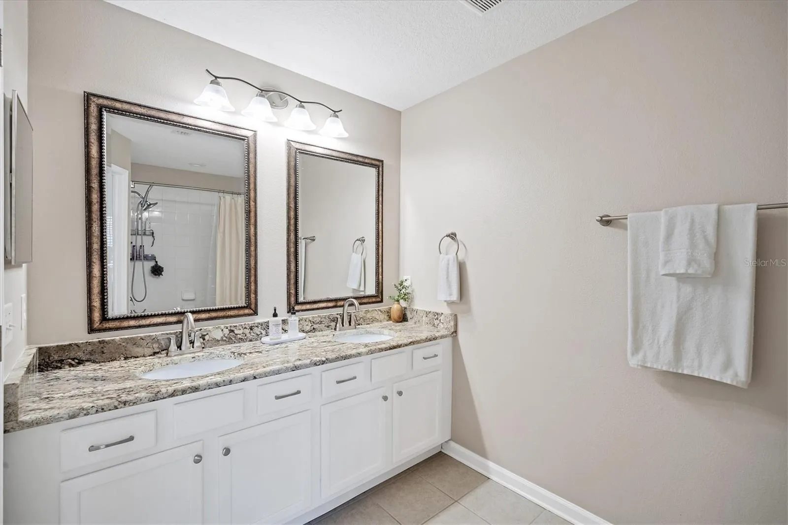 Upstairs, the owner’s suite with vaulted ceiling includes a large walk-in closet and an en-suite bathroom with dual sinks, GRANITE COUNTERS and a GARDEN TUB. The laundry area is conveniently located in the hall between the owners suite and the two additional bedrooms, both with vaulted ceilings! The large guest bathroom with QUARTZ VANITY.