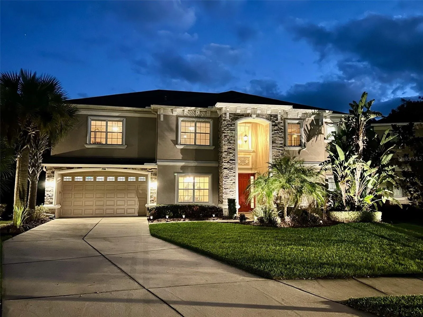 SELLERS ARE OFFERING $15,000 TO BE USED FOR CLOSING COSTS, INTEREST RATE BUY DOWN OR TOWARD PURCHASE PRICE! YOU CHOOSE HOW YOU WANT TO USE THIS GENEROUS BONUS TO AN ALREADY WONDERFUL PRICE! Nestled on a stunning CONSERVATION LOT, this magnificent 6-bedroom, 4.5-bathroom Taylor Morrison “Hemingway” boasts over 4,000 square feet of luxury living space. This spacious home is located just across the street from the community center, resort style pool and dog park offering a tranquil view of lush trees with easy access to the wonderful Channing Park Amenities as well as a private backyard with SCREEN ENCLOSED PORCH. As soon as you enter the front door, you will notice the beautiful stacked stone upgraded exterior with well maintained lighted landscaping. The entryway boasts sky high ceilings with added architectural details art niches, crown molding and tile flooring that flows throughout the main living area. To your left is a FORMAL DINING ROOM and OFFICE to your right both featuring trey ceilings. As you walk forward past the half bath into the living room you will see triple sliding glass doors to the private backyard and a gorgeous KITCHEN with granite countertops, stainless steel appliances, 42″ espresso cabinetry, a WALK IN PANTRY and A BUTLER’S PANTRY. Also downstairs you will find a separate laundry room with a high end WASHER AND DRYER set, a sink and cabinets as well as another full bathroom. The huge PRIMARY BEDROOM is also on the main floor with a view of the backyard, and an ensuite bath room that features his and hers walk in closets, granite countertops, a garden tub and separate shower stall and toilet room. The grand staircase with wood flooring leads you to another amazing level of additional living space, complete with a BONUS ROOM (currently decorated with a full size pool table, sticks and dart board that all convey), MEDIA ROOM and 4 additional oversized bedrooms with large closets, and 2 bathrooms one is a Jack and Jill. The 3 car tandem garage is complete with epoxy flooring, ceiling storage racks and custom storage cabinets making it a perfect place to set up your workshop. The Channing Park Community has so much to offer – organized neighborhood events for holidays, a full size soccer field, basketball courts and a skate park. Miles and miles of walking trails both wooded and paved throughout the community. 2 pools and a cookout area.