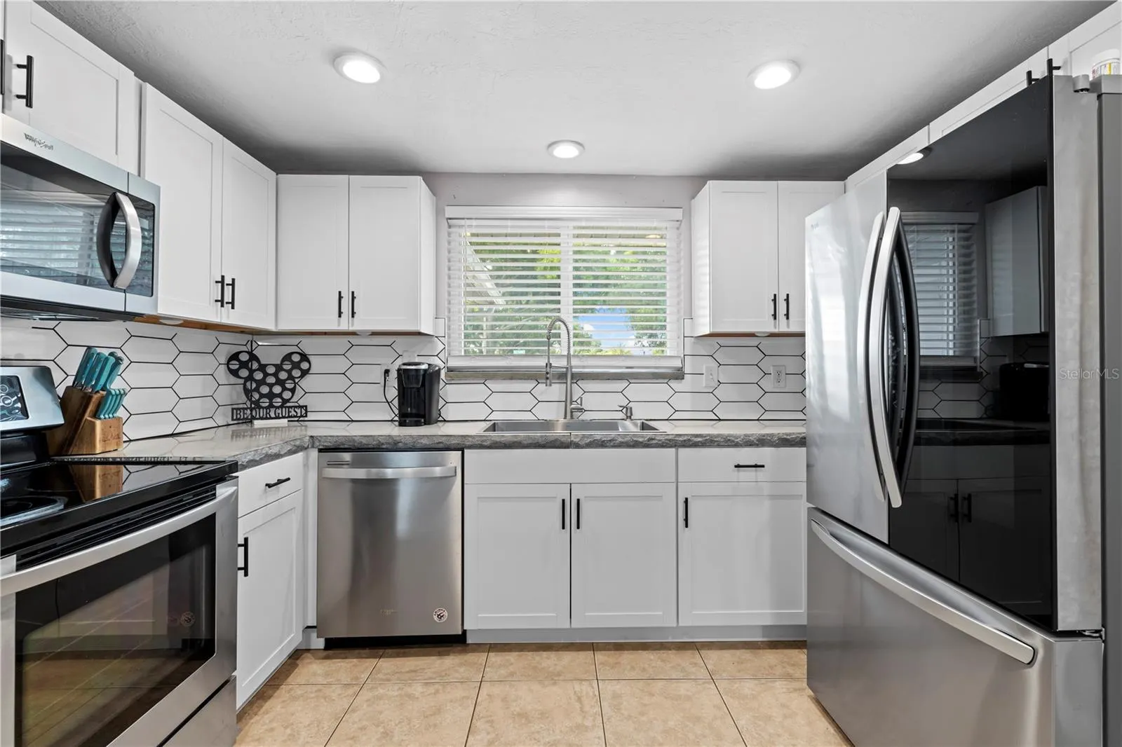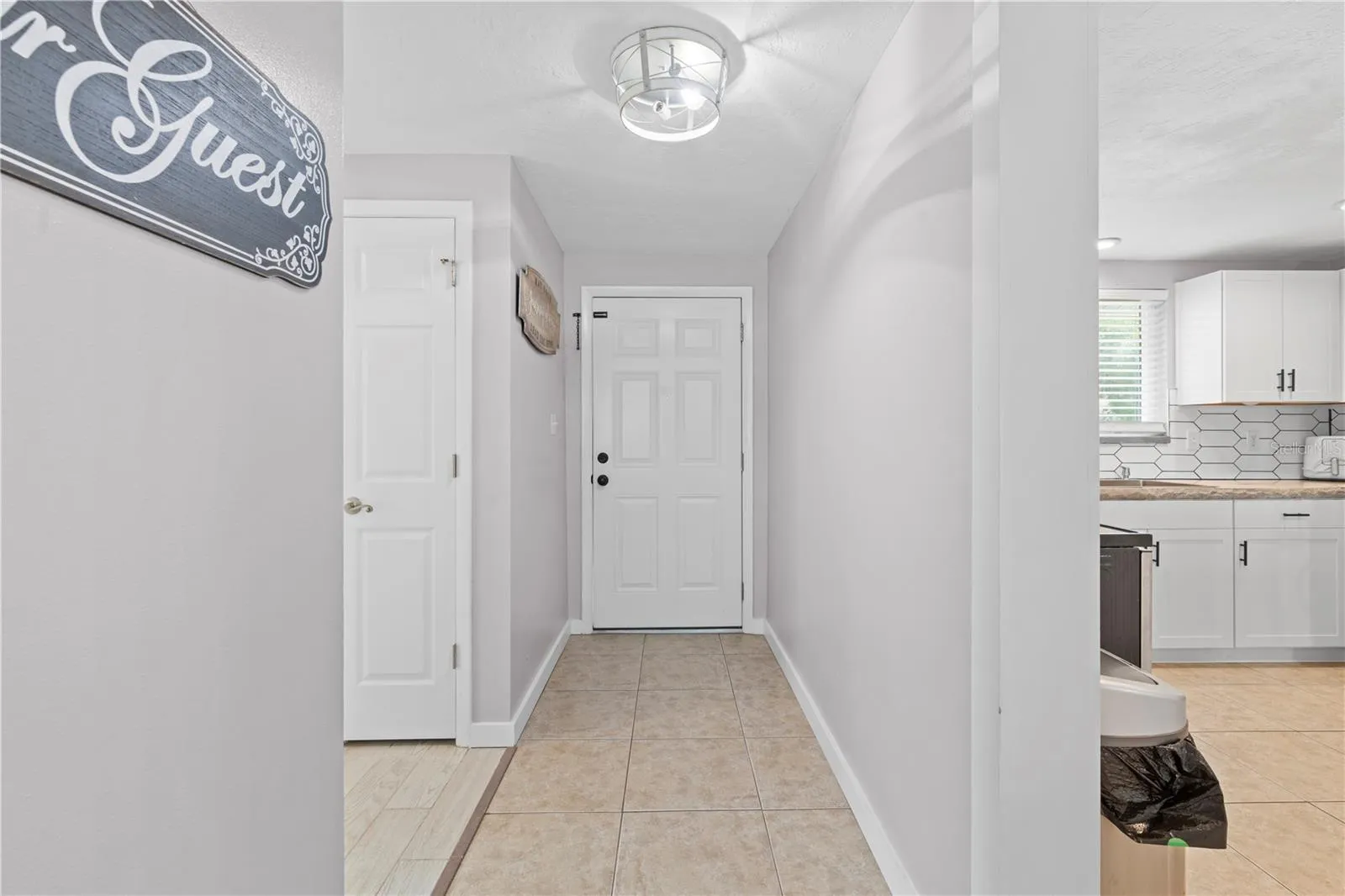 Welcome to your dream home at 8151 Fox Hollow Dr in Port Richey, FL! This charming residential house boasts a 0.15-acre lot size with a welcoming front porch perfect for sitting and relaxing. Featuring 2 bedrooms and 2 full bathrooms, the master bedroom includes his and her built-in closets and wood-look tile flooring. The master bathroom has a luxury vinyl plan flooring and offers a luxurious stand-up shower with beautiful tile walls and a smooth rock floor finish. The kitchen space is a highlight, equipped with stainless steel appliances including a dishwasher, stove, and microwave, along with a deep stainless steel farm sink. The white shaker cabinets with black handles, gray concrete countertops, and white backsplash with black grout create a modern and stylish look. Additionally, the wood counter/butcher block bar adds a cozy touch to the living room area. Enjoy the enclosed heated and A/C Florida room, perfect for relaxation. Step outside to the big back yard and find a pergola for outdoor grilling and entertaining, as well as a spacious deck with an above-ground pool and a shed. It has a fenced backyard with no houses behind, you’ll enjoy a serene view of public land. Conveniently located just 10 minutes away from Hudson Beach, restaurants, and boat ramps, and only 30 minutes away from Clearwater Beach, this well-maintained house is a must-see. Don’t miss out on the opportunity to make this beautiful property your new home!