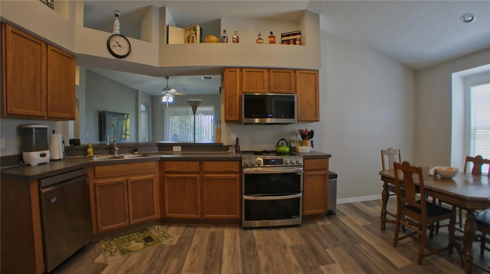 - Ceiling Fans(s), Thermostat, Living Room/Dining Room Combo, Kitchen/Family Room Combo, Split Bedroom, High Ceilings, Vaulted Ceiling(s)