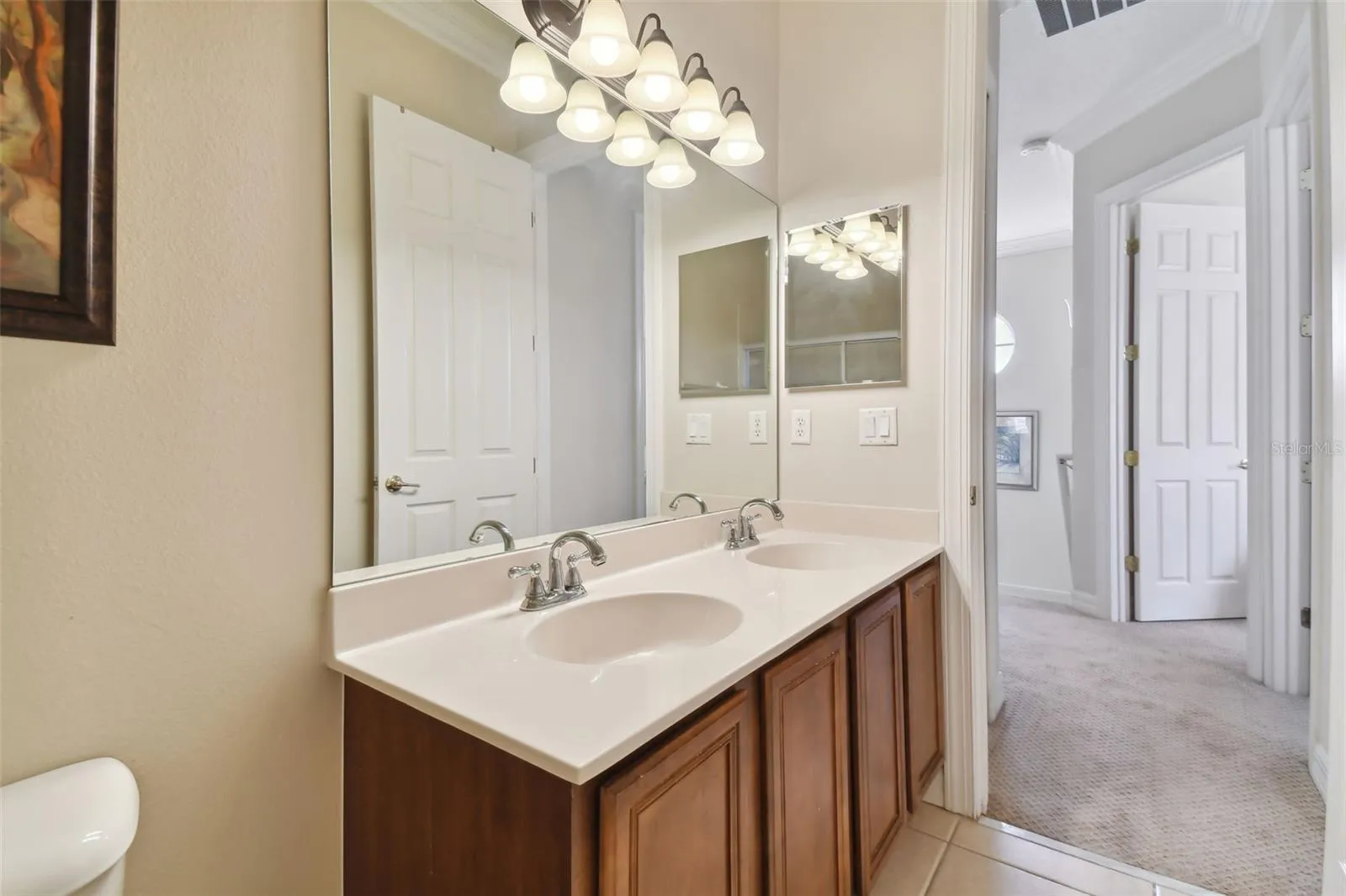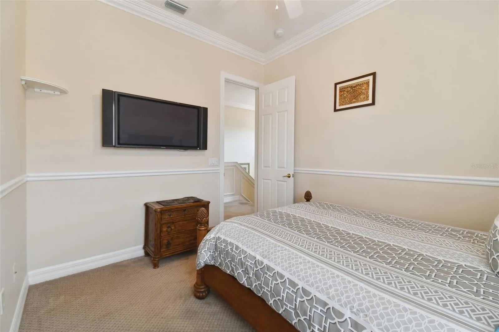 Welcome home to your WATERFRONT OASIS! Nested in the desirable Cory Lake Isles community, this stunning WATERFRONT home is the ideal Florida luxury living. Featuring 5 bedrooms and 3 full bathrooms, this elegant residence offers style with CROWN MOLDING, HIGH CEILINGS, HIGH doors throughout the home. The formal living room features soaring ceilings, pristine HARDWOOD flooring, and breathtaking views of the pool and lake. The formal dining room boasts a cozy and open space with hardwood floors and an oversized window providing great sunlight. The kitchen offers ceramic tile flooring with GRANITE countertops, 42-inch cabinets with stainless steel appliances, and a backsplash with contemporary tiles. The GUEST BEDROOM and full bath DOWNSTAIRS provide perfect accommodation for guests or multigenerational living. SPACIOUS family room features recess lighting, multiple windows with California shutters and ceiling fan makes it a perfect place for gatherings. COVERED PATIO opens up to a PRIVATE oasis with a refreshing pool with new pool pump, paved patio area, and a walkway to the PRIVATE FLOATING DOCK. Enjoy your sunsets as you sip coffee in the evenings and watch the boats go by. Upstairs includes 3 spacious bedrooms and a master suite, with the hallway offering a bird’s eye view of the living and dining areas below. The OVERSIZED master bedroom features an en suite bathroom with his and her sinks, garden tub and walk-in shower, walk-in closet, high double doors, and a seating area with ample sunlight. Enjoy a new roof (2024) with up to a 25% home insurance discount. The home also features a modern HVAC system (2021), new pool pump, California plantation shutters, and updated appliances and flooring (2021). The community offers many wonderful amenities including a 24-hour manned GATE, BEACH style pool, private BOAT parking, tennis courts, and clubhouse with a fitness center. Conveniently located near shopping, dining, schools, and I-75, this beautifully maintained home is move-in ready.