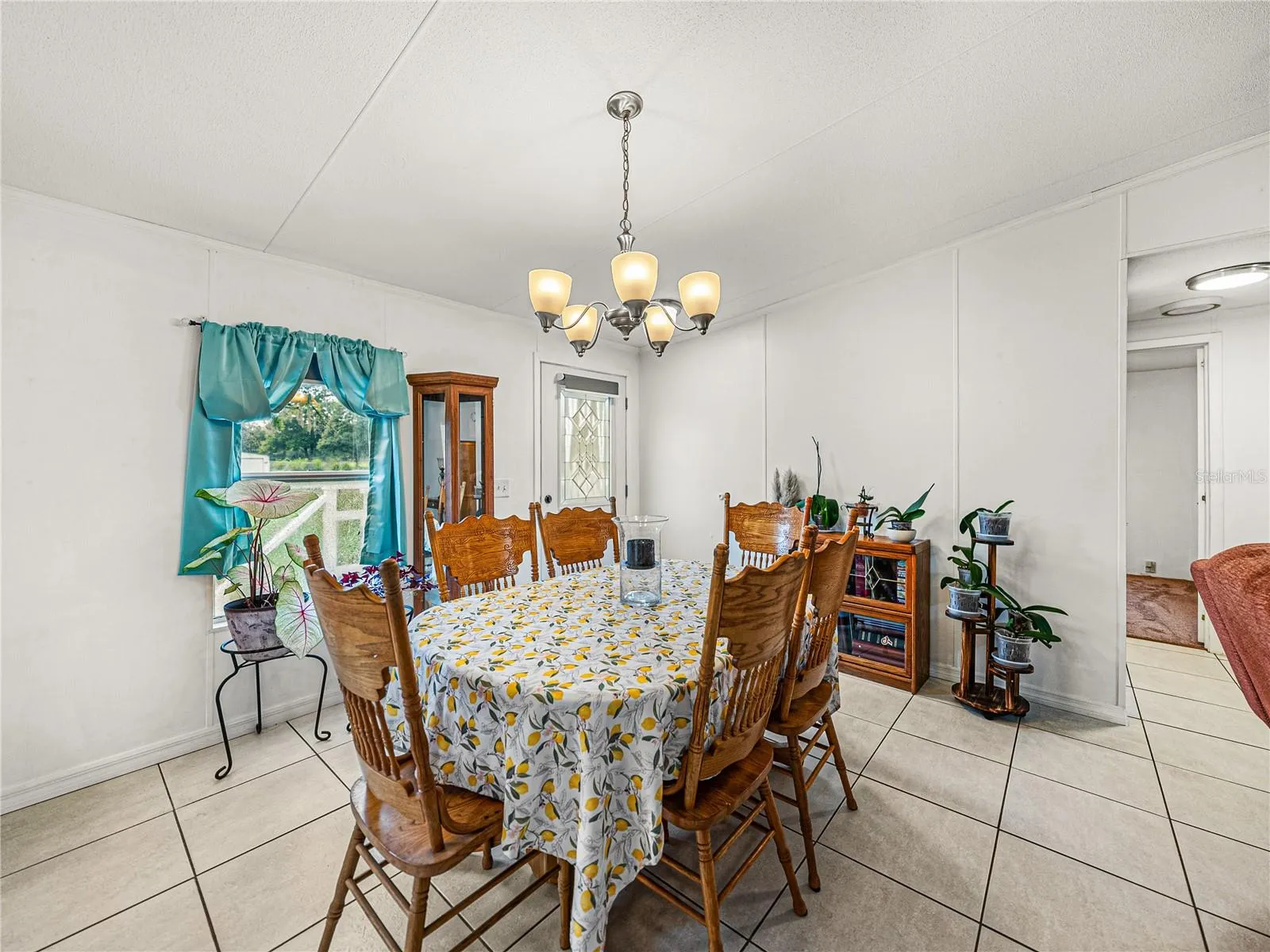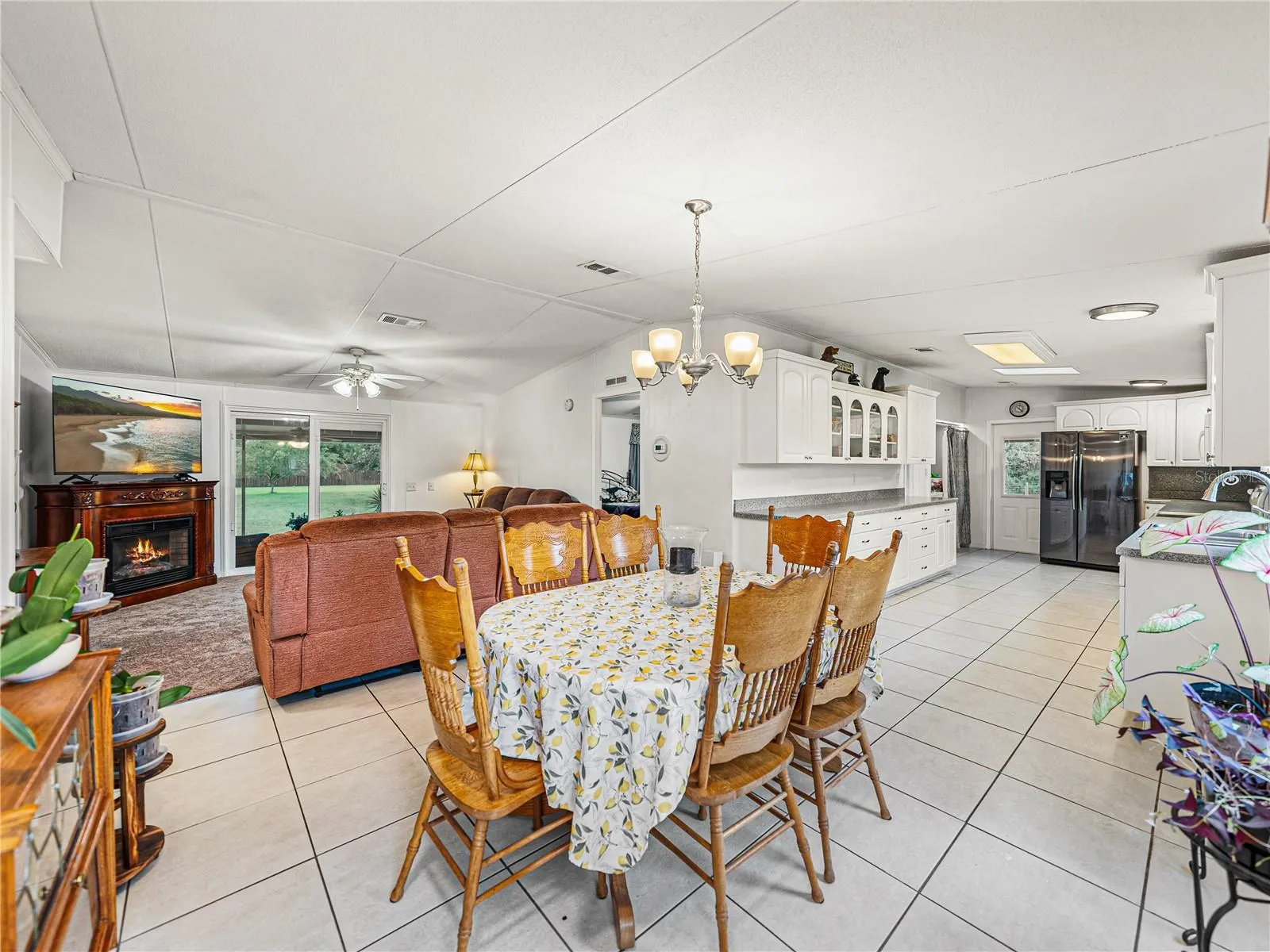 the large dining room, creating an inviting area for family meals and gatherings. The living room