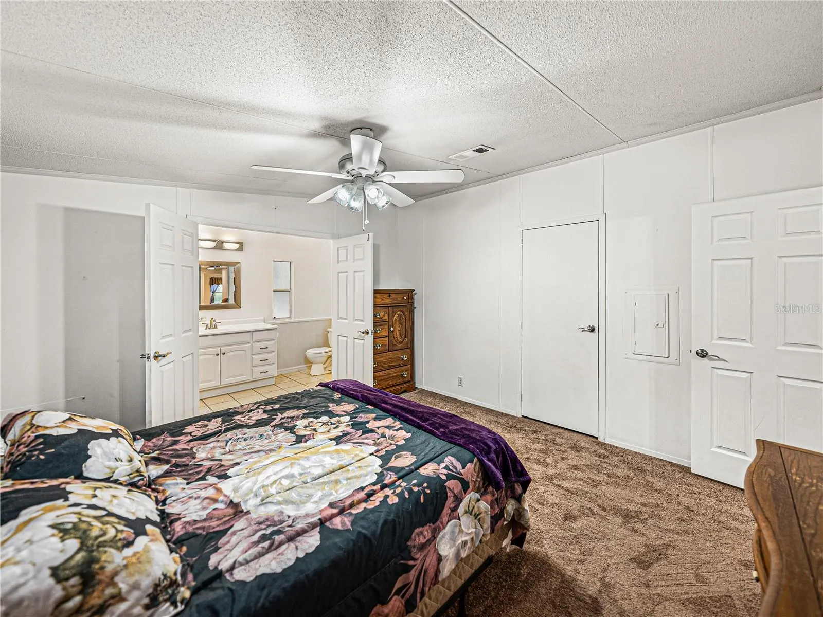 private retreat with double doors leading to an ensuite bathroom complete with a walk-in
