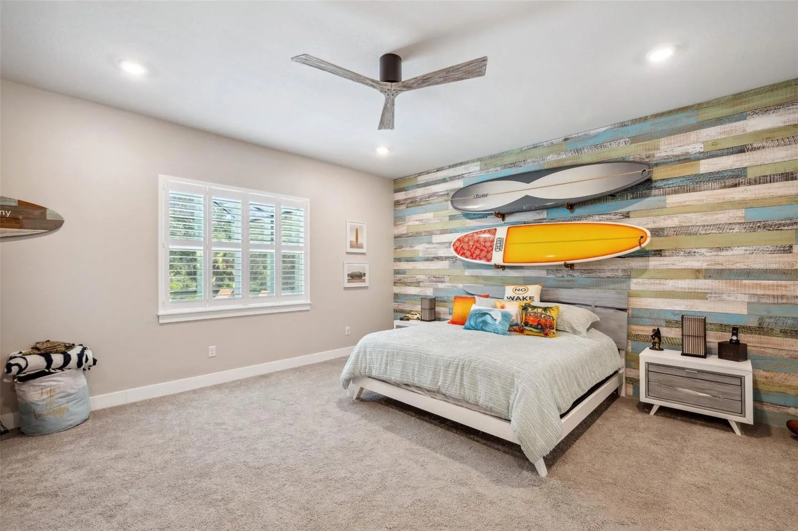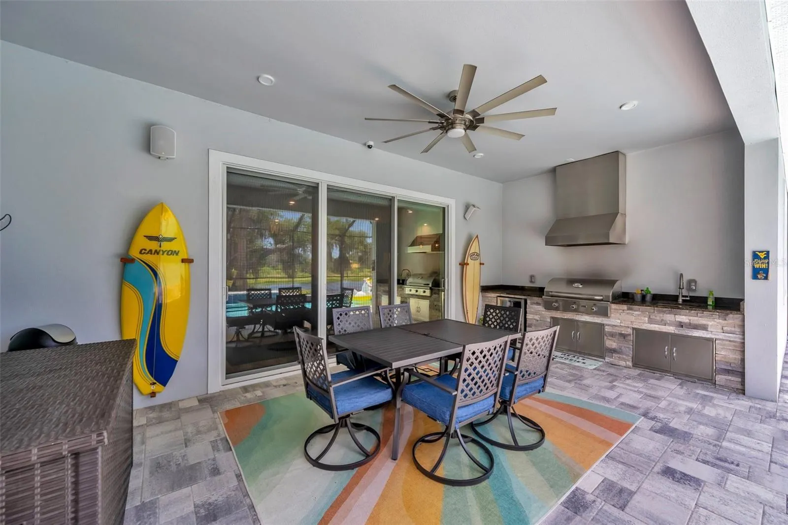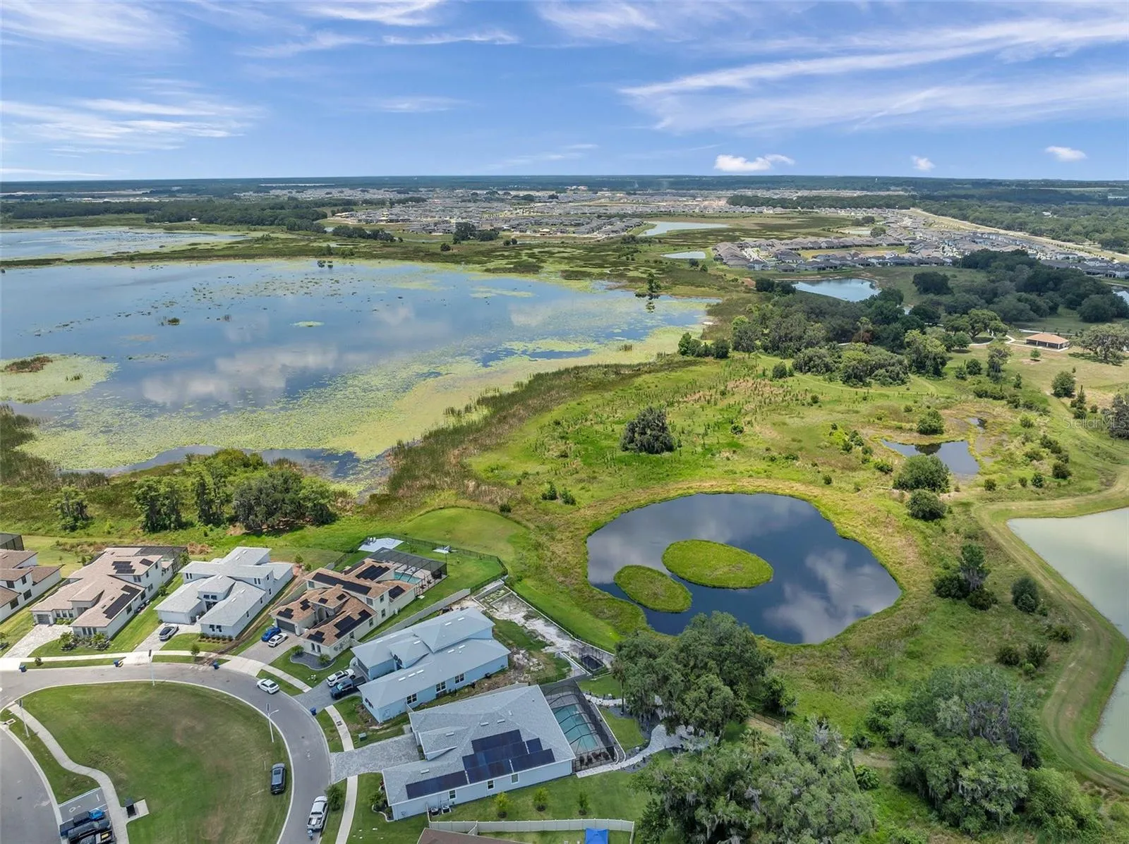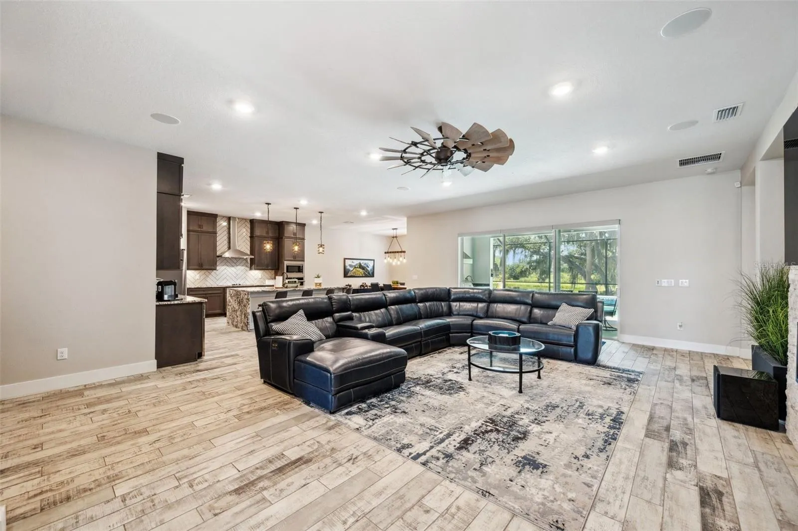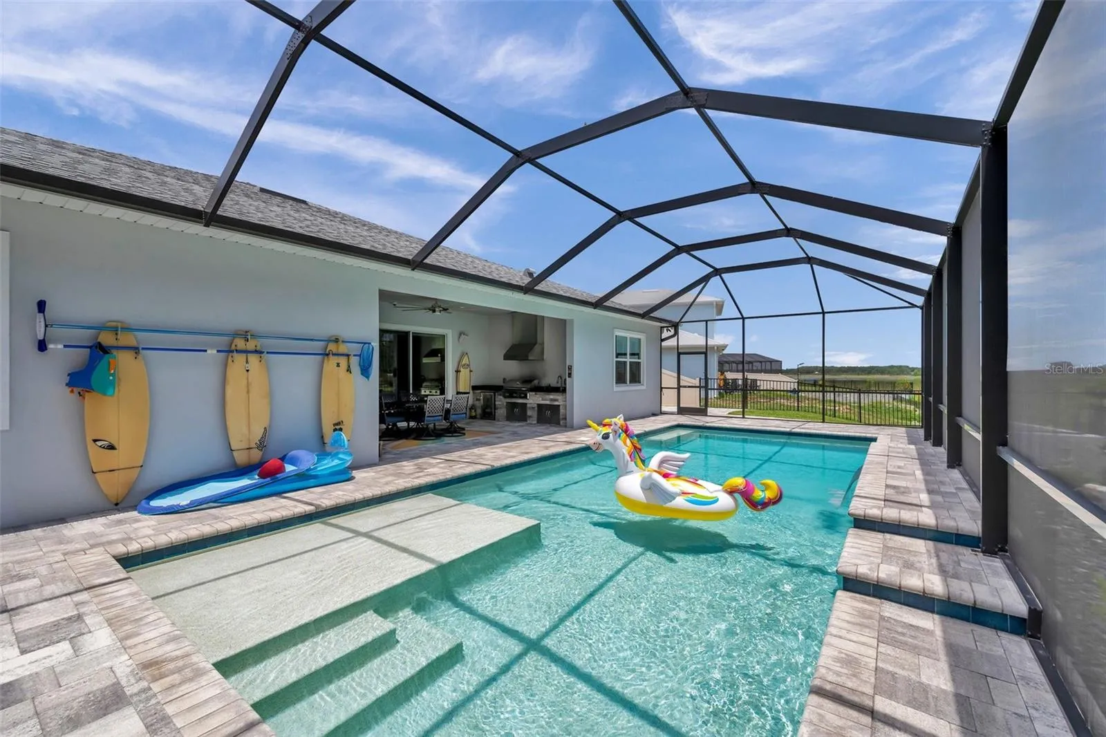 This Spectacular 2021 built home sits on the largest most STUNNING 0.58 acre lot in Epperson Lagoon with a conservation view overlooking a pond and King Lake. The Bismark 1 Key West MODEL BOASTS 4 bedrooms, 3.5 bathrooms and a 3 car garage. The home features numerous high-end upgrades throughout and a backyard PARADISE totalling around $400,000 after purchase. As you drive up to your side entry garage, note the extended paver driveway on both sides that is extended to the street. Step inside the double doors to your grand foyer overlooking the living room with a direct view of your backyard paradise. Before we go to your private oasis, let’s review the interior, to your left you have a custom built-in office with Quartz countertops and Plantation shutters. This split layout offers 2 bedroom’s down the hall that are connected with a Jack and Jill bathroom, double sinks & shower/tub. On the other side of the home you have an additional bedroom with its own en-suite bathroom with a walk-in shower perfect for in-laws. The half bath is conveniently located in the middle of the house with beautiful farmhouse decor. The Chef’s kitchen offers Stainless steel appliances, Quartz countertops, walk-in pantry by “Closets of Design”, a large island with a waterfall edge & breakfast bar seating, custom cabinets up to the ceiling and a dining area. The kitchen is open to your large living room with a custom stone wall, electric FIREPLACE, surround sound, custom built wet bar, and electric shades on the triple sliders leading out to your backyard oasis. The primary bedroom is thoughtfully placed to the rear of the home and features a unique feature wall that is a must see. The en-suite bathroom features built-in closets for extra storage, a walk-in glass shower with waterfall shower head, and dual sink vanity with quartz countertop. The walk-in closet features a California style custom closet with a dresser island. The walk-in closet connects to the laundry room for added convenience. Enjoy grilling in your summer kitchen by the HEATED Saltwater pool. The views of the backyard oasis are breathtaking! The pool and your own professionally landscaped paradise encompasses a one of a kind paver walk-way to a serene fire pit area, and the tranquil surrounding of a pond and King Lake. Some of the added features to this home is a fully fenced in yard, tankless water heater, water filtration system, upgraded light fixtures, Plantation shutters, and the added bonus of fully paid for whole home Solar panels (less than a year old) with 5 battery backups to produce power during outages. Quarterly HOA fee of $236.22 covers your Spectrum cable including Showtime and ULTRAFi High Speed internet.The Crystal Lagoon Membership Fee is $137 per quarter. As a resident you have access to: 7 acre crystal lagoon, kayaking, paddle boarding, sandy beach areas, swim up bar, cabanas, live music events, resident only events, golf cart parades, dining options & so much more. The community amenities in addition to the lagoon include a dog park, golf cart paths, Eagle park, and a brand new PUBLIX & Starbucks. Conveniently located near top rated public schools, the Innovation Preparatory Academy, and Kirkland Ranch Academy of Innovation. Convenient access to shopping & restaurants at Wiregrass mall, Tampa Premium Outlets, The Grove and a short distance to a new I-75 exit on Overpass. Live like you are on VACATION every day! Check out our video and 3 D tour.