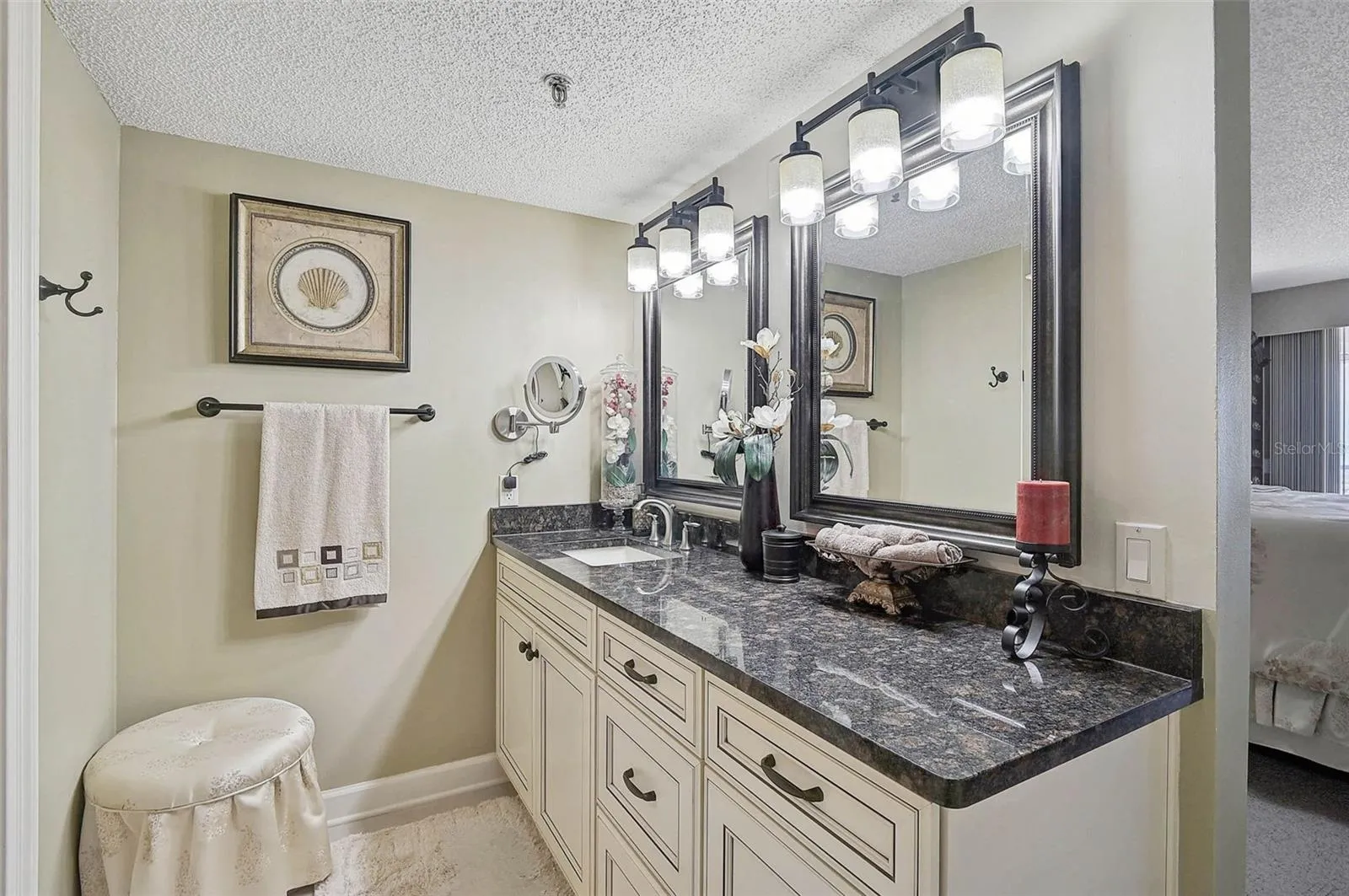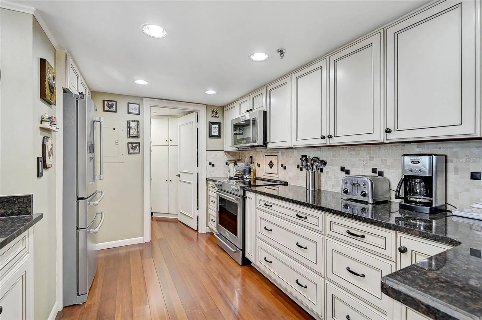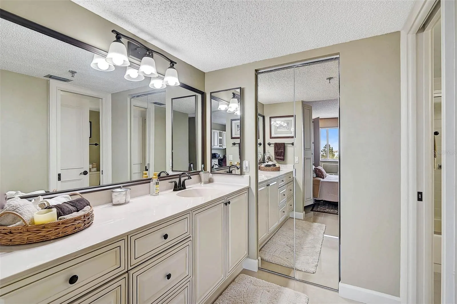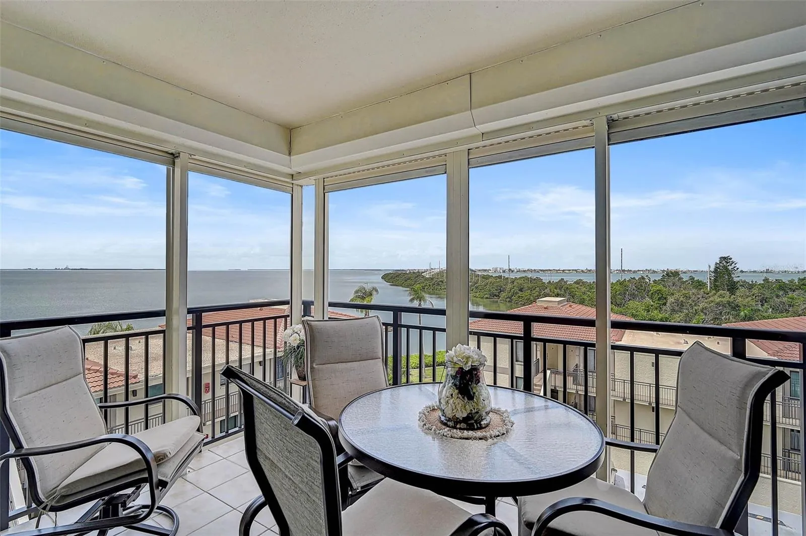 Step into the Florida lifestyle you’ve been dreaming of in this fifth-floor, waterfront sanctuary on exclusive Isla Del Sol. Located in the coveted Palma Del Mar community, this 2-bedroom, 2-bathroom residence offers breathtaking views from every room, showcasing the sparkling waters of Boca Ciega Bay and the lush greens of the Isla Del Sol Yacht & Country Club. Inside, you’ll find a spacious 1,250 sq ft layout designed with comfort, elegance, and functionality in mind. The split-bedroom floorplan features two true primary suites, each with private en-suite baths and custom walk-in closets—ideal for guests, family, or the luxury of dual retreats. One suite includes a built-in desk and Murphy bed, seamlessly integrated with the custom cabinetry that extends throughout the home—including both bathrooms—for a cohesive and upscale finish. At the heart of the home, the gourmet kitchen is a chef’s dream: granite countertops, custom soft-close wood cabinetry, matching stainless steel appliances, recessed lighting, and a smartly designed layout that blends beauty and utility. Every detail speaks to thoughtful craftsmanship and lasting quality. Just off the kitchen, the beautiful & oversized living and dining area creates a warm and inviting space for everyday living or entertaining, with wide-open sightlines that draw your eye to the showstopper: the screened-in balcony. This private perch offers world-class panoramic views, perfect for watching boats drift by or soaking in fiery Gulf sunsets. Outfitted with motorized storm and shade shutters, you’ll enjoy comfort and protection with a single touch. Additional luxury upgrades include custom closets with built-in shelving, elegant door moldings, and designer window treatments that enhance the home’s polished aesthetic. Enjoy resort-style amenities including a waterfront heated pool and spa, kayak storage, fishing pier, and clubhouse—all set against the stunning backdrop of Tampa Bay. Covered parking and same-floor storage add everyday convenience. Whether you’re looking for a full-time home, a seasonal getaway, or a smart investment, this move-in-ready condo delivers style, comfort, and unbeatable location in one of the Gulf Coast’s most sought-after communities. Just minutes to world-class beaches, Fort De Soto Park, downtown St. Pete, and with quick access to I-275 and Tampa International, this is the best view on the island, and your chance to own it!