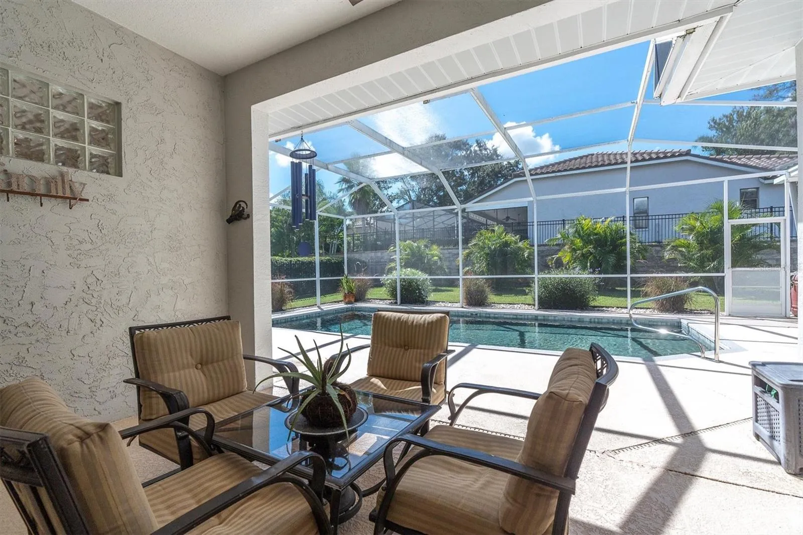 Under contract-accepting backup offers. Mediterranean Style Pool Home in Prime Safety Harbor Location. Welcome to this invitingly spacious 4-bedroom, 2-bathroom Mediterranean-style pool home with a 3-car garage, nestled on a generous .30-acre corner lot in the heart of Safety Harbor. Located in a no flood zone and no evacuation zone, this solid concrete block home offers peace of mind and enduring value. Step through the impressive double-door entry into an open-concept living and dining area, featuring a wall of sliding glass doors that lead to the screen-enclosed lanai and Pebble-Tec pool—perfect for entertaining or relaxing in your private oasis. The primary suite is a true retreat, complete with a separate sitting area ideal for an office or reading nook, two walk-in closets, and a luxurious en-suite bathroom (renovated in late 2023) featuring dual sinks, a makeup vanity, rich wood cabinetry, granite countertops, a garden tub, separate shower, and linen closet. The kitchen, upgraded in 2015, boasts rich wood cabinets, granite counters, stone subway tile backsplash with decorative travertine inset, stainless steel appliances including a hood vent, wall oven, microwave, and a 2024 dishwasher. A spacious eat-in area and breakfast bar flow into the family room, creating a warm and functional space for everyday living. Two additional bedrooms and a full bathroom (also serving as a pool bath) are located on the opposite side of the home, offering privacy and flexibility. One bedroom is currently used as an office with built-in shelving and cabinetry. Flooring includes tile throughout with carpet in two bedrooms.