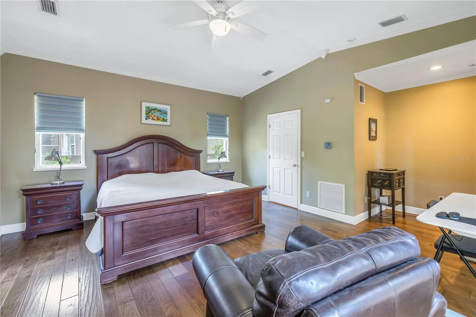 - Ceiling Fans(s), Thermostat, Walk-In Closet(s), Primary Bedroom Main Floor, Split Bedroom, Window Treatments, Stone Counters, Solid Wood Cabinets