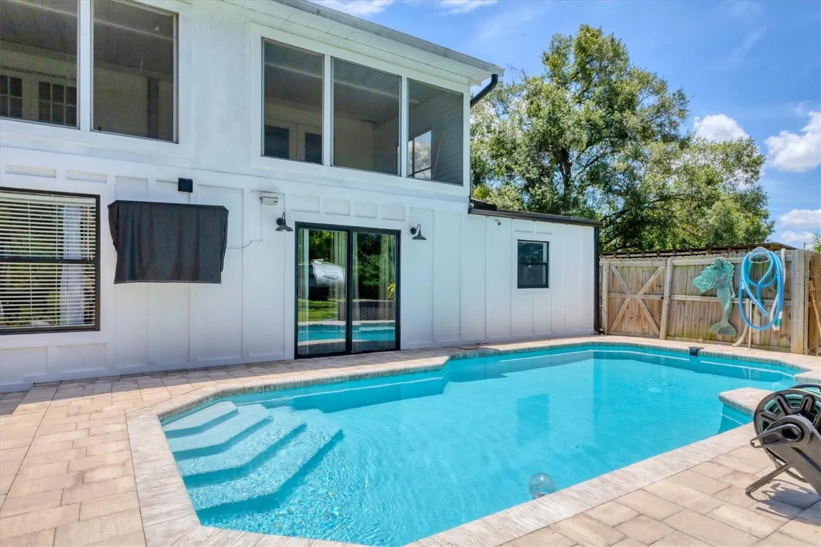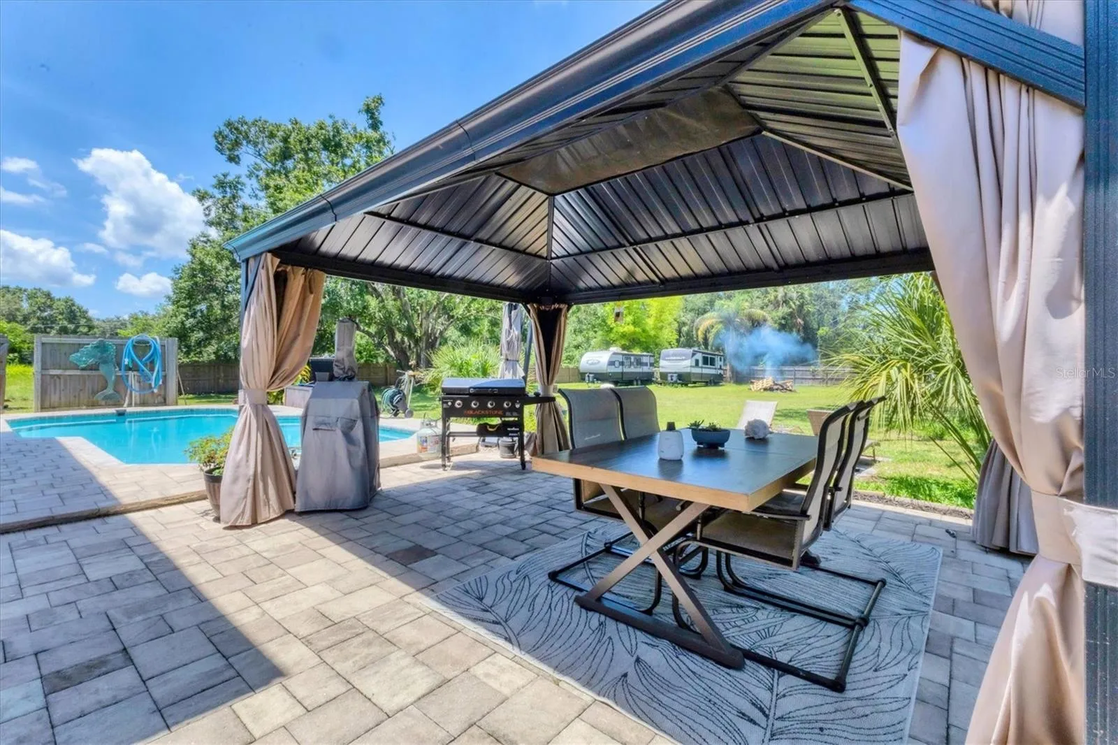 Under contract-accepting backup offers. Priced below market – $80K REDUCTION! Motivated owners! NO CDD OR HOA! This home has been REMODELED top to bottom with a new roof, new flooring, refinished pool & new pump & skimmer, newer kitchen & AC (2022). This home feels like BRAND NEW! Tired of living in tight spaces in developments? This large 4 bedroom 3 1/2 bath home sits on a beautiful, QUIET & PRIVATE 1-ACRE FENCED LOT with security gate. Feel like you’re off-grid with a newer well and septic (no water/sewer utility bill)! Bring your toys, animals, hobbies and live your life close to shopping and dining and new subdivisions, but away from the hectic city life! HARDIE BOARD SIDING – “Fiber cement siding formulated to offer superior performance”! Relax in the heated, in-ground pool with cabana; WORK FROM HOME with two – 1st floor private offices; bring a guest to live in the upstairs 2nd master suite that enjoys a balcony overlooking the private, green-grass backyard! Check out the photos of the BEAUTIFUL MASTER BATH – like out of a showroom! Too many upgrades to mention here. OH! Did I forget to mention – a newer water softener and whole house SMART HOME SYSTEM! If you are looking for extra elbow room on a quiet, private 1-acre lot that feels like a new home – make an appointment to see THIS HOME!