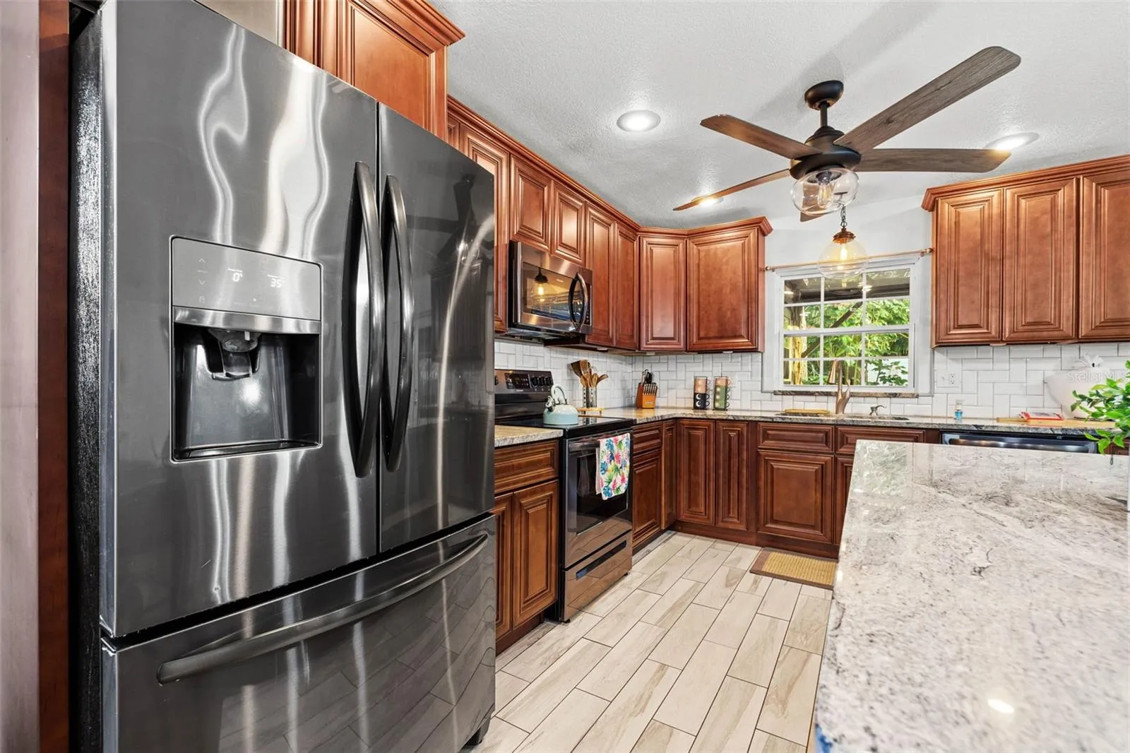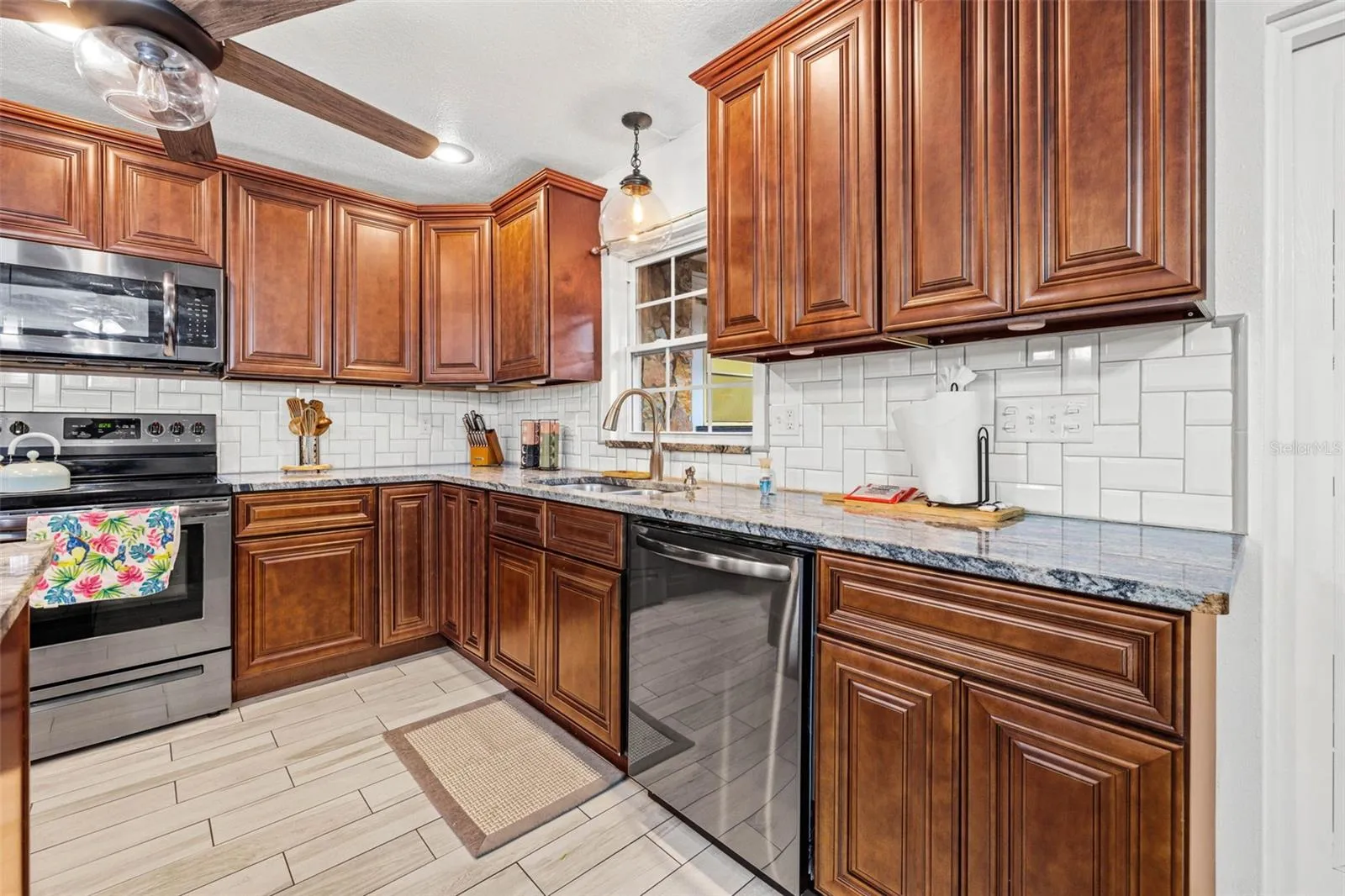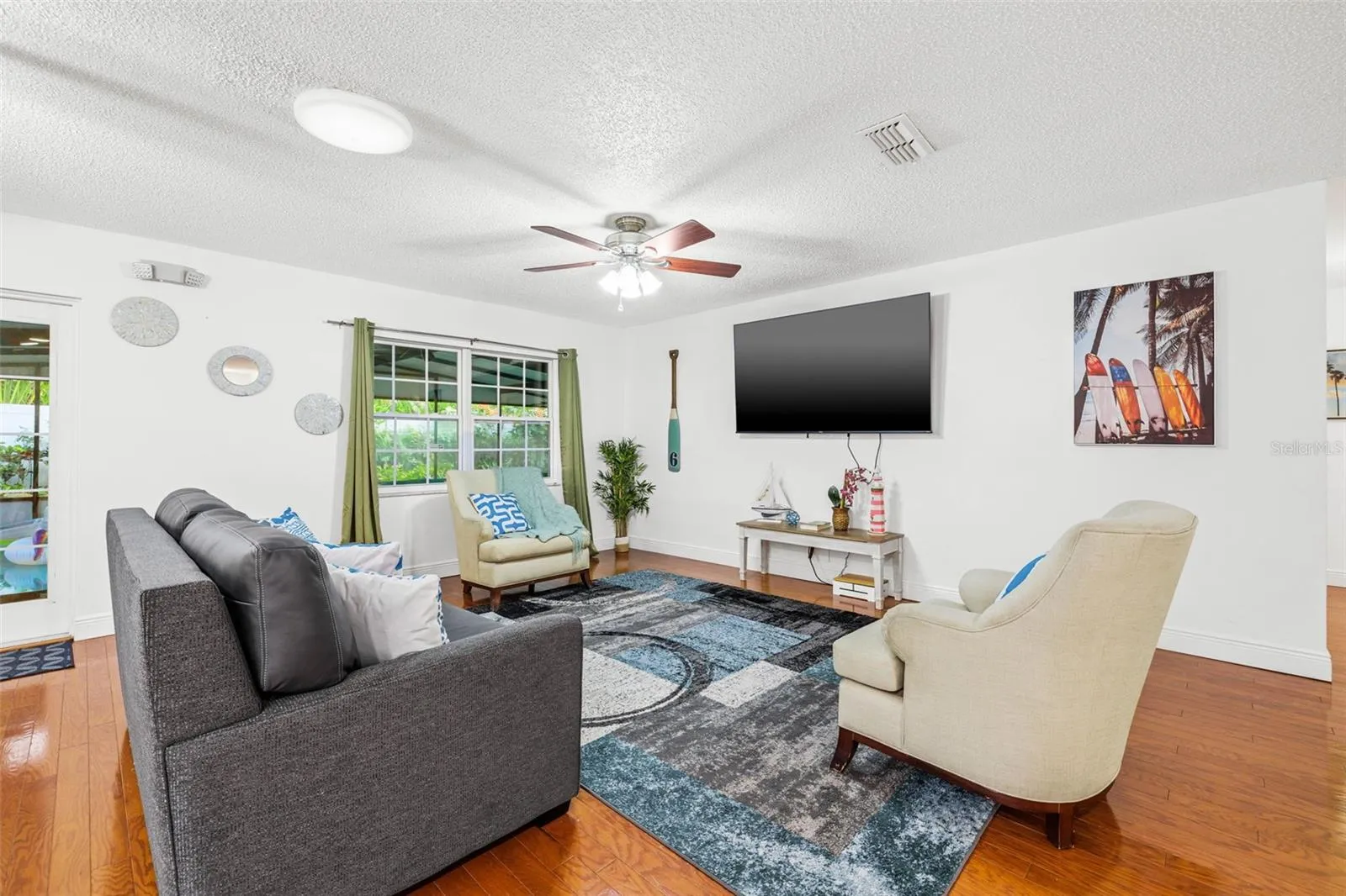 - Ceiling Fans(s), Open Floorplan, Living Room/Dining Room Combo, Kitchen/Family Room Combo, Window Treatments, Solid Wood Cabinets, Solid Surface Counters