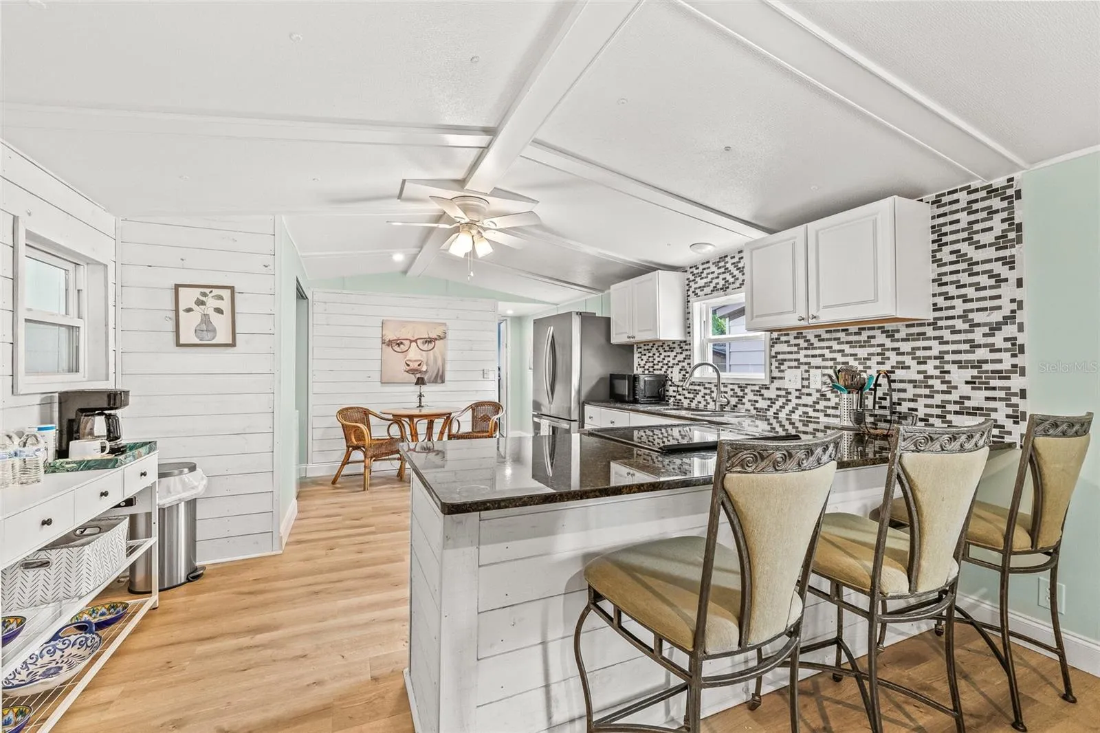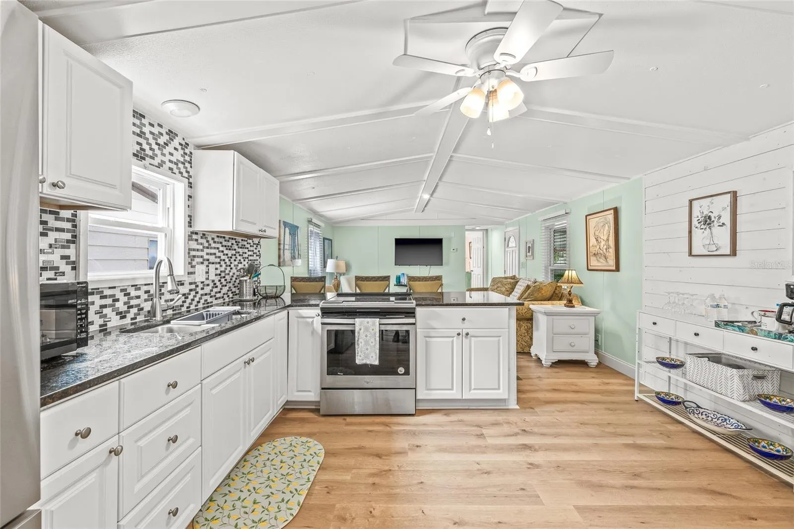 - Ceiling Fans(s), Open Floorplan, Thermostat, Eat-in Kitchen, Kitchen/Family Room Combo, Split Bedroom, Vaulted Ceiling(s), Stone Counters