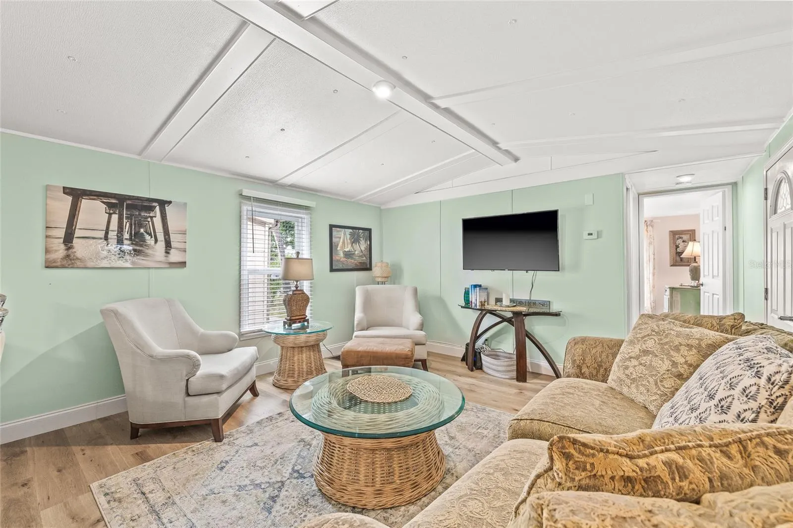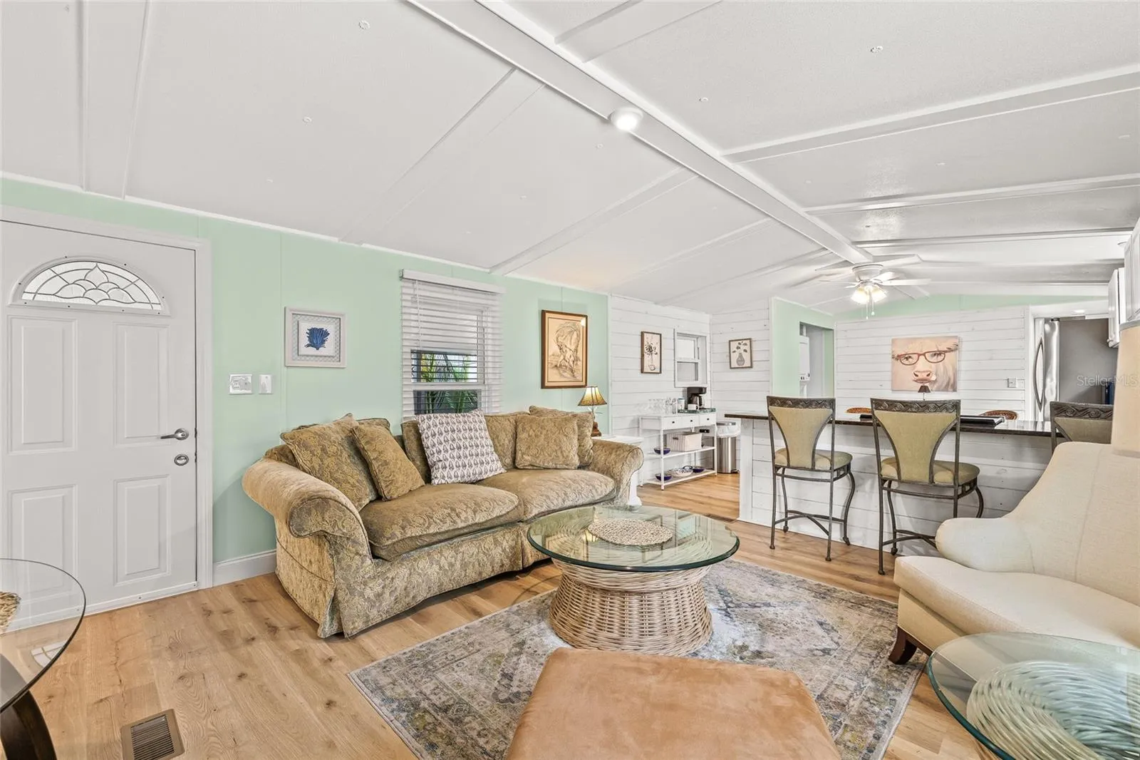 Enjoy modern touches throughout, including vinyl plank flooring, exposed ceiling beams that add warmth and character, and a convenient indoor laundry closet. Outside, the oversized carport doubles as an outdoor lounge, perfect for relaxing in the shade or hosting evening get-togethers. You’ll also love the extra storage space—ideal for tools, beach gear, or hobbies. Specific furniture pieces convey with the sale of the property. Detailed list can be provided.